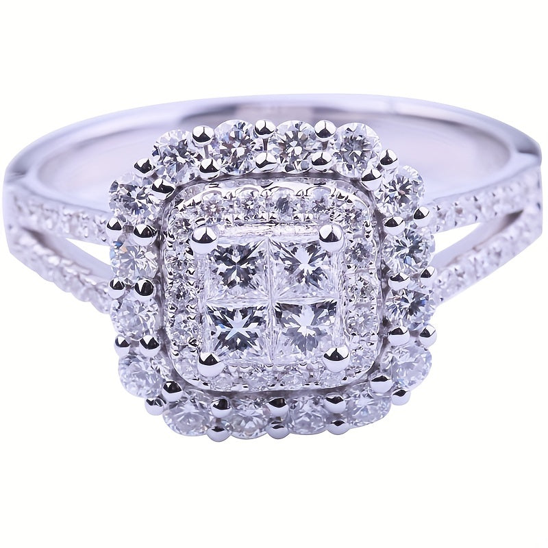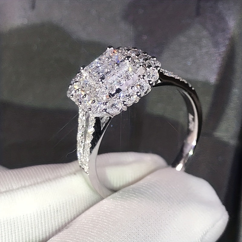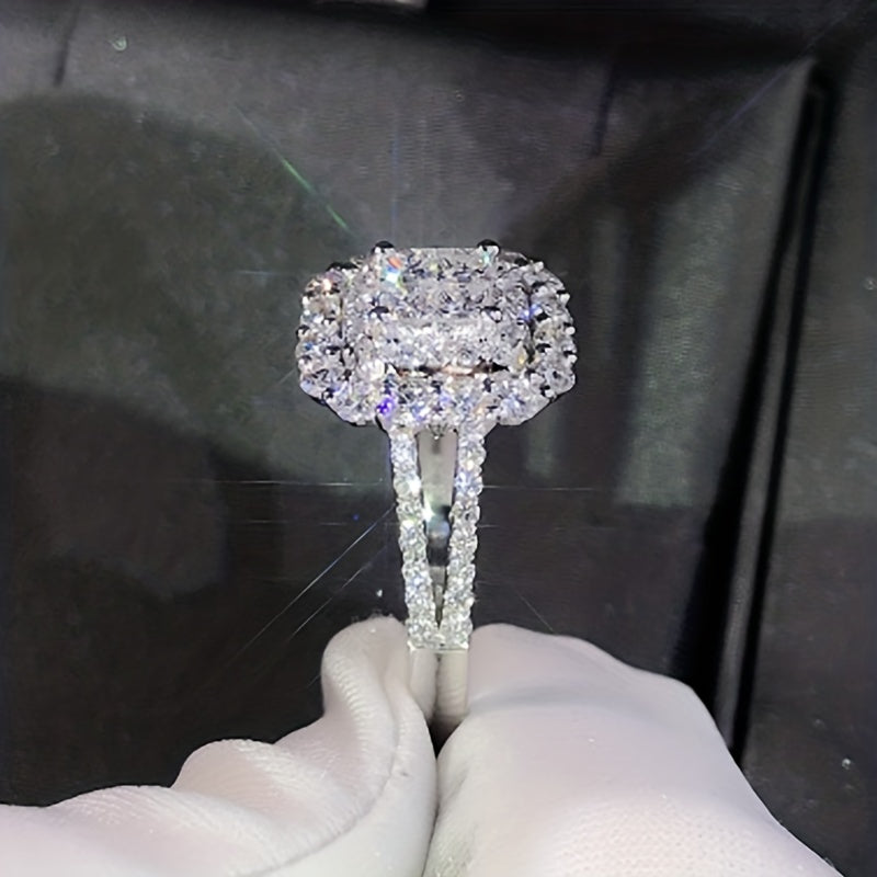 Elegant and eye-catching square cubic zircon ring perfect for anniversaries. Features a sparkling design that will add glamour to any outfit.