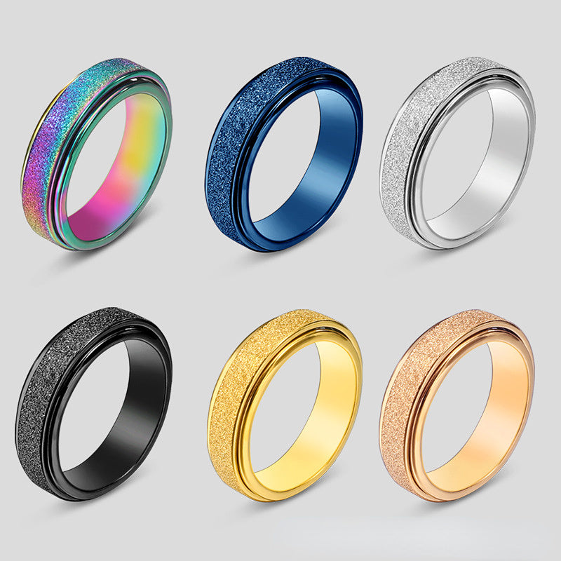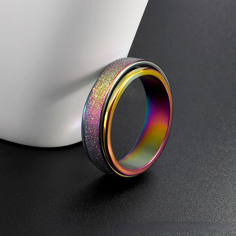 This spinner ring is crafted from high-quality stainless steel, designed to provide anxiety relief. It features a blend of golden, silvery, and rainbow colors, making it a stylish accessory for both men and women.
