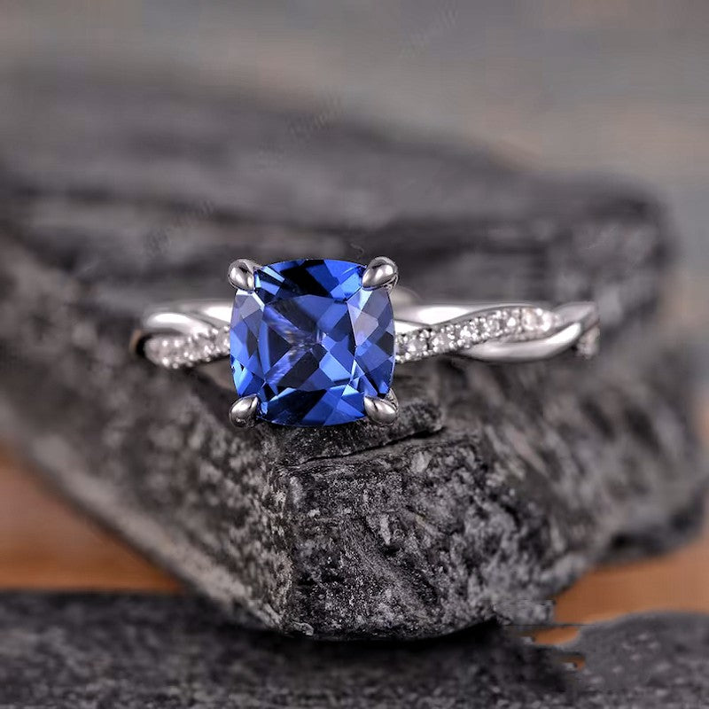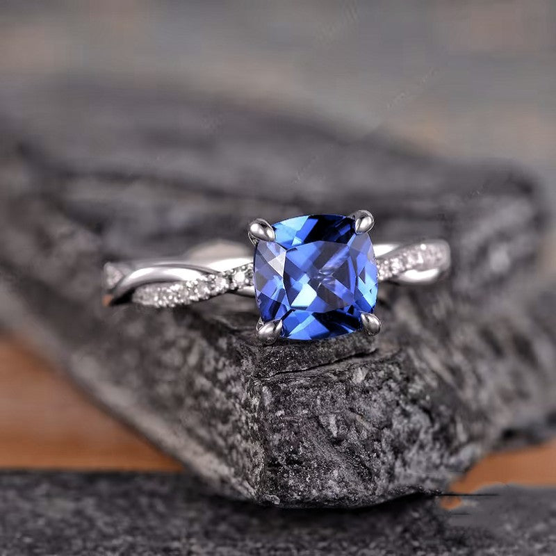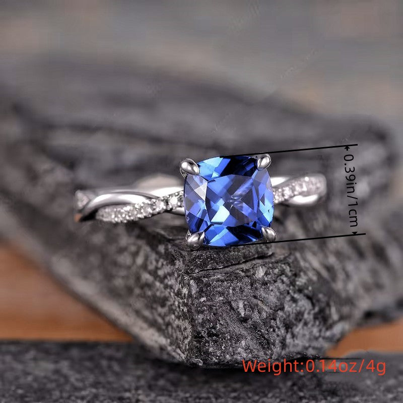 This stunning ring features a square zircon in the center with a band intertwined with micro zircons. It's a dainty and elegant accessory perfect for parties and makes a great birthday gift for her.