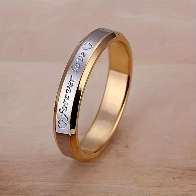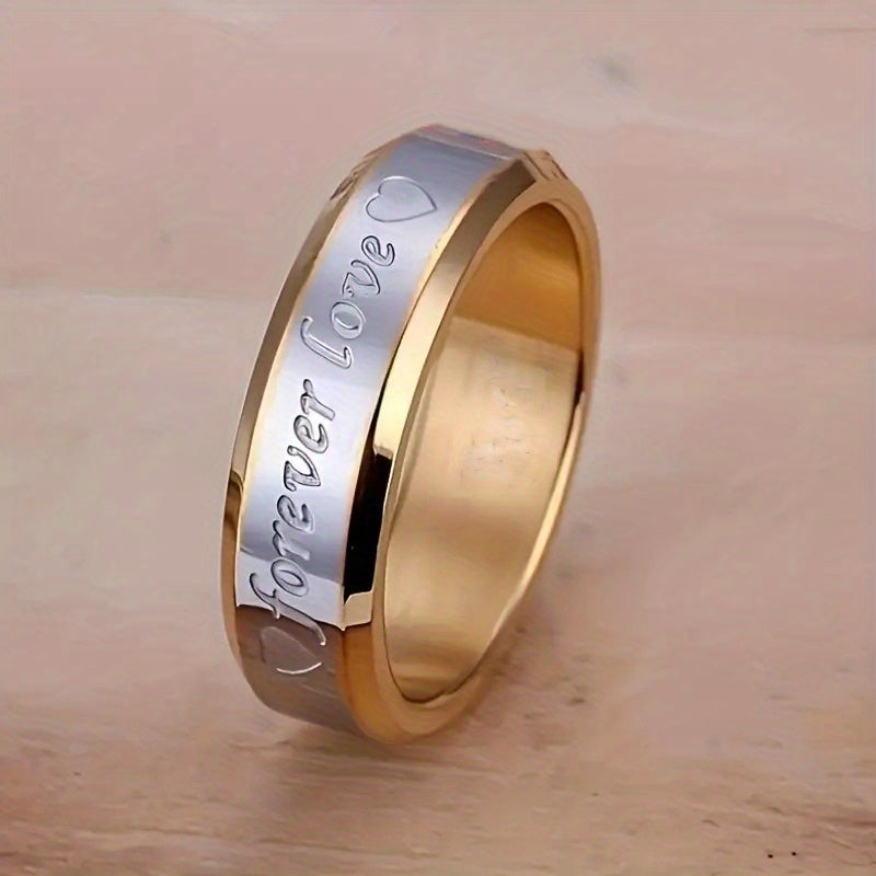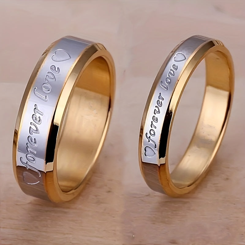 This stylish stainless steel ring is plated with 18k golden finish, perfect for couples to wear on their special day.
