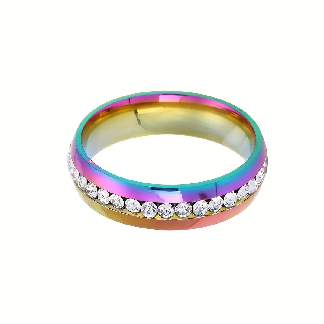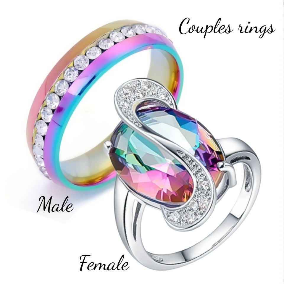 This stainless steel ring is perfect for couples. It features a crystal design and is suitable for both men and women.