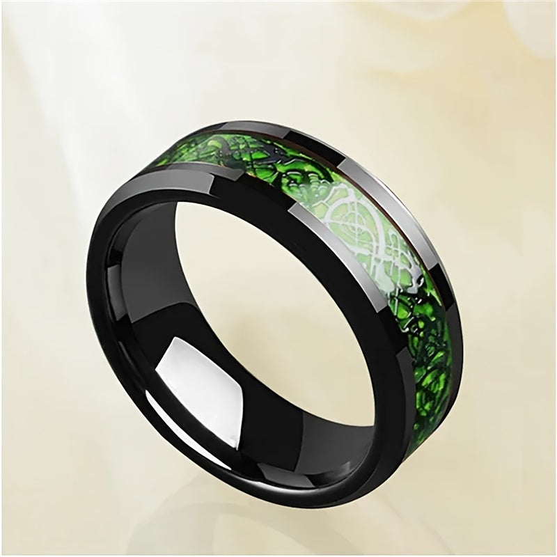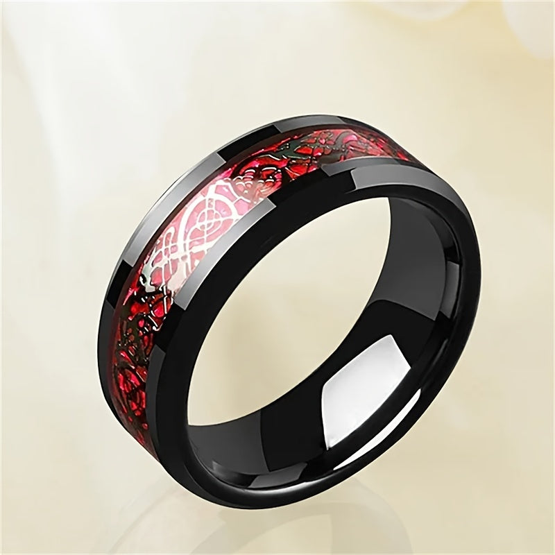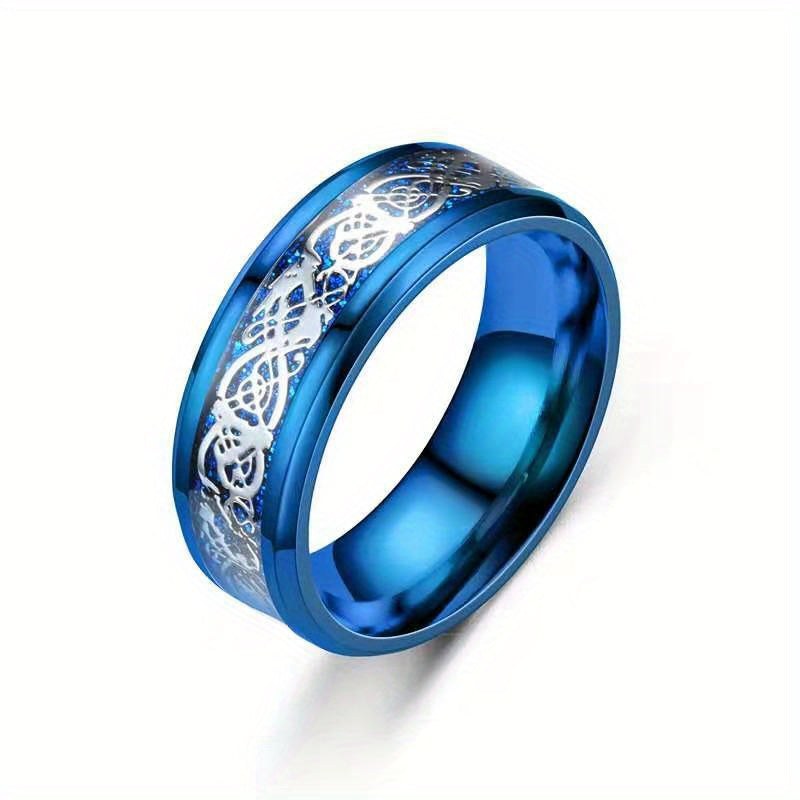 This stainless steel ring features a dragon pattern, making it a bold and stylish accessory for men.
