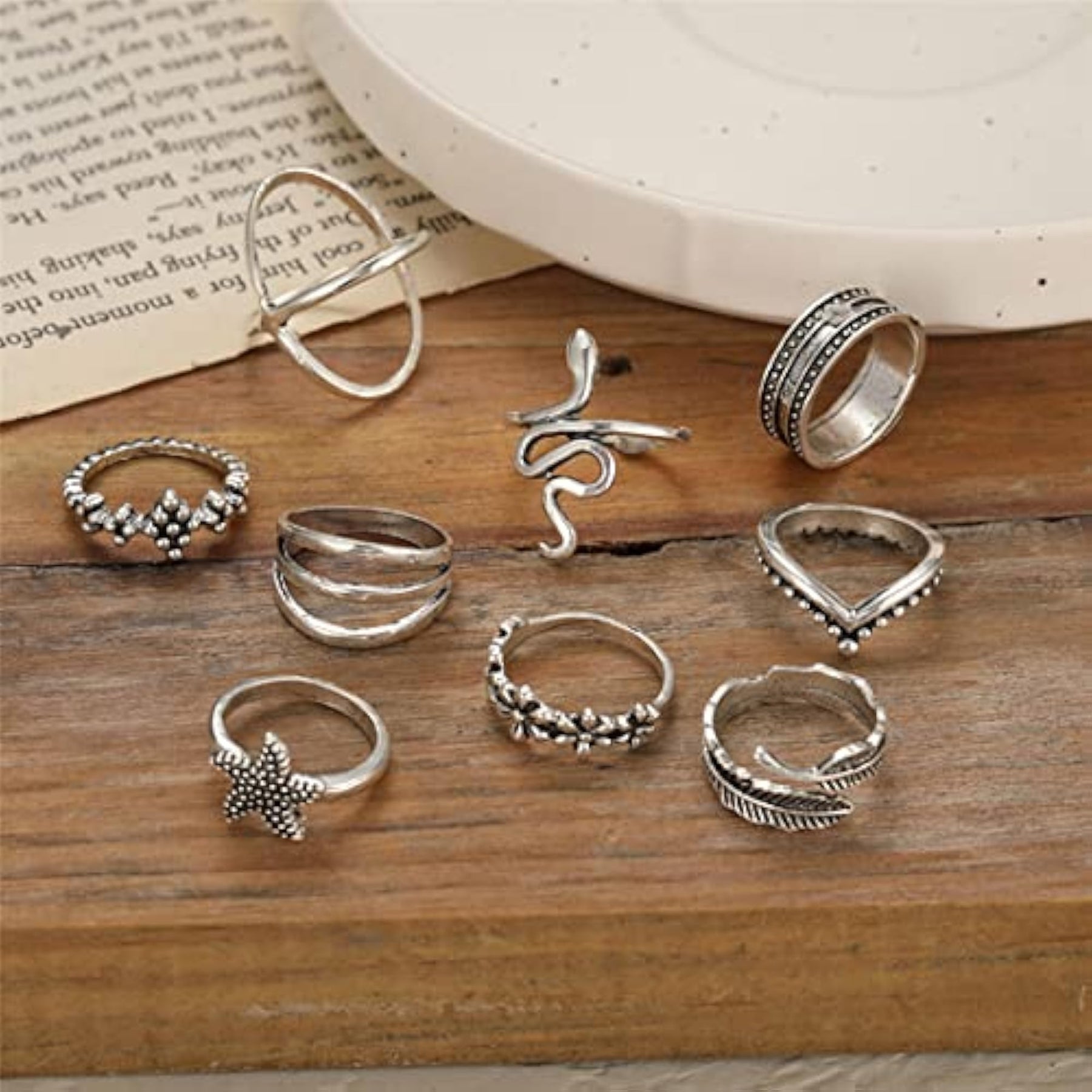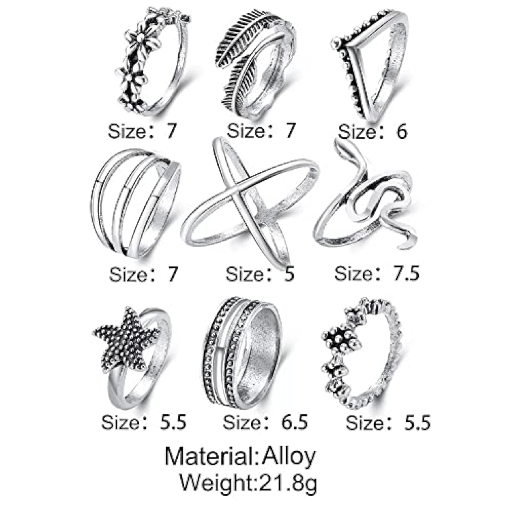Enhance your style with this set of 9 stylish metal boho midi finger rings. These rings are perfect for adding a trendy touch to your everyday look.