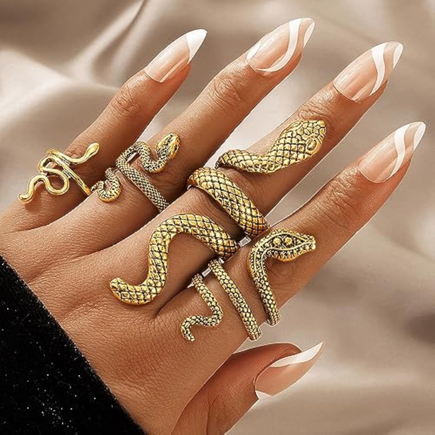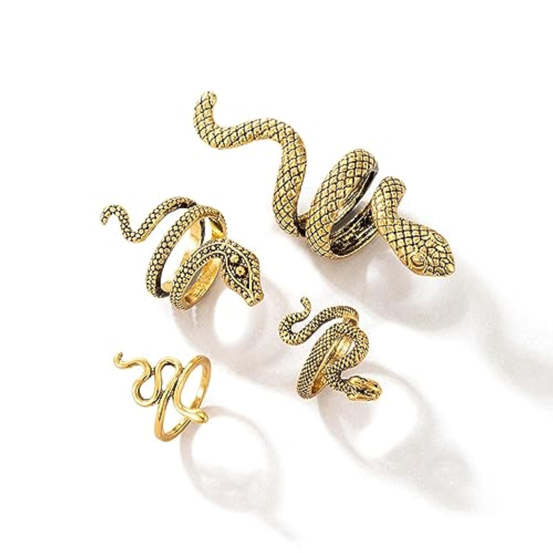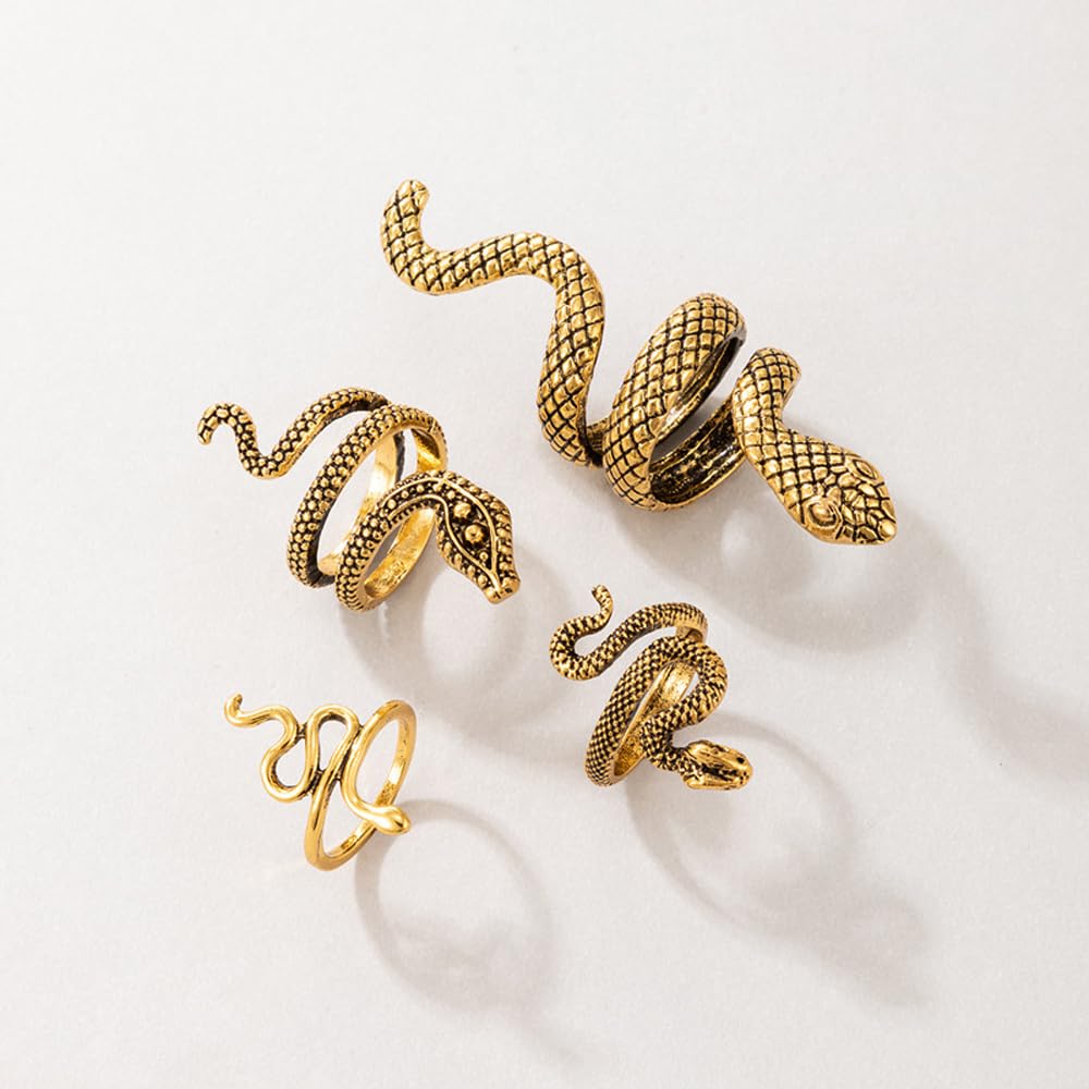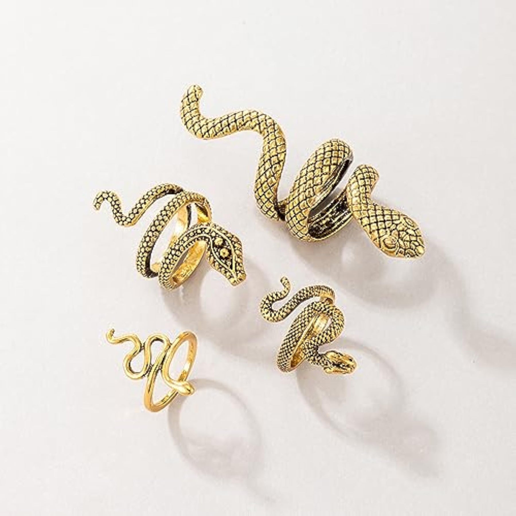 Elevate your look with this set of 4 stylish rings in a trendy gold finish. Perfect for adding a touch of sophistication to any outfit.