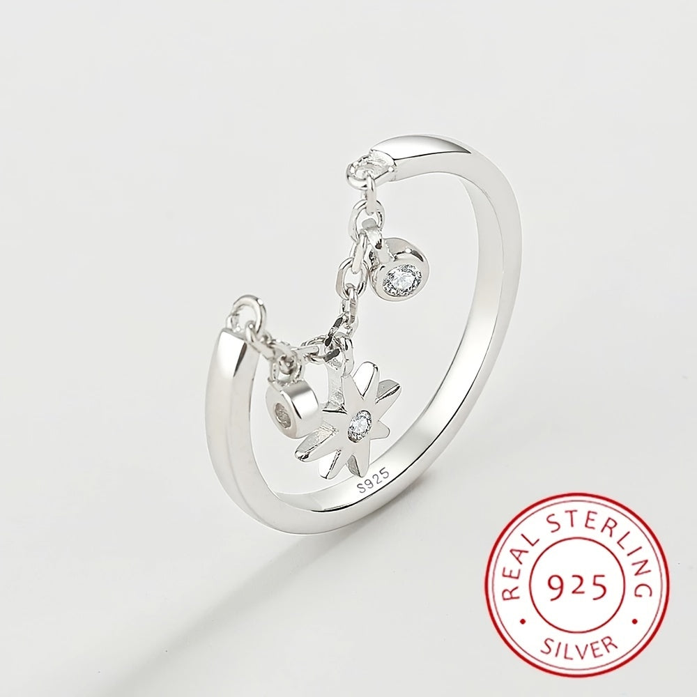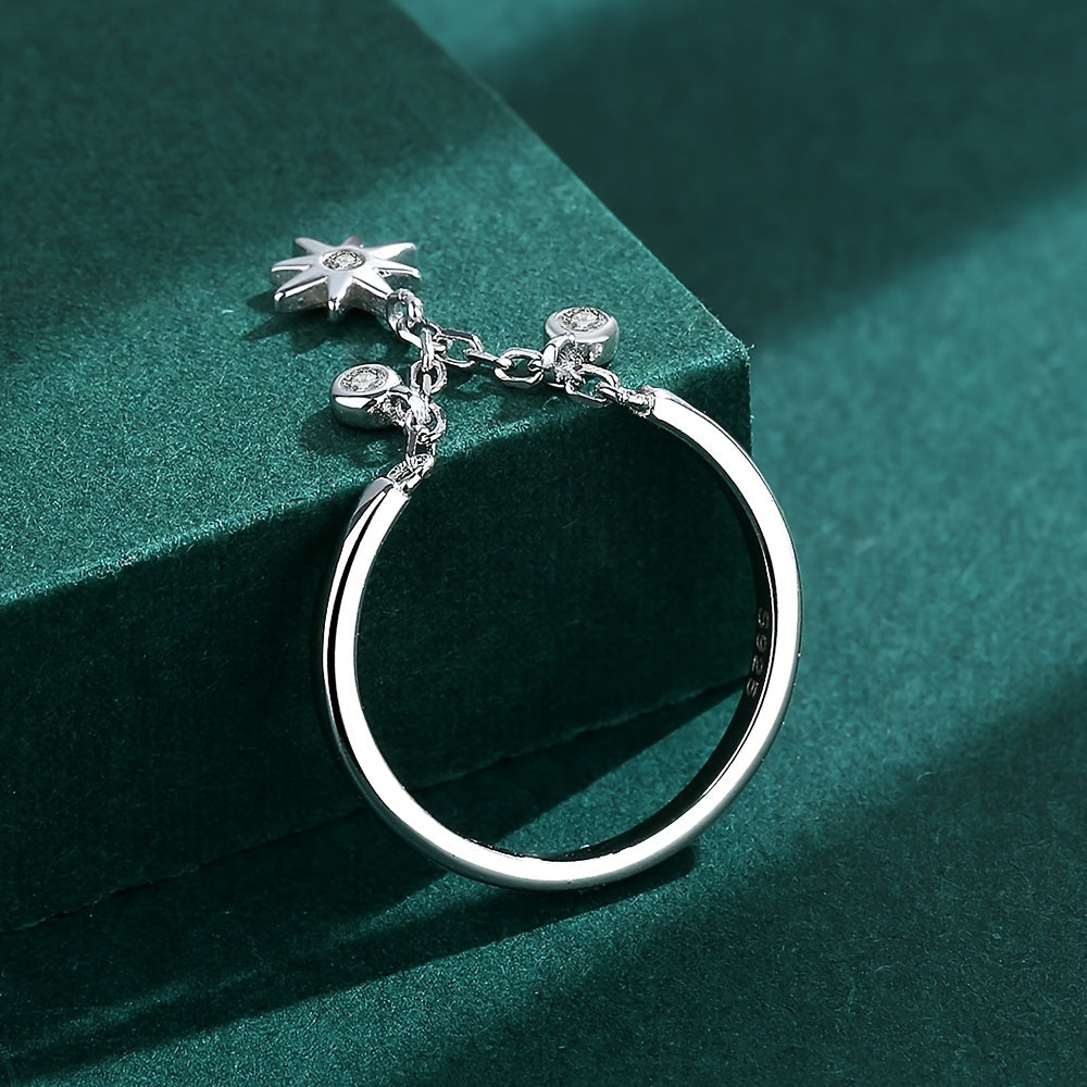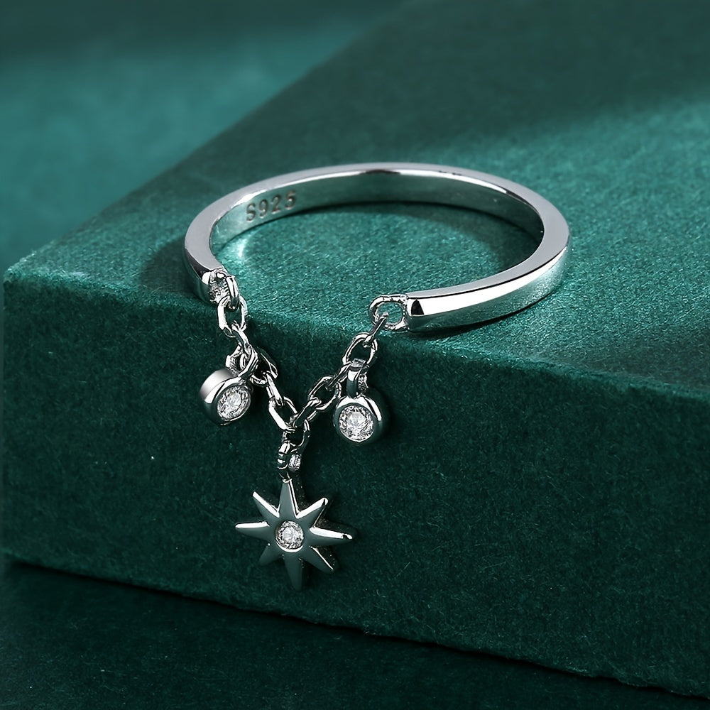 This creative 925 sterling silver ring features a tassel star design embedded with sparkling zircons, making it a unique and bold choice for women who love statement jewelry.