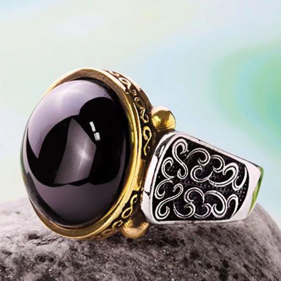 Elegant two tone round zircon ring, perfect as a jewelry gift for men. Retro pattern design adds a classic touch.