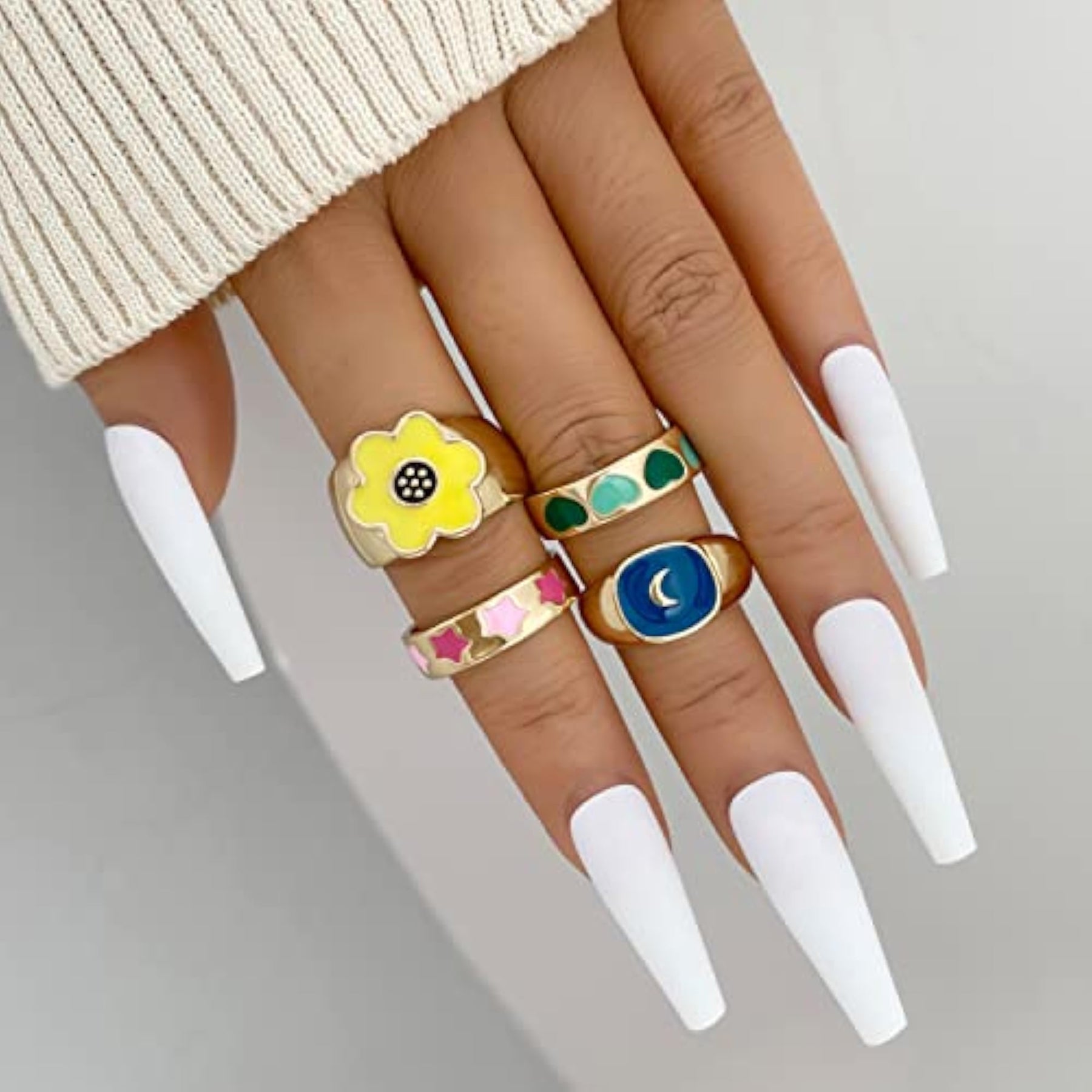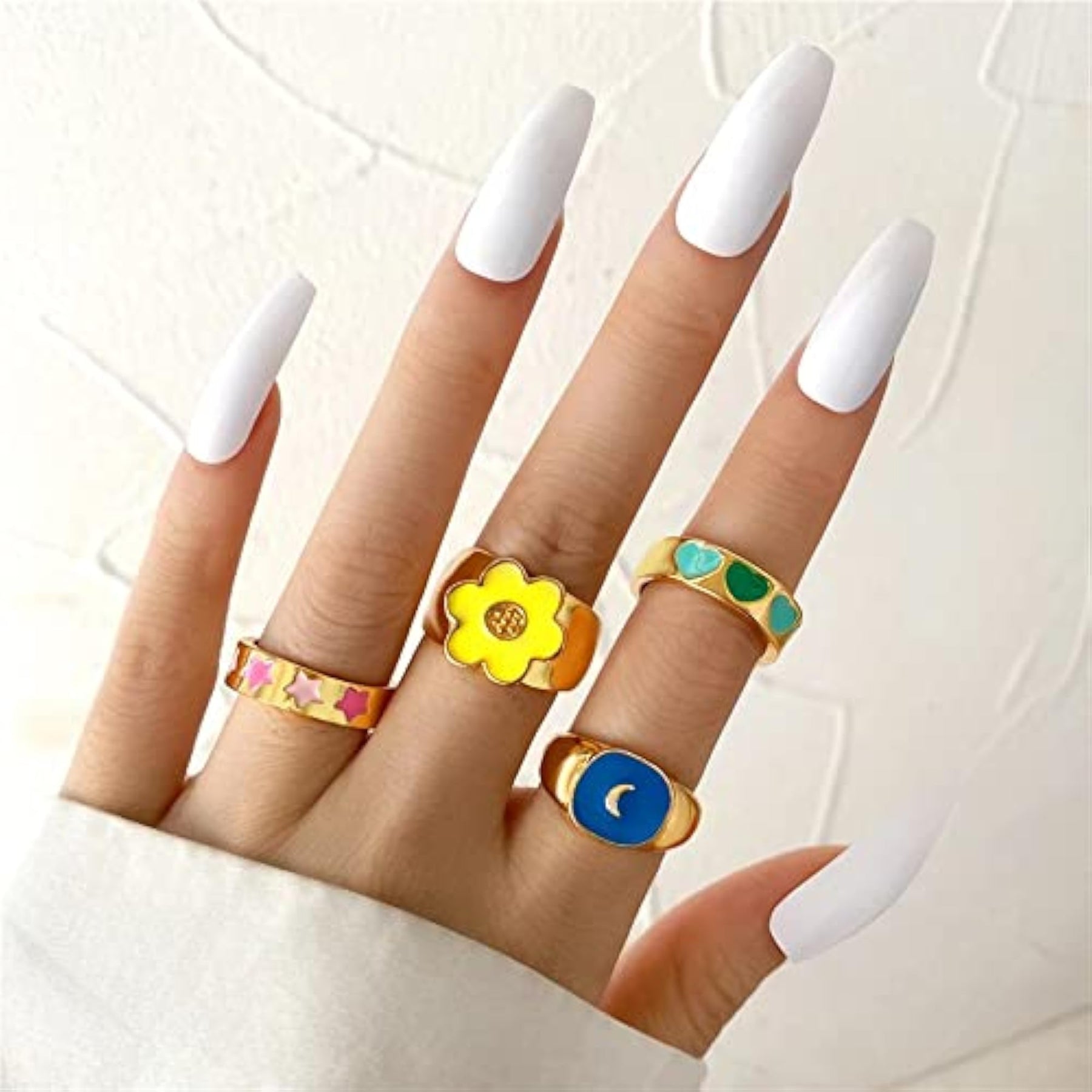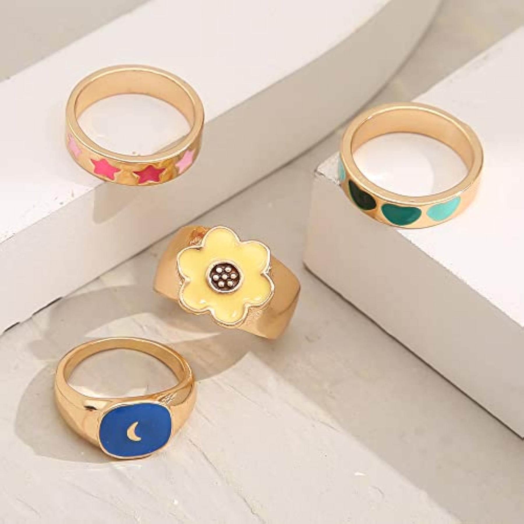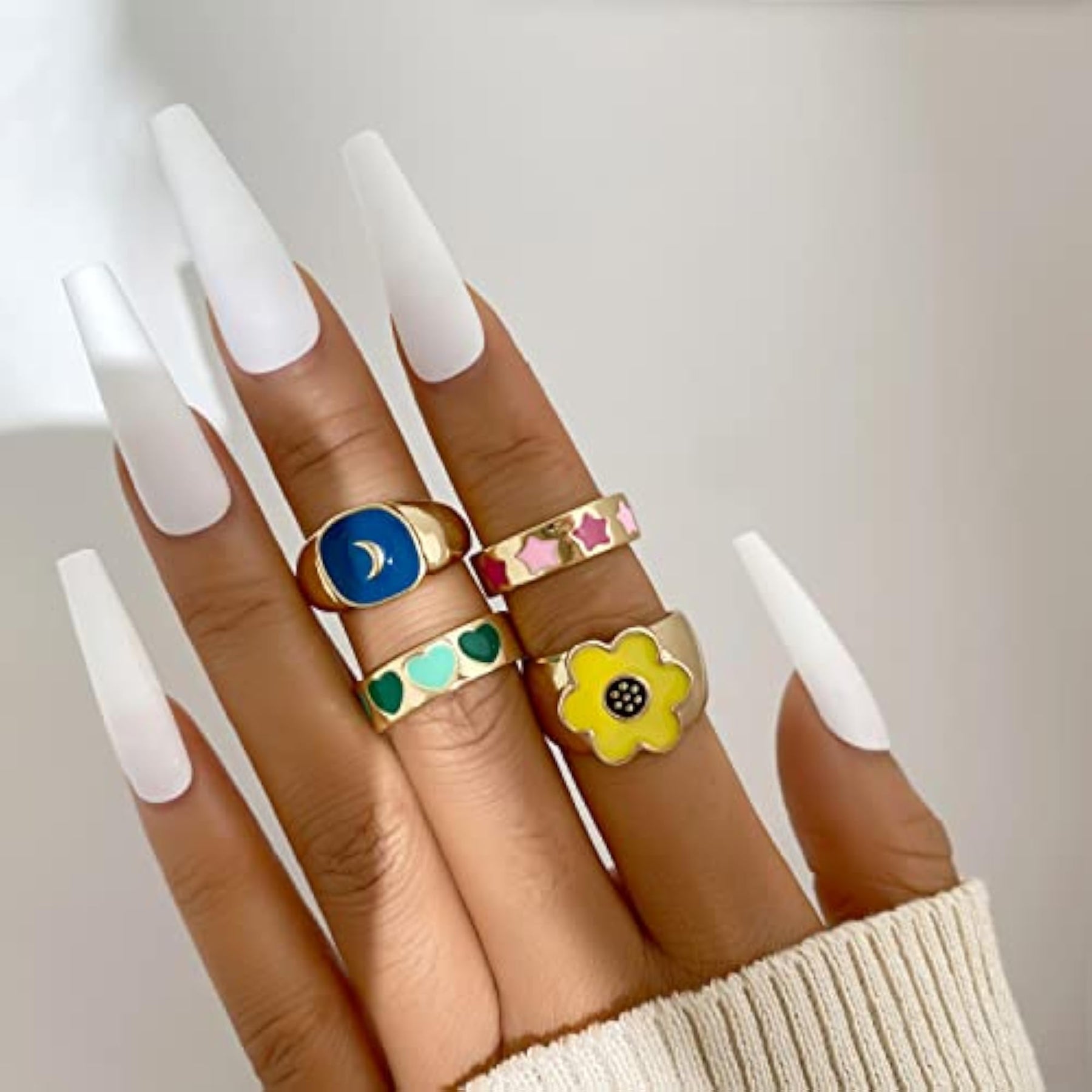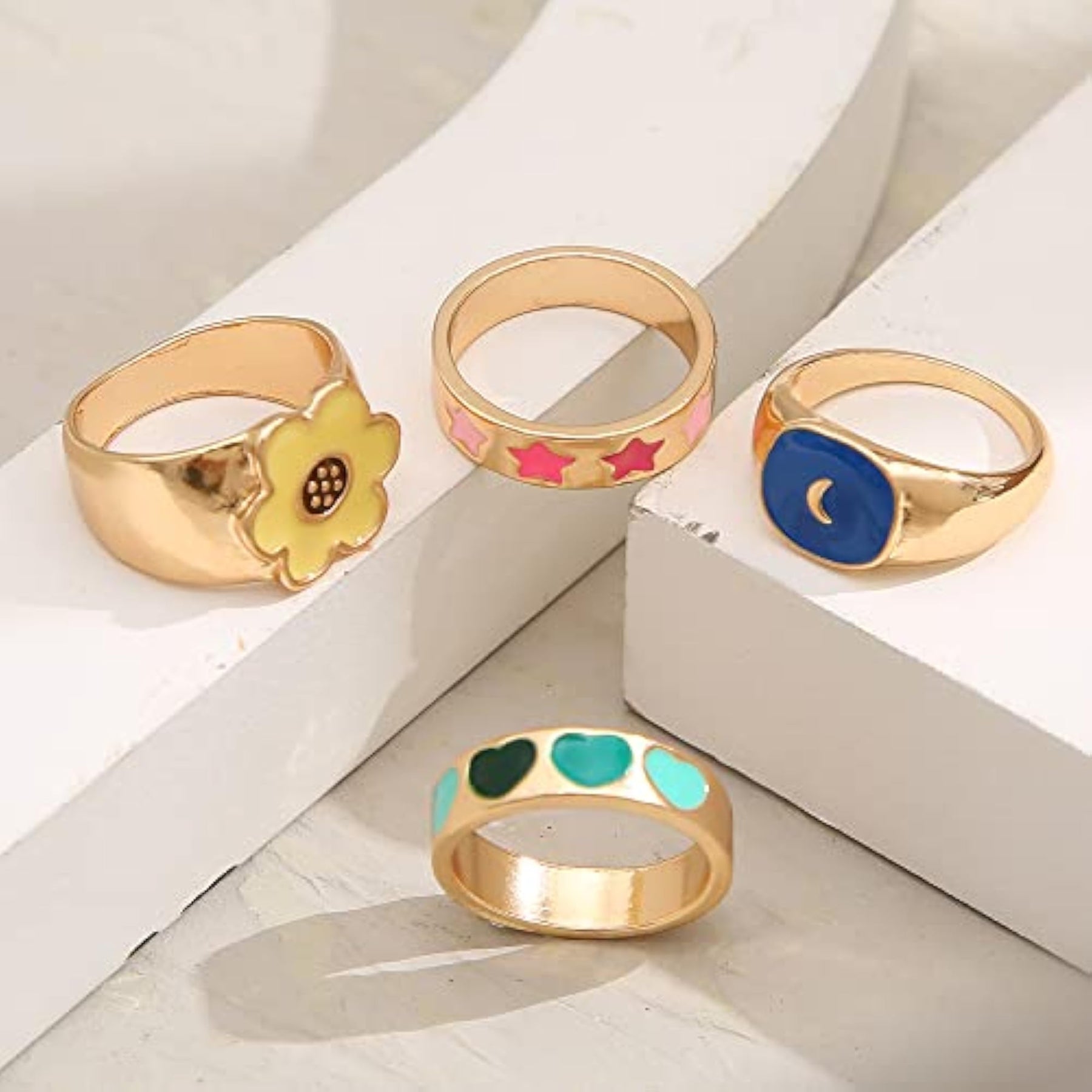 Upgrade your accessory game with this set of 4 Y2k metal midi finger rings. Perfect for adding a touch of retro style to any outfit.