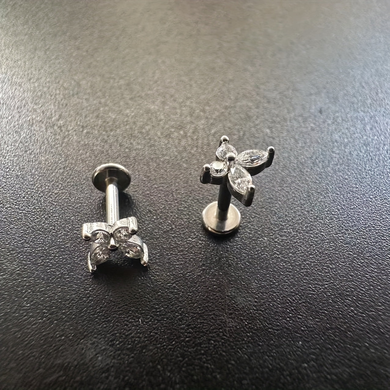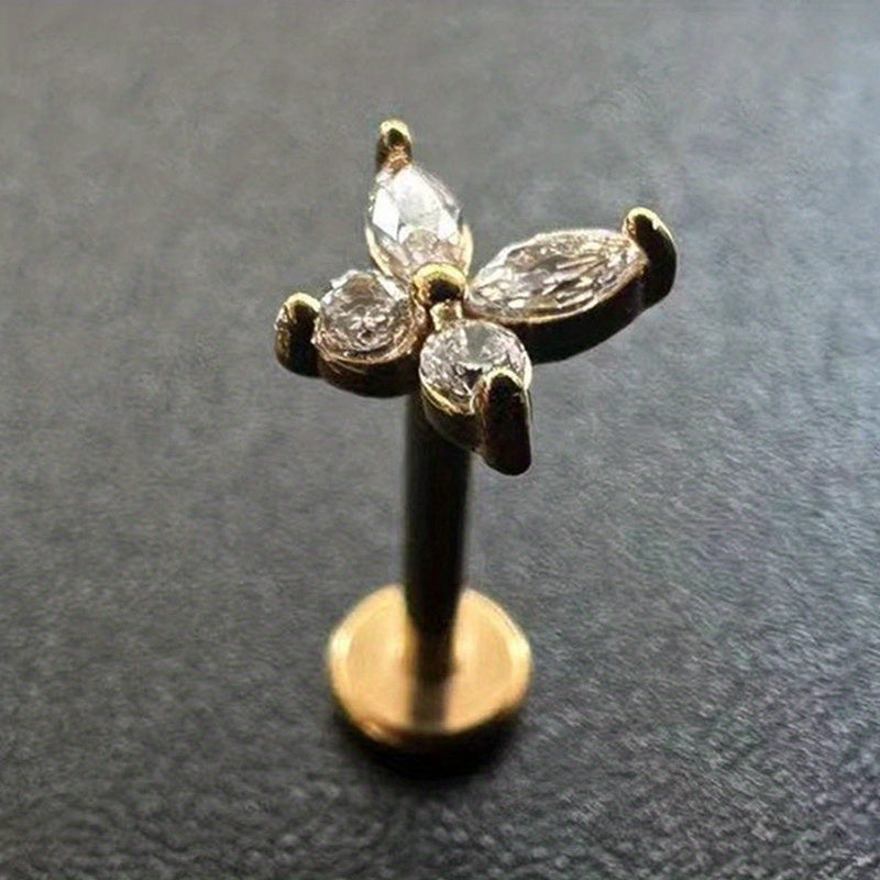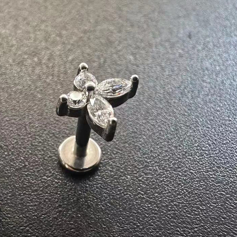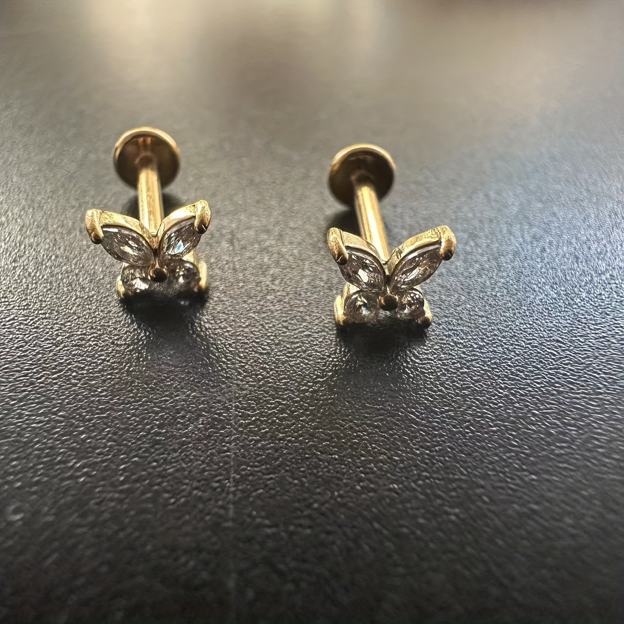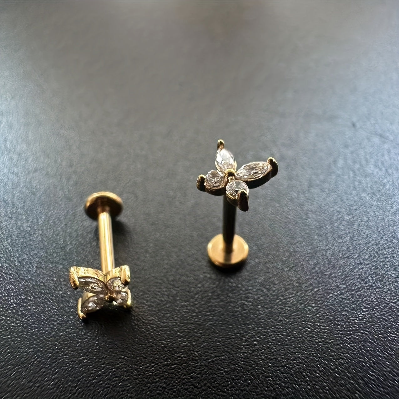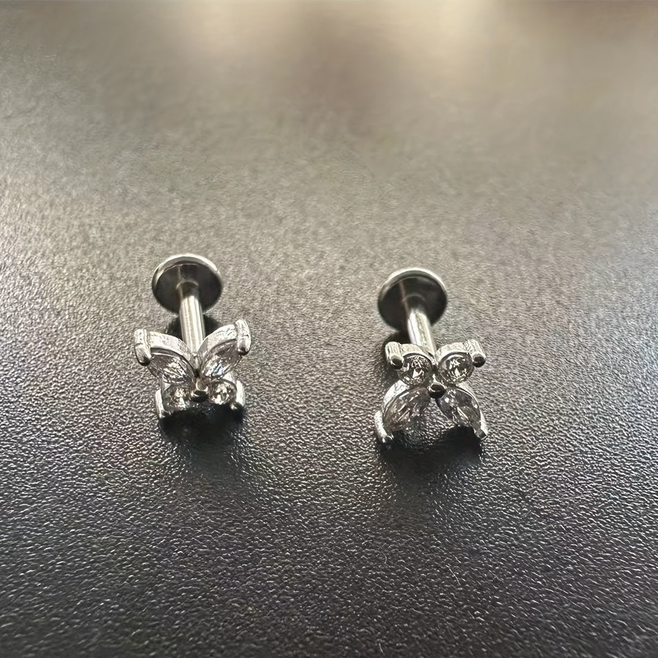 Zircon Butterfly Lip Nail Ring Stainless Steel Piercing Jewelry