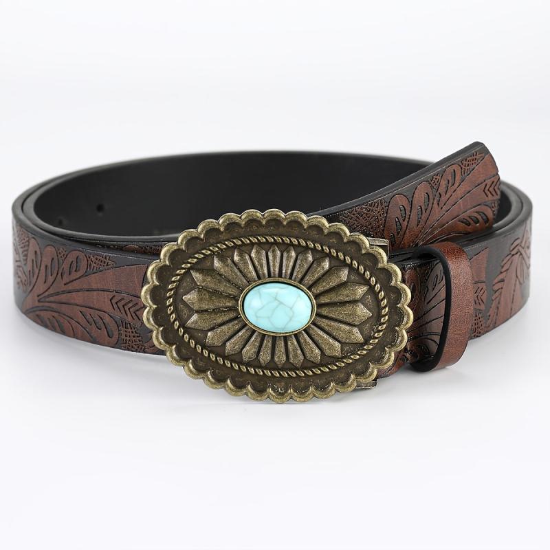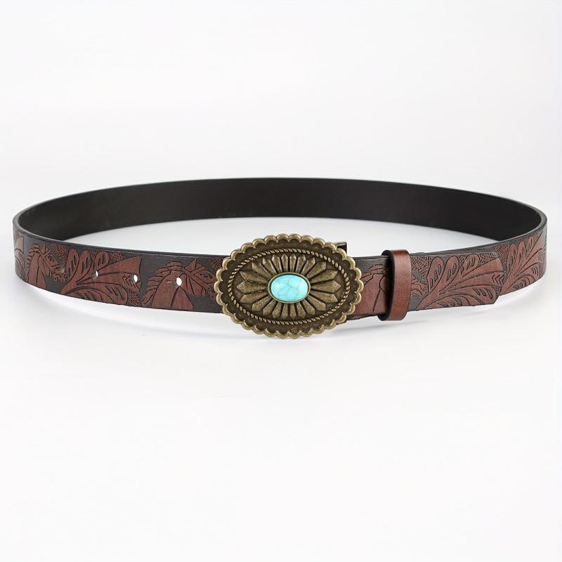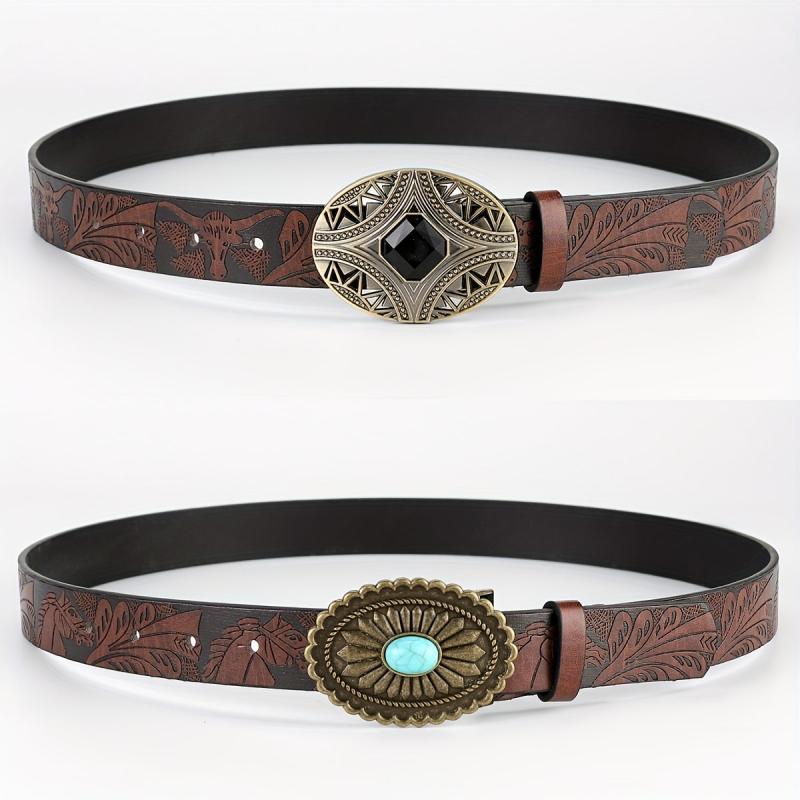 This set of 2 retro waist belts features a bohemian print stone design with PU leather material and zinc alloy embossed detailing. Perfect for weddings, parties, and special occasions.