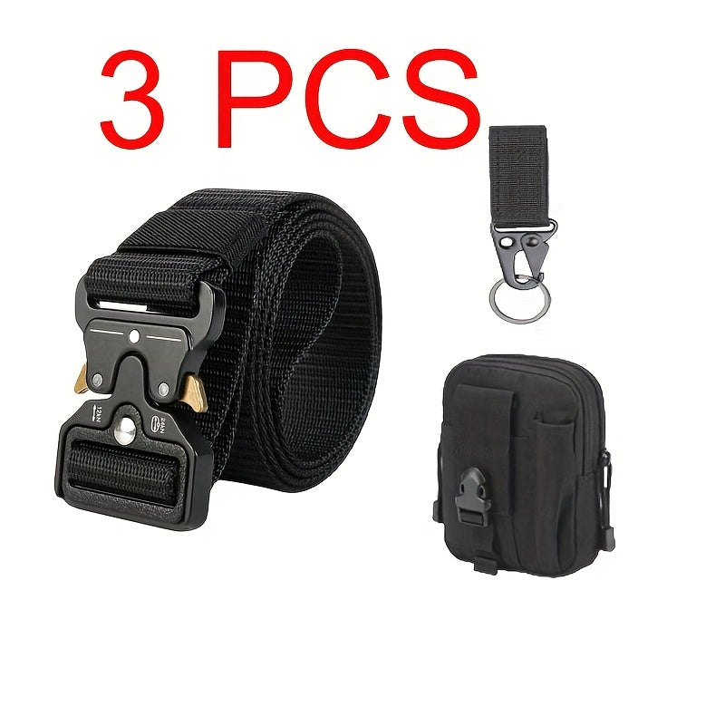 This set includes 3 tactical leather belts designed for outdoor adventures. Made with durable plastic buckles, these belts are suitable for various activities. They make a great gift for men who enjoy outdoor pursuits.