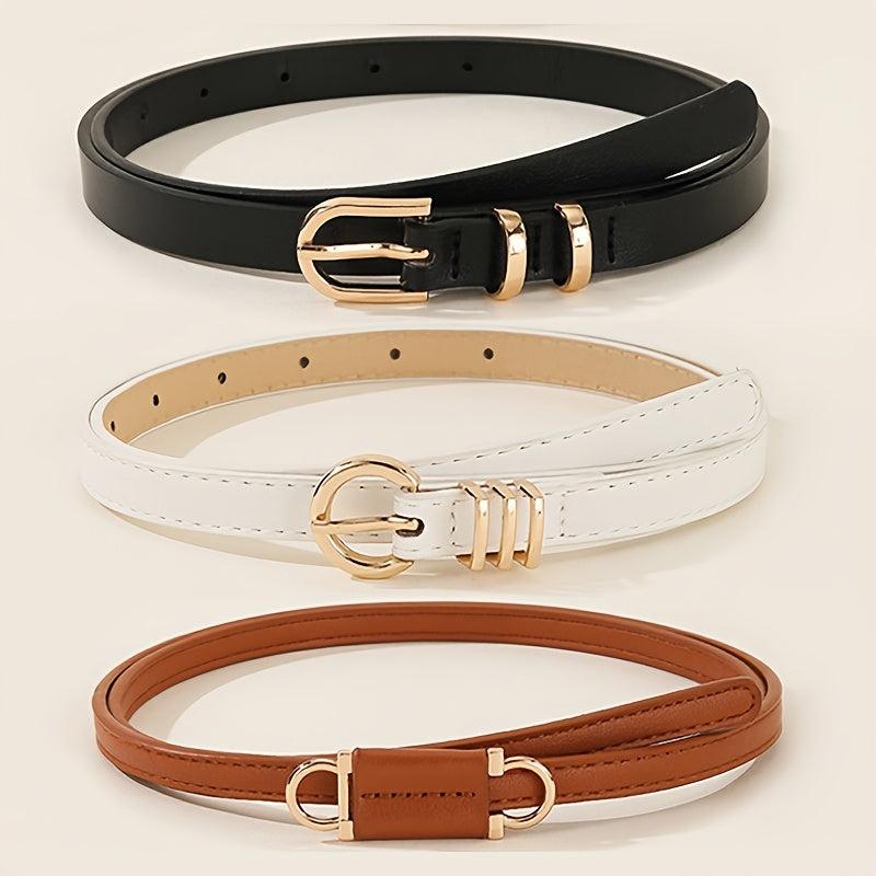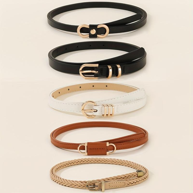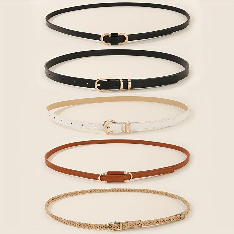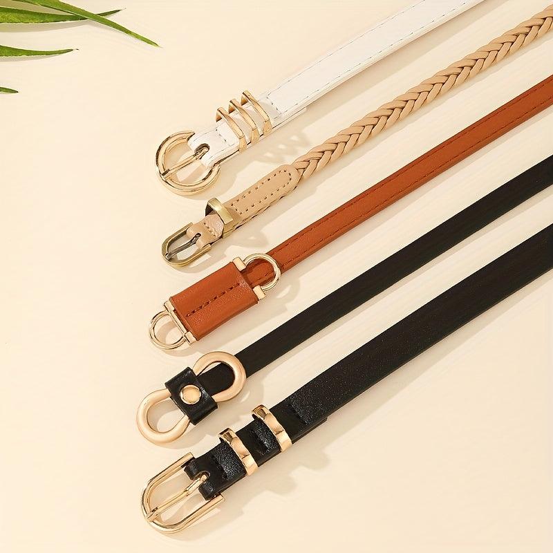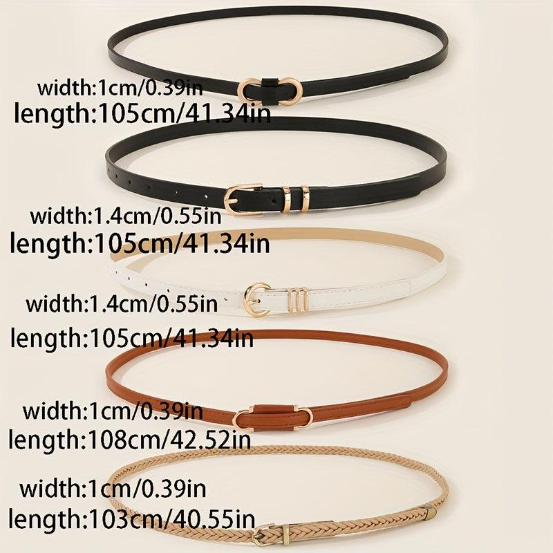 5pcs Women's Waist Belts Brown/Beige Gold Buckles for Dresses Jeans