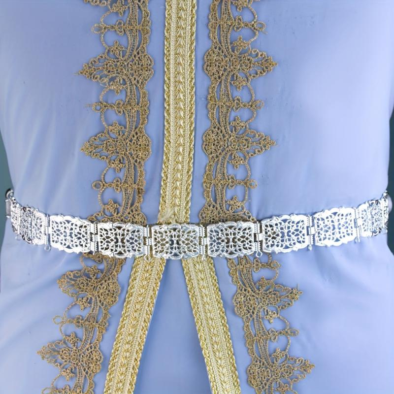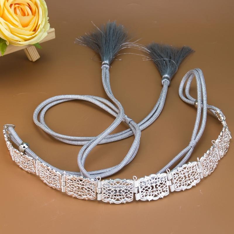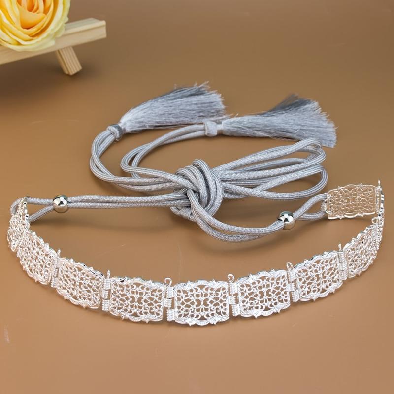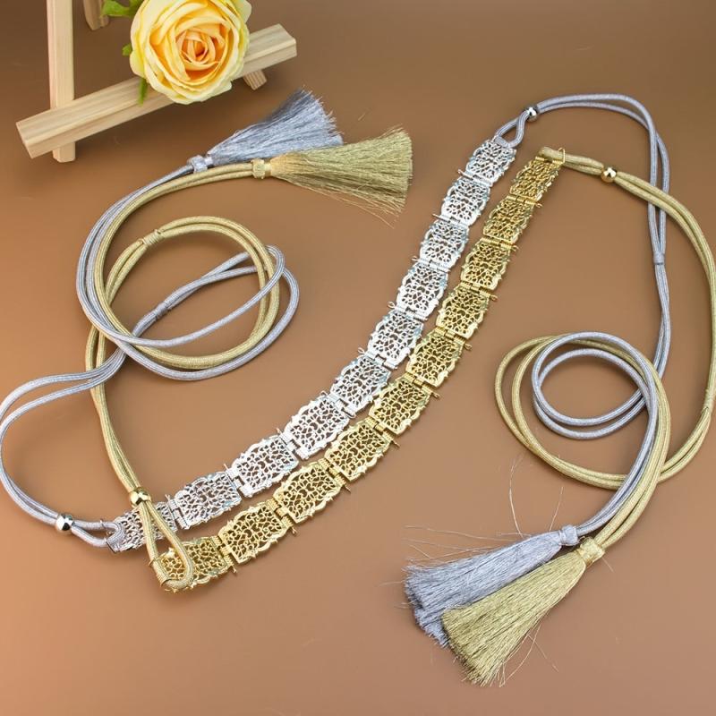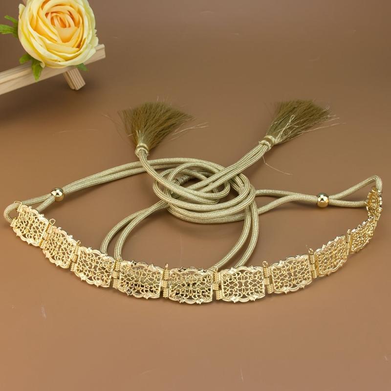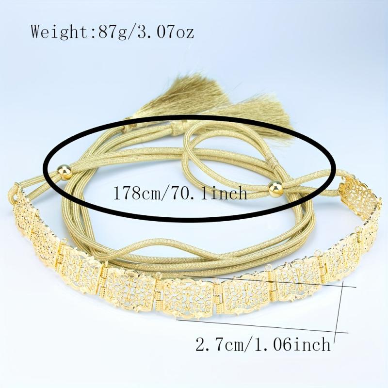 Add a touch of elegance to your outfit with this stunning metal belt featuring a hollow vine pattern and tassel rope design. Perfect for special occasions like Eid celebrations, weddings, and banquets. Makes a great gift for brides!