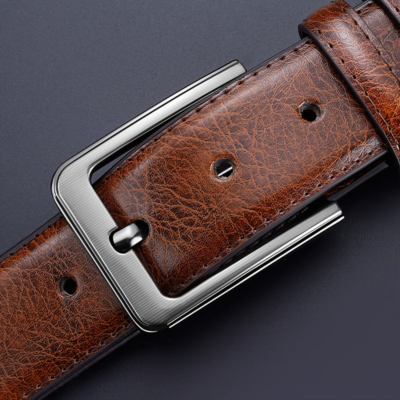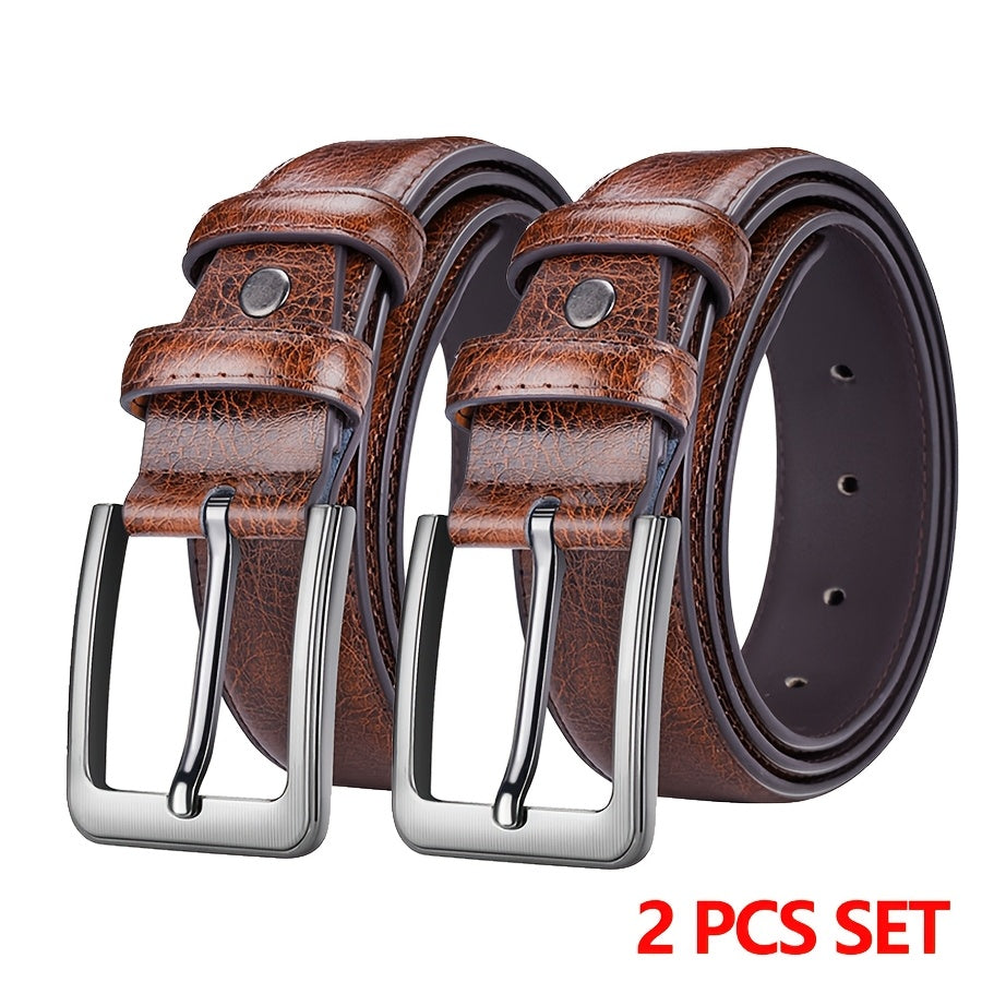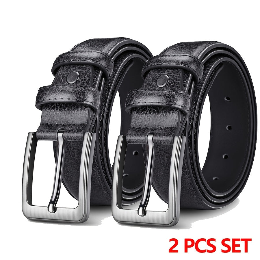Get this 2pcs SET of casual men's leather texture buckle belts for a stylish and versatile addition to your wardrobe.