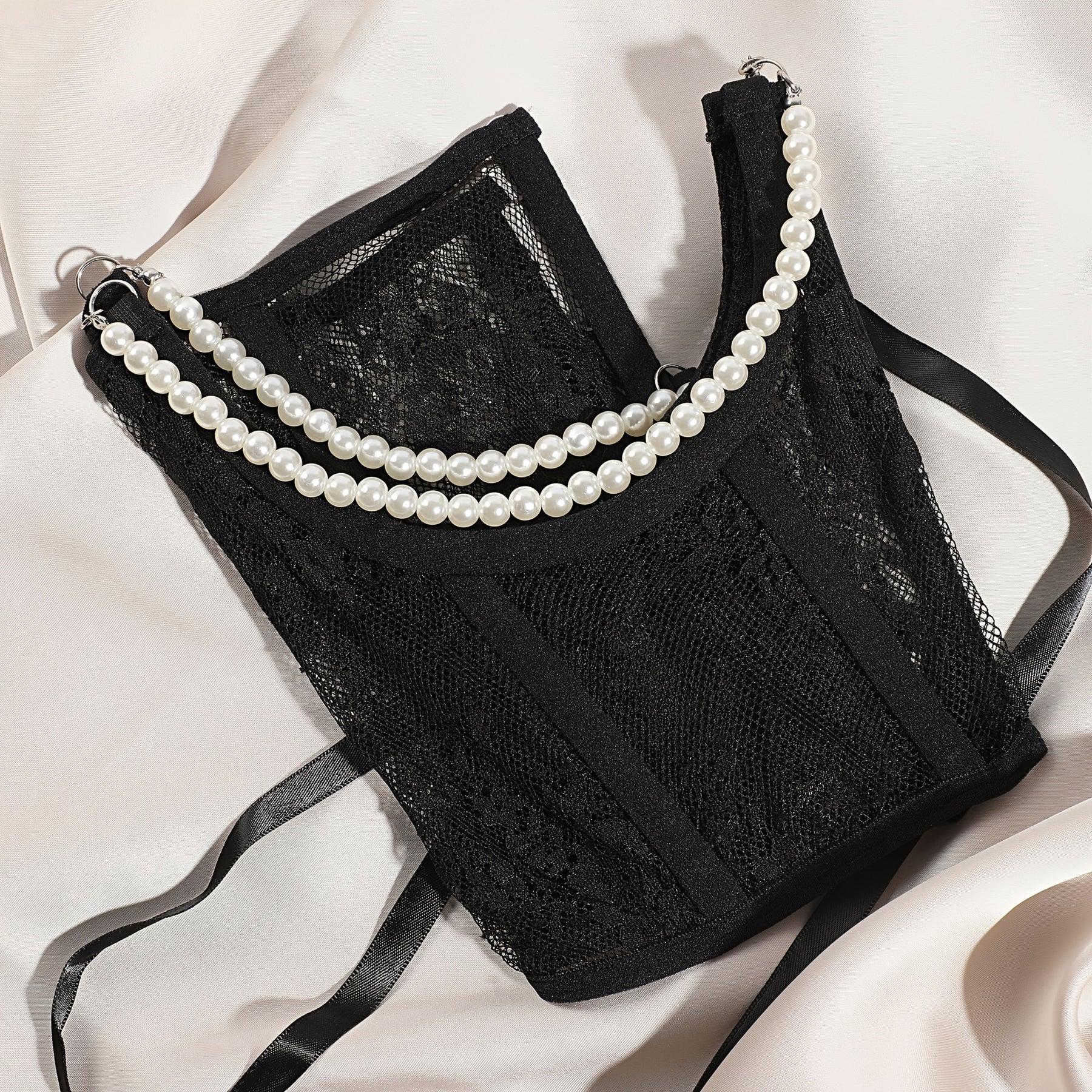 Add a touch of vintage French charm to your outfits with this lace corset belt featuring faux pearl accents. Perfect for casual outings and date nights, this elastic waist cincher pairs beautifully with dresses and shirts.