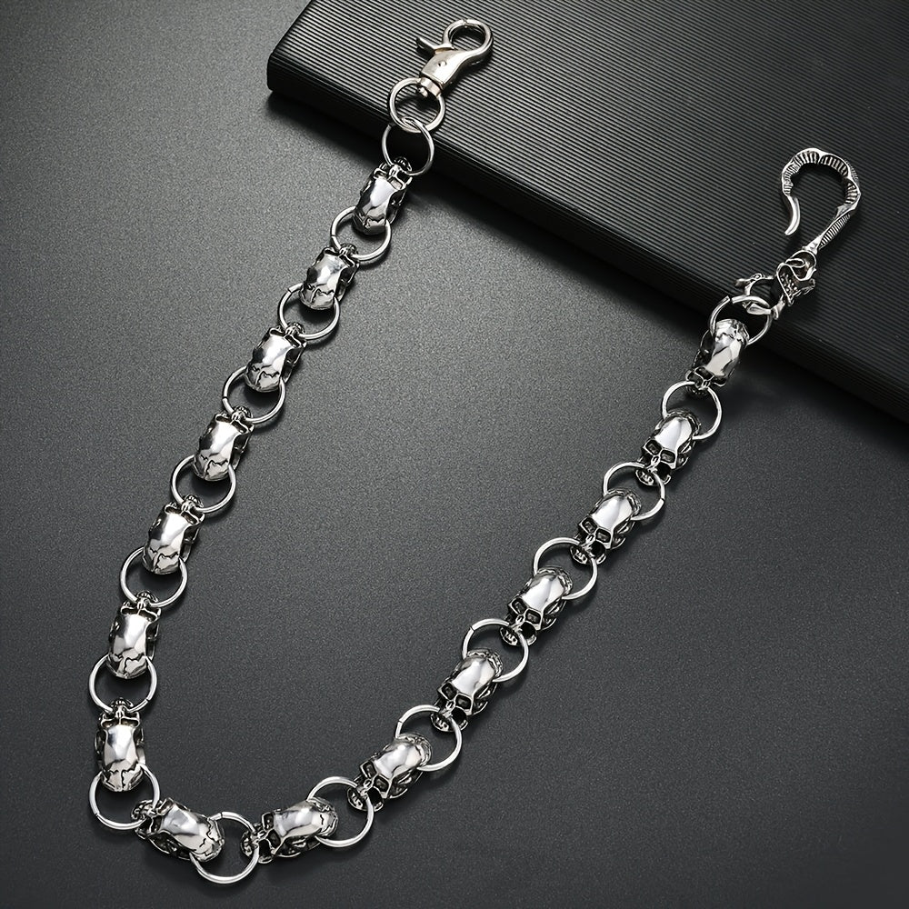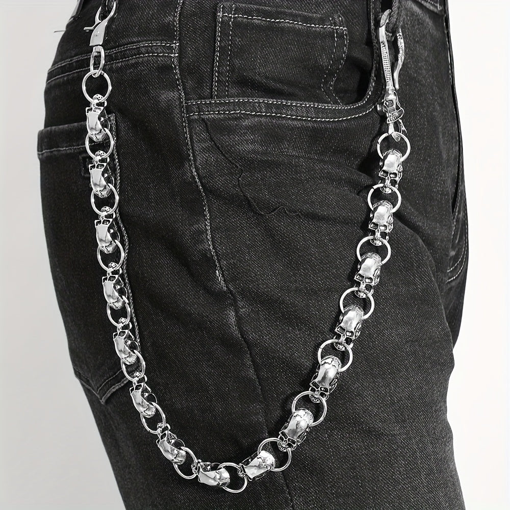 Elevate your style with this fashionable Gothic skull head pants chain decoration denim belt. Perfect for any outfit.
