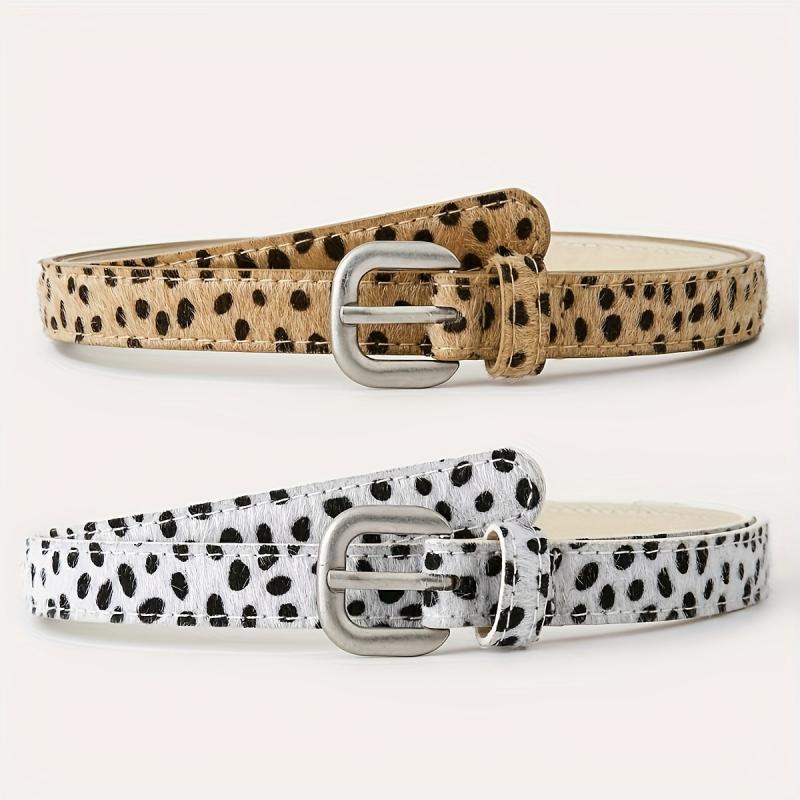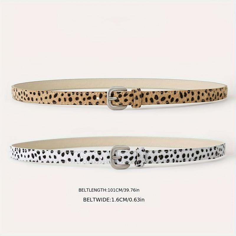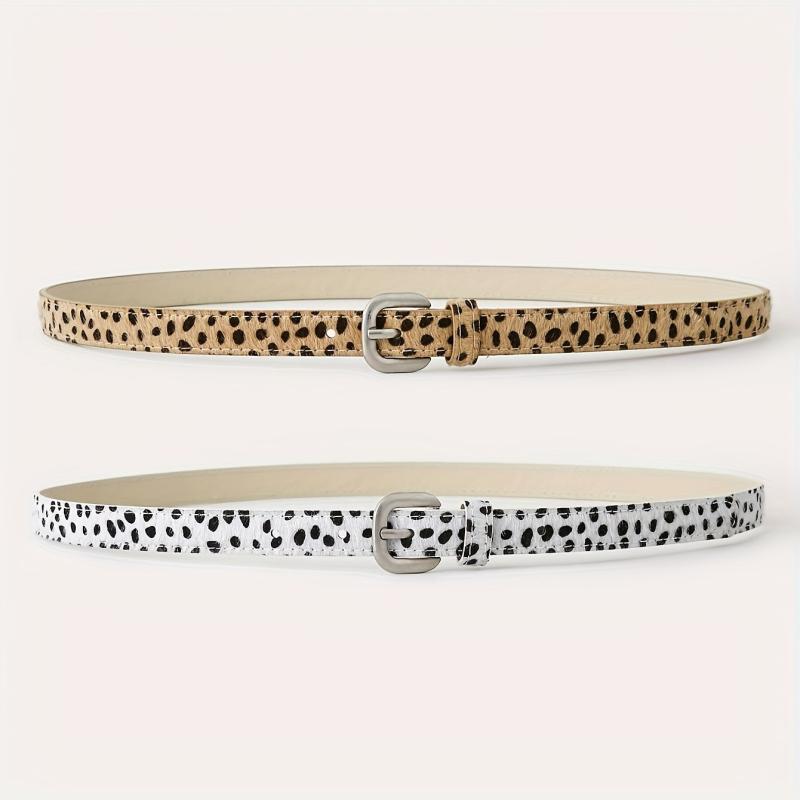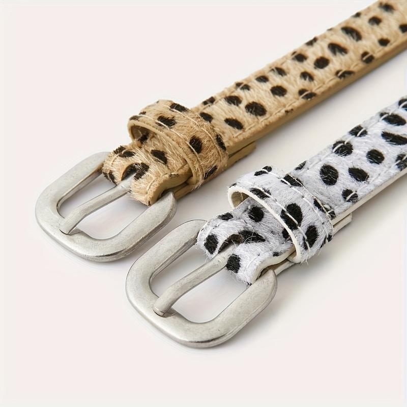 Add a touch of style to your outfit with this leopard print slim belt featuring a metal buckle. Perfect for jeans or accessorizing a casual look.