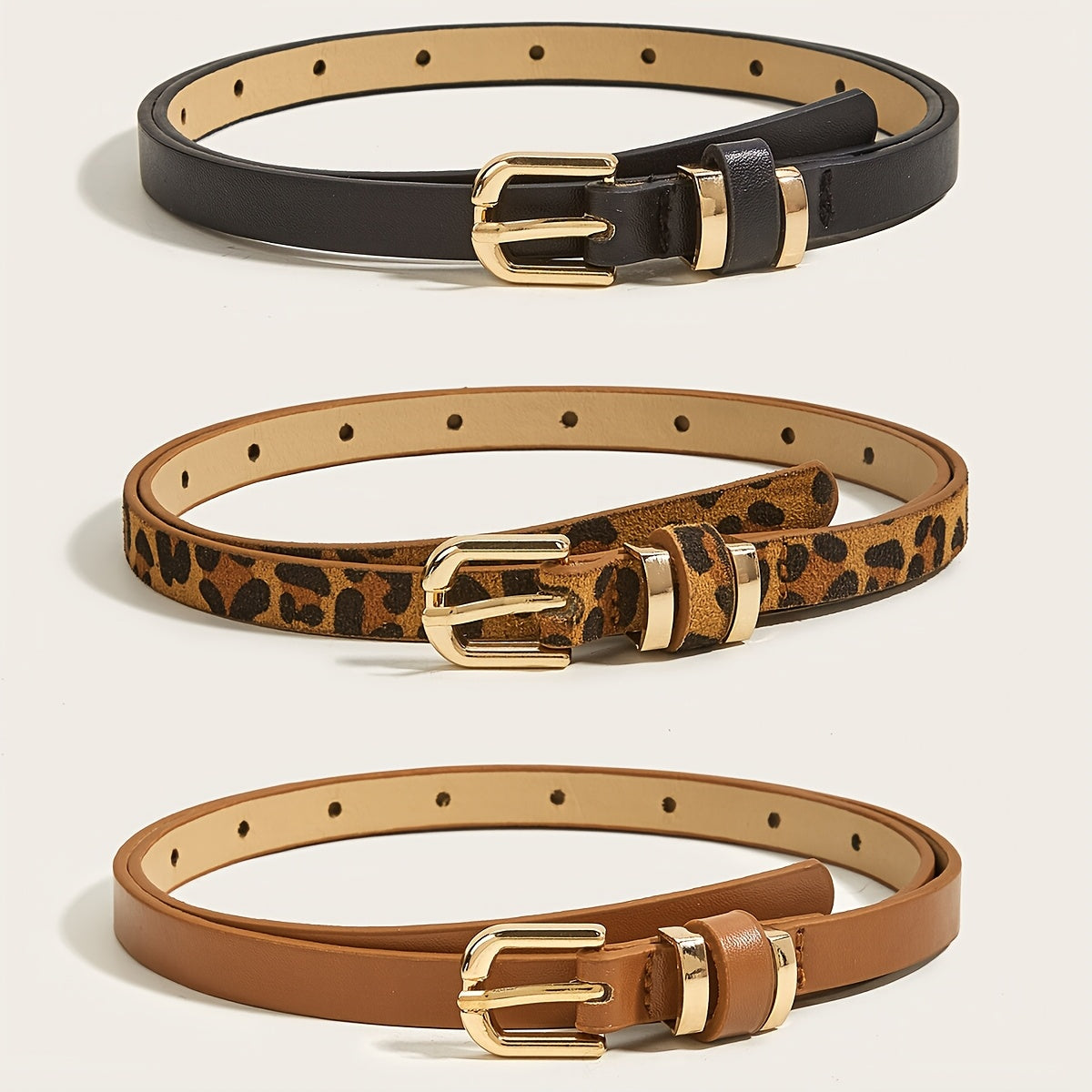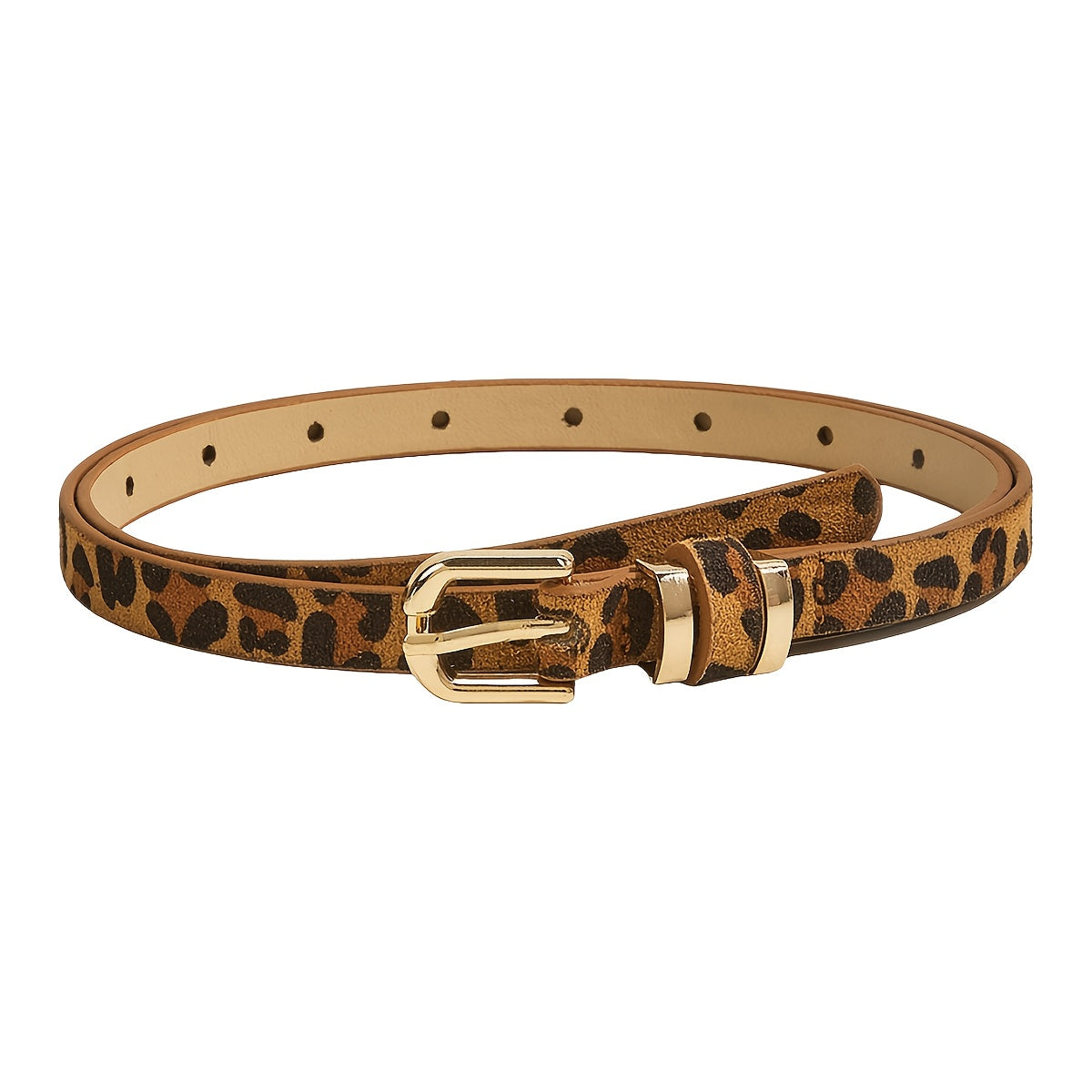Add a touch of style to your outfits with this leopard print belt featuring a golden metal buckle. Made from high-quality PU material, this belt is versatile and perfect for jeans, casual pants, and dresses. Great gift idea for Christmas or any occasion.