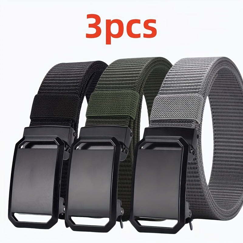 Men's Automatic Buckle Nylon Belt Square Iron Buckle