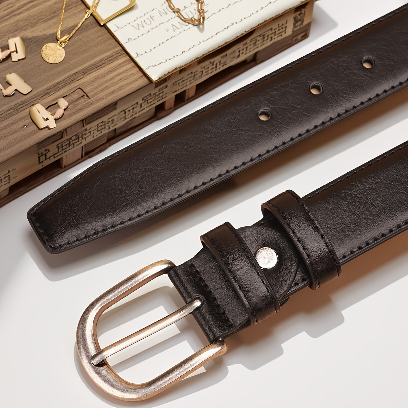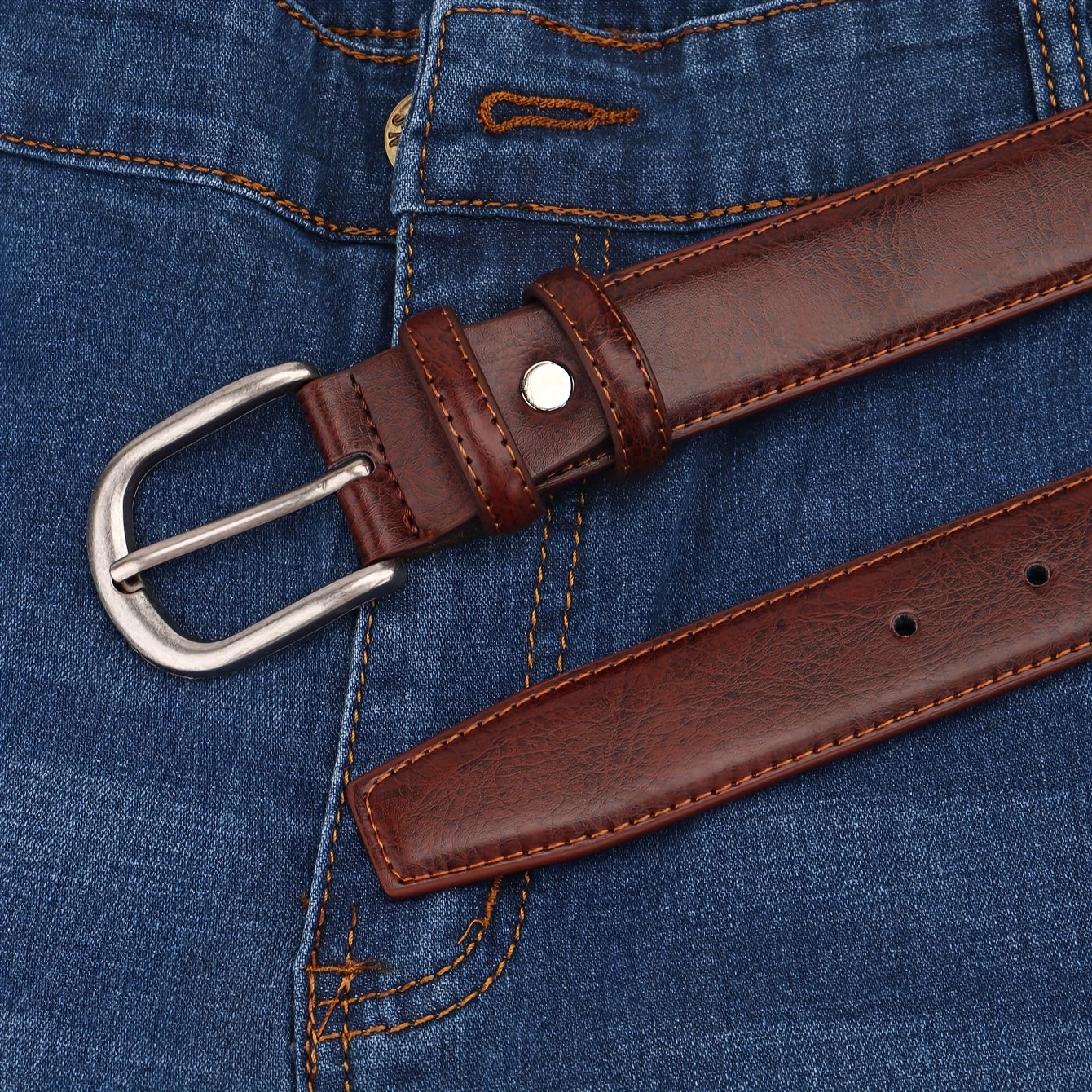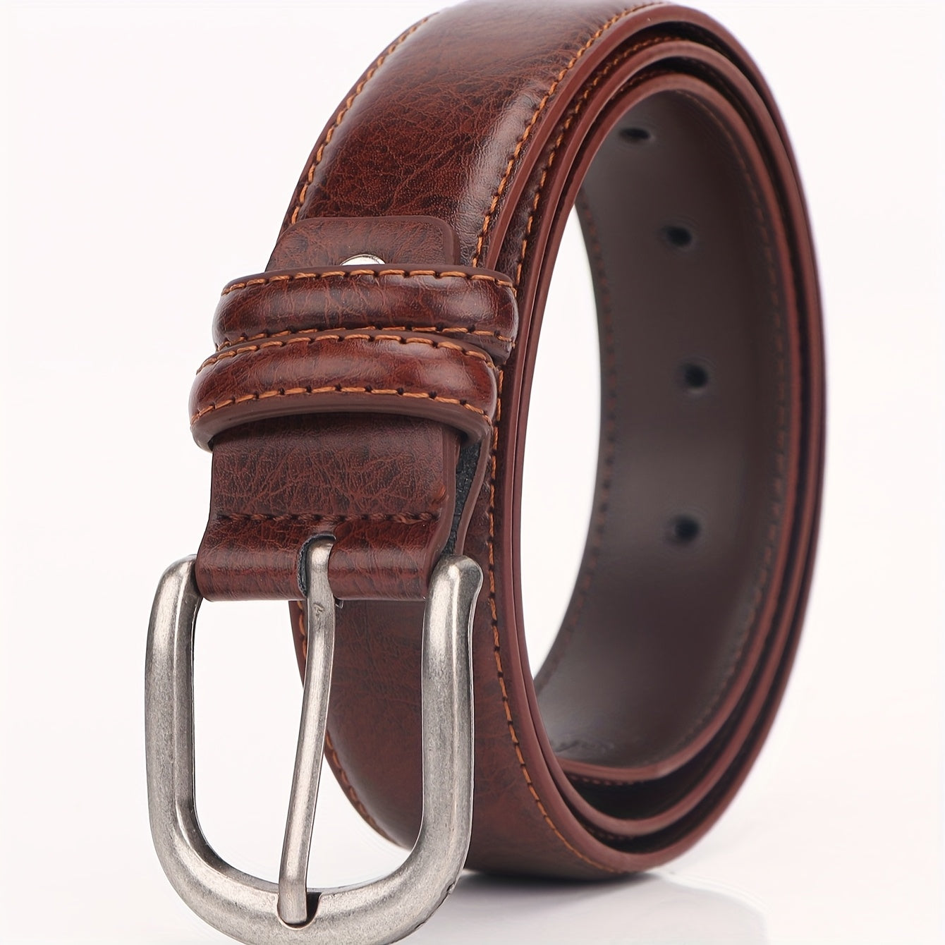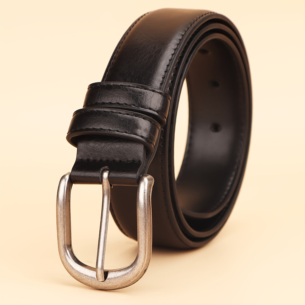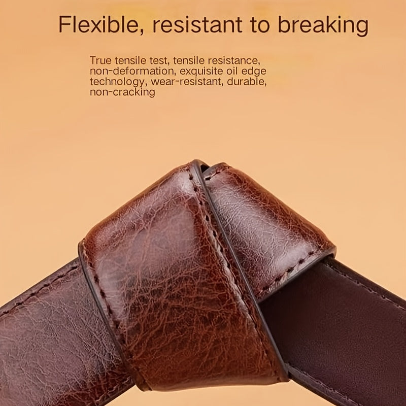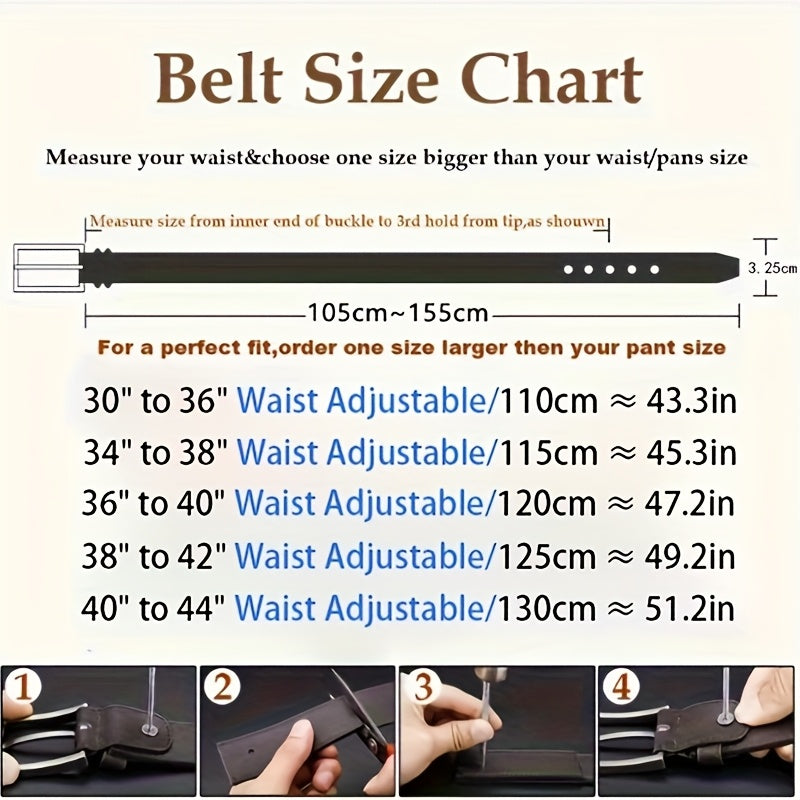 This men's belt features a classic alloy oval buckle with sequins for a stylish and decorative look. It is durable and comfortable to wear.