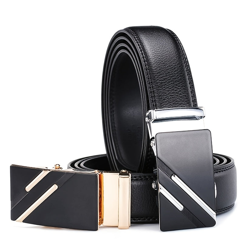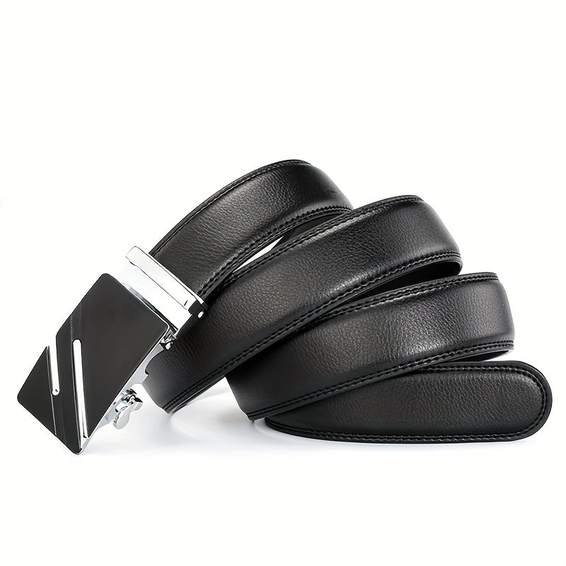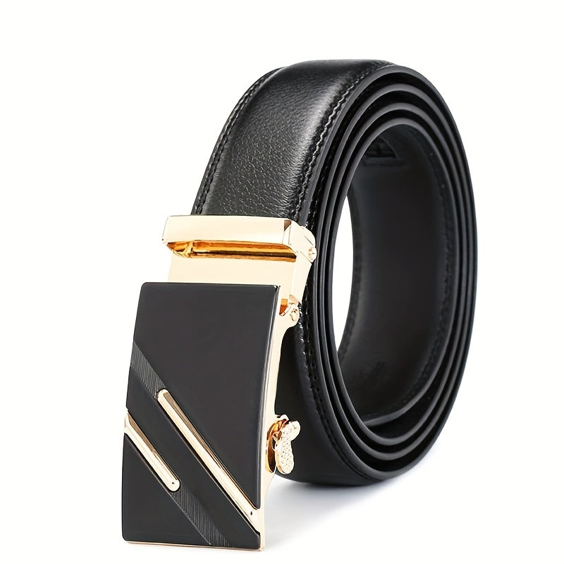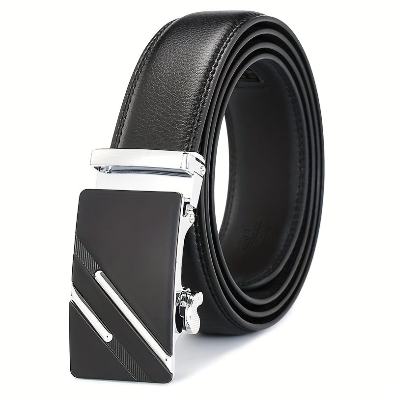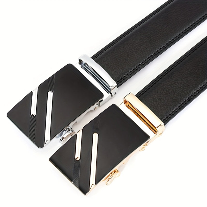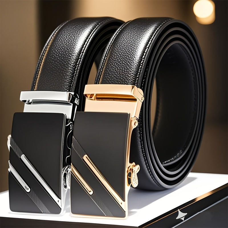 Men's Business Casual Belt Faux Leather Automatic Alloy Buckle Adjustable Length
