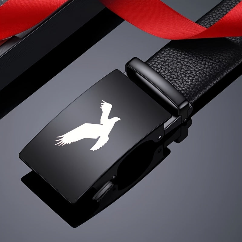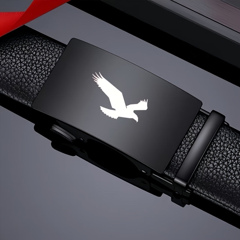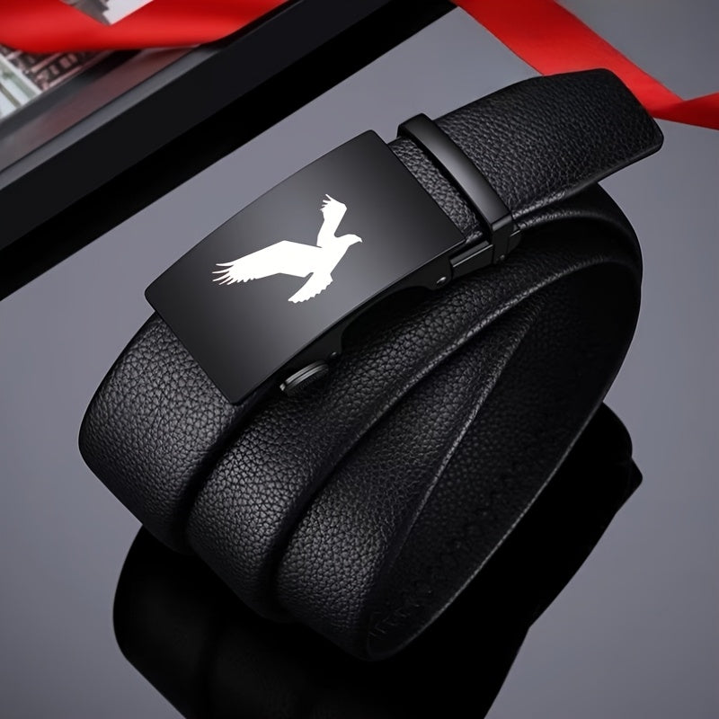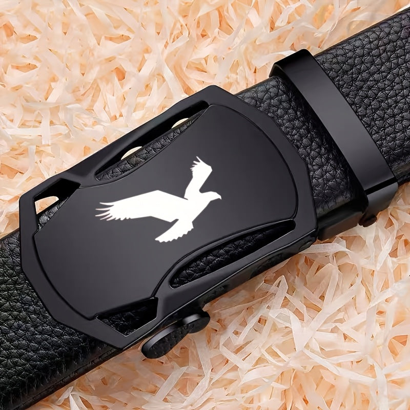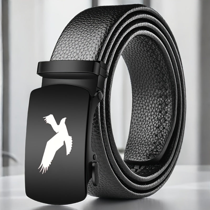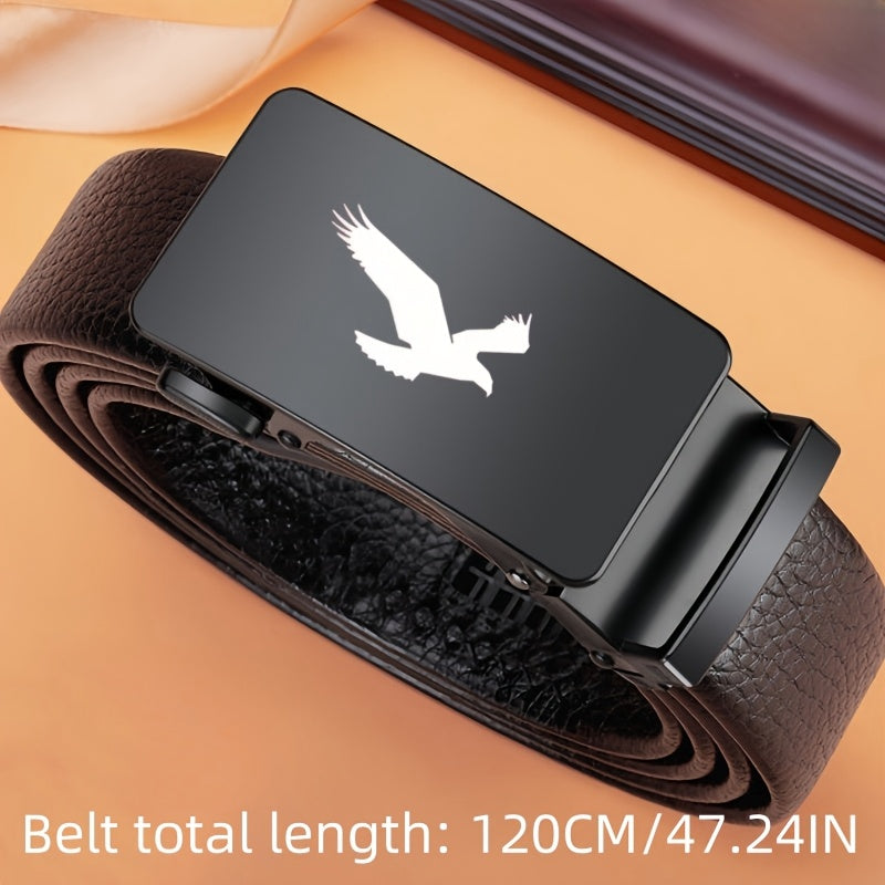 Elevate your style with this versatile faux leather belt featuring an automatic buckle and stylish eagle embossing. Ideal for both casual and formal occasions.
