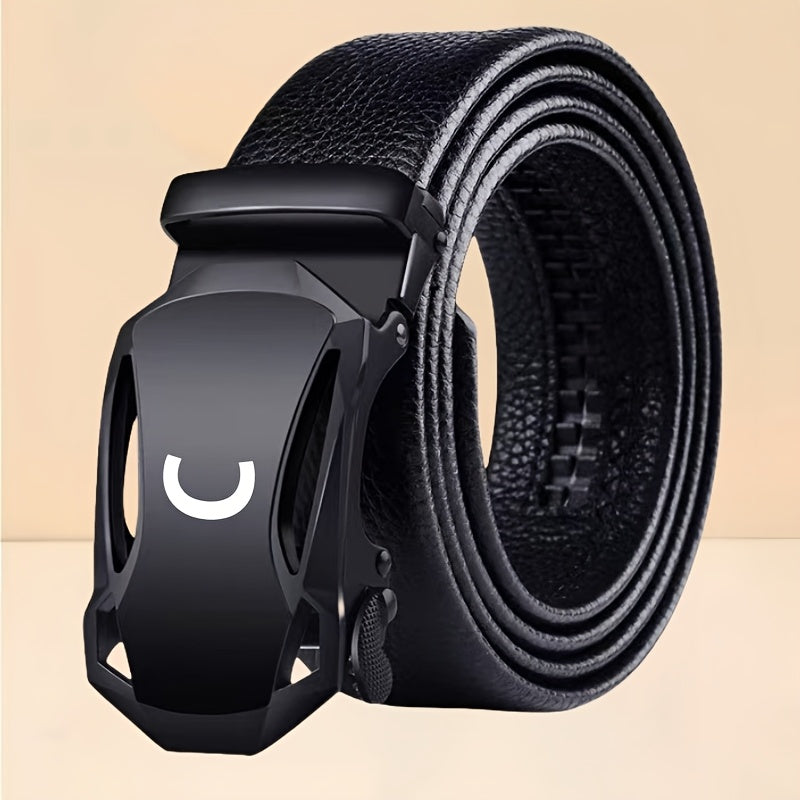 Elevate your style with this faux leather belt featuring a stylish sports car textured surface.