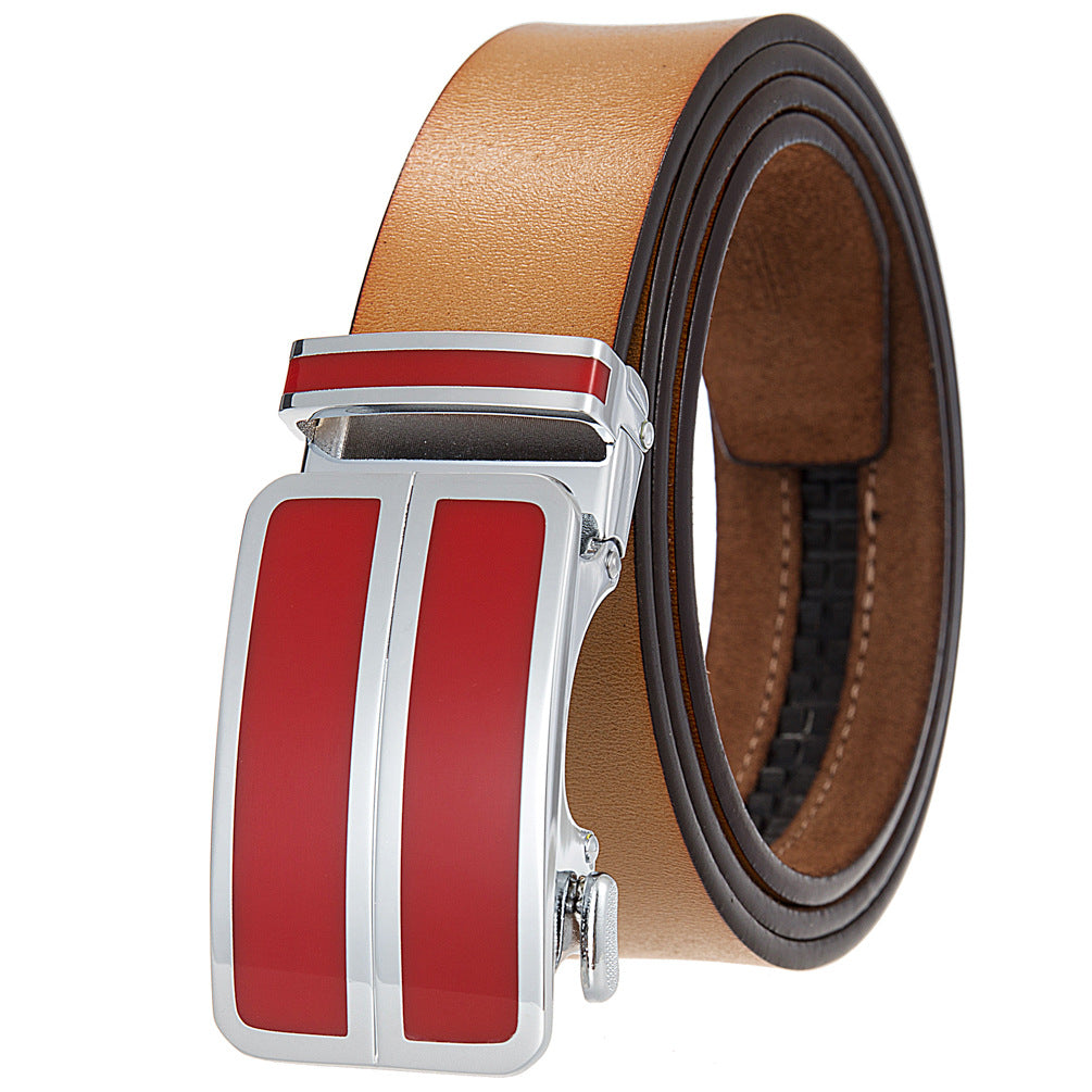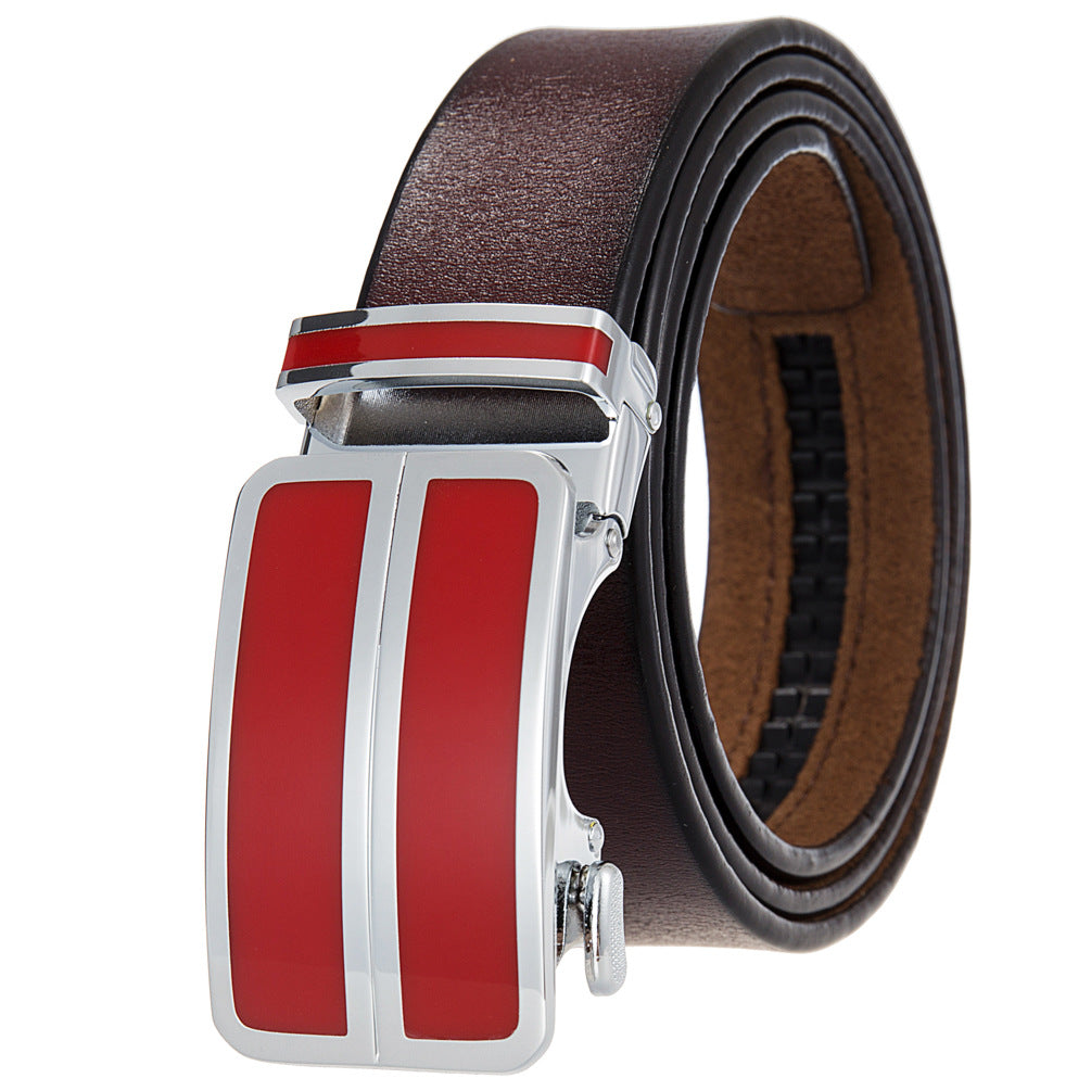 Elegant belt for men with automatic buckle, made of high-quality leather featuring a stylish square pattern design. Ideal for youth and middle-aged men.