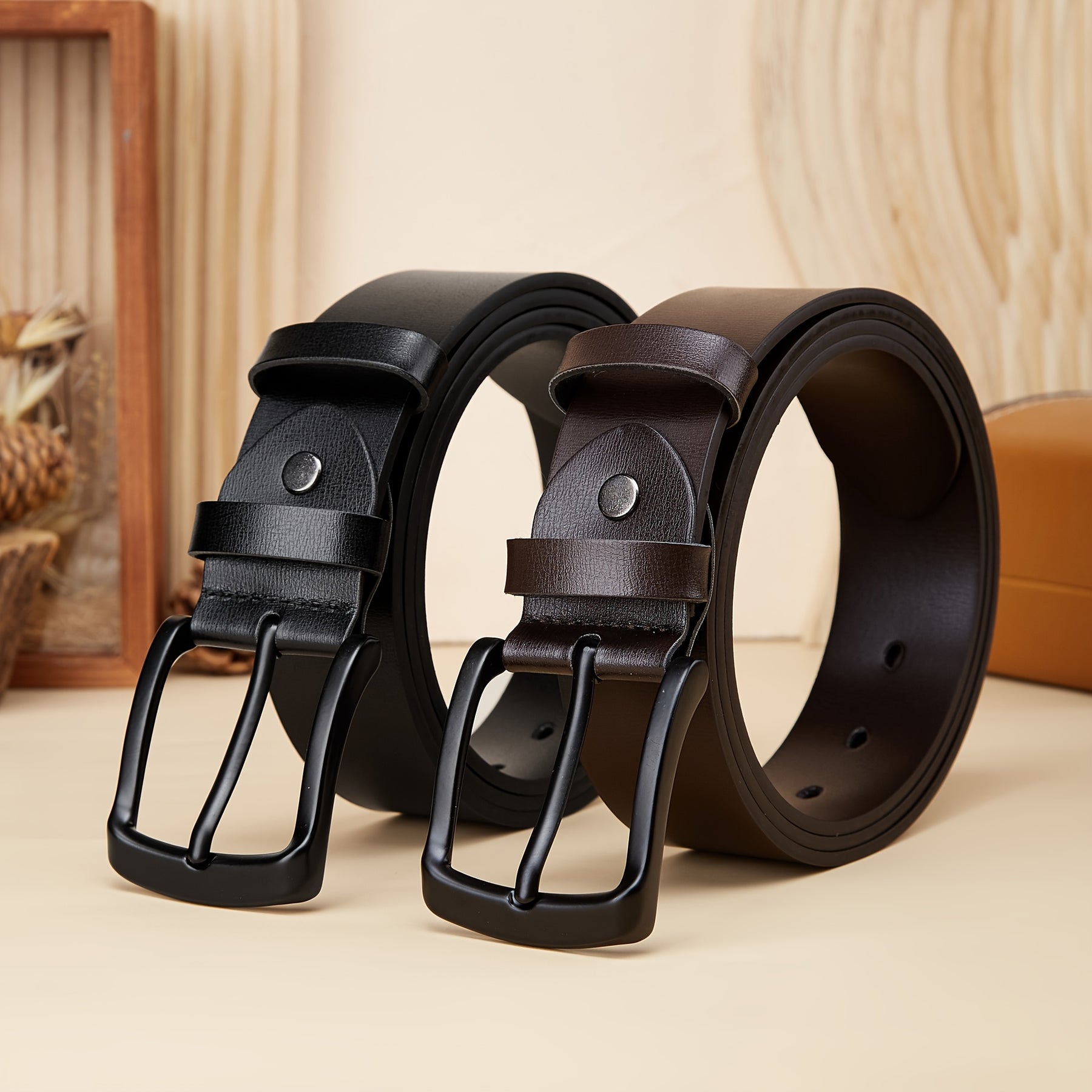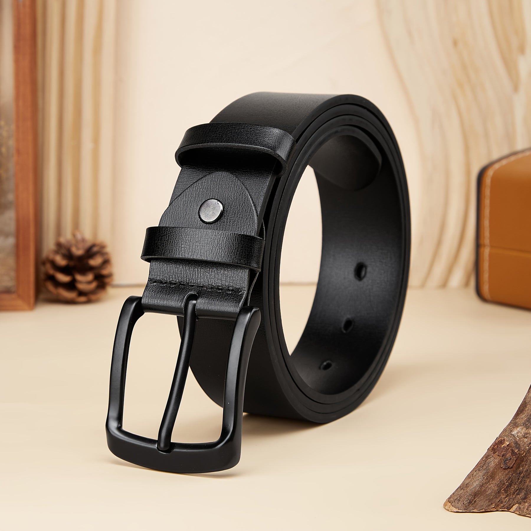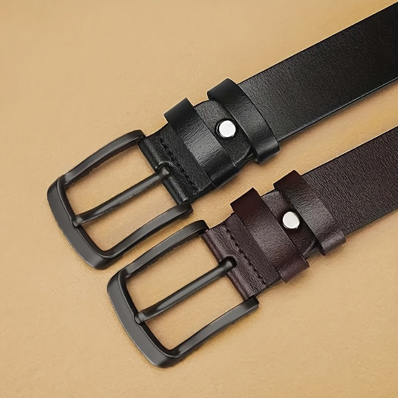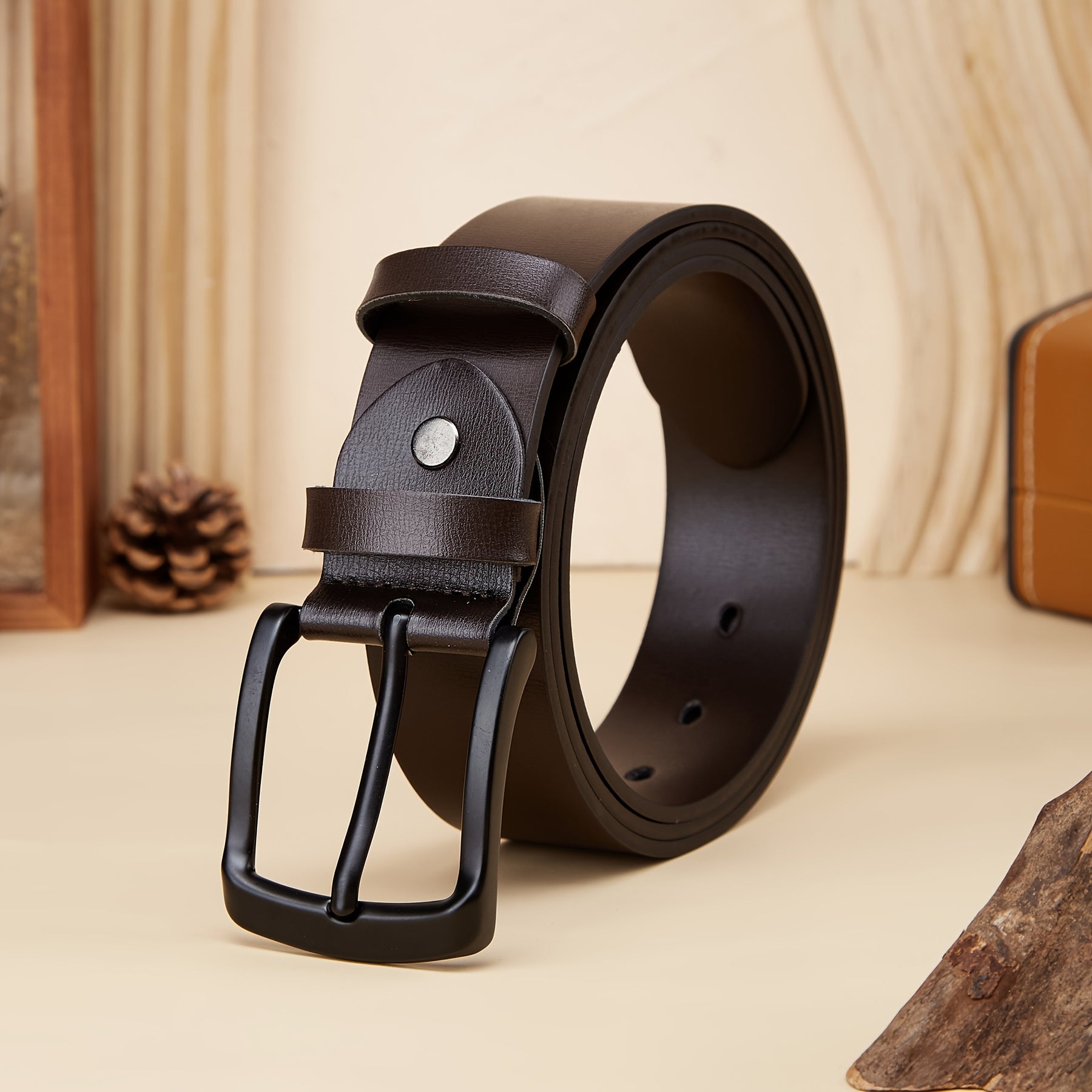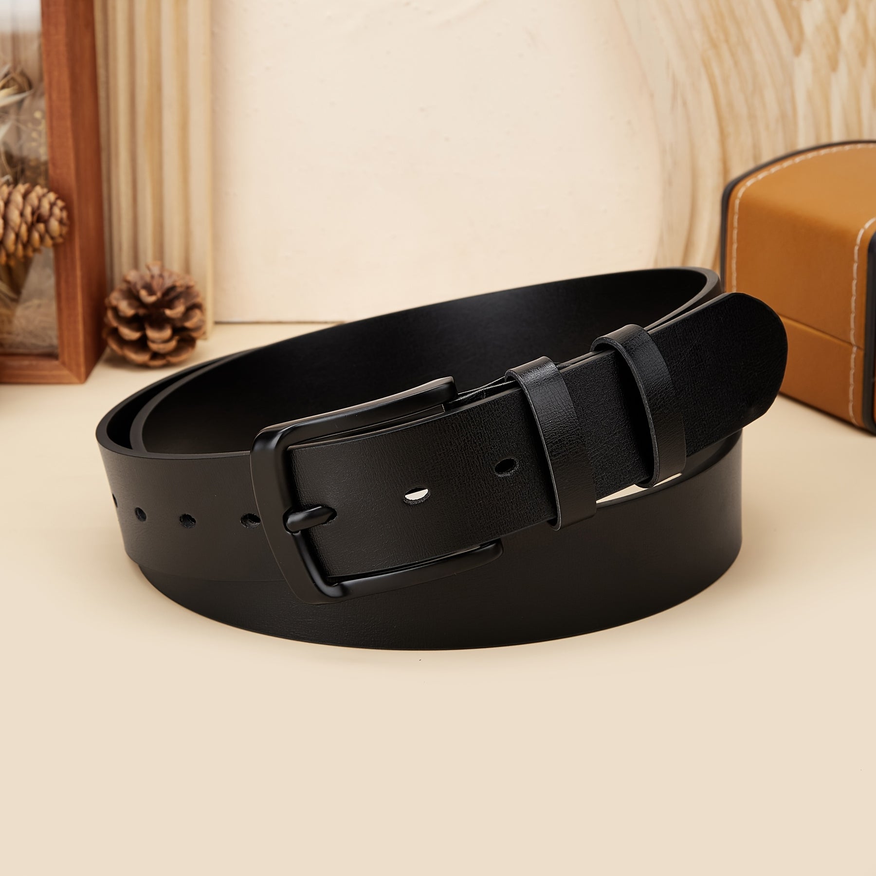 Men's Leather Belt with Classic Alloy Buckle, Adjustable Size