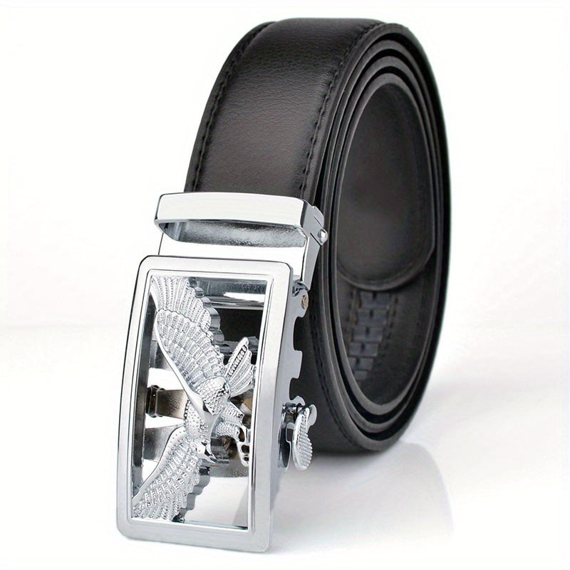 This men's belt features a high eagle pattern on genuine leather with an automatic buckle, perfect for business or casual wear.