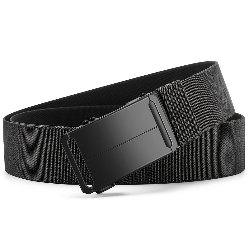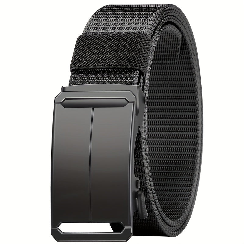 This men's tactical belt is made of durable and flexible elastic nylon, perfect for outdoor activities. The sleek minimalist design features hollow details for added style.