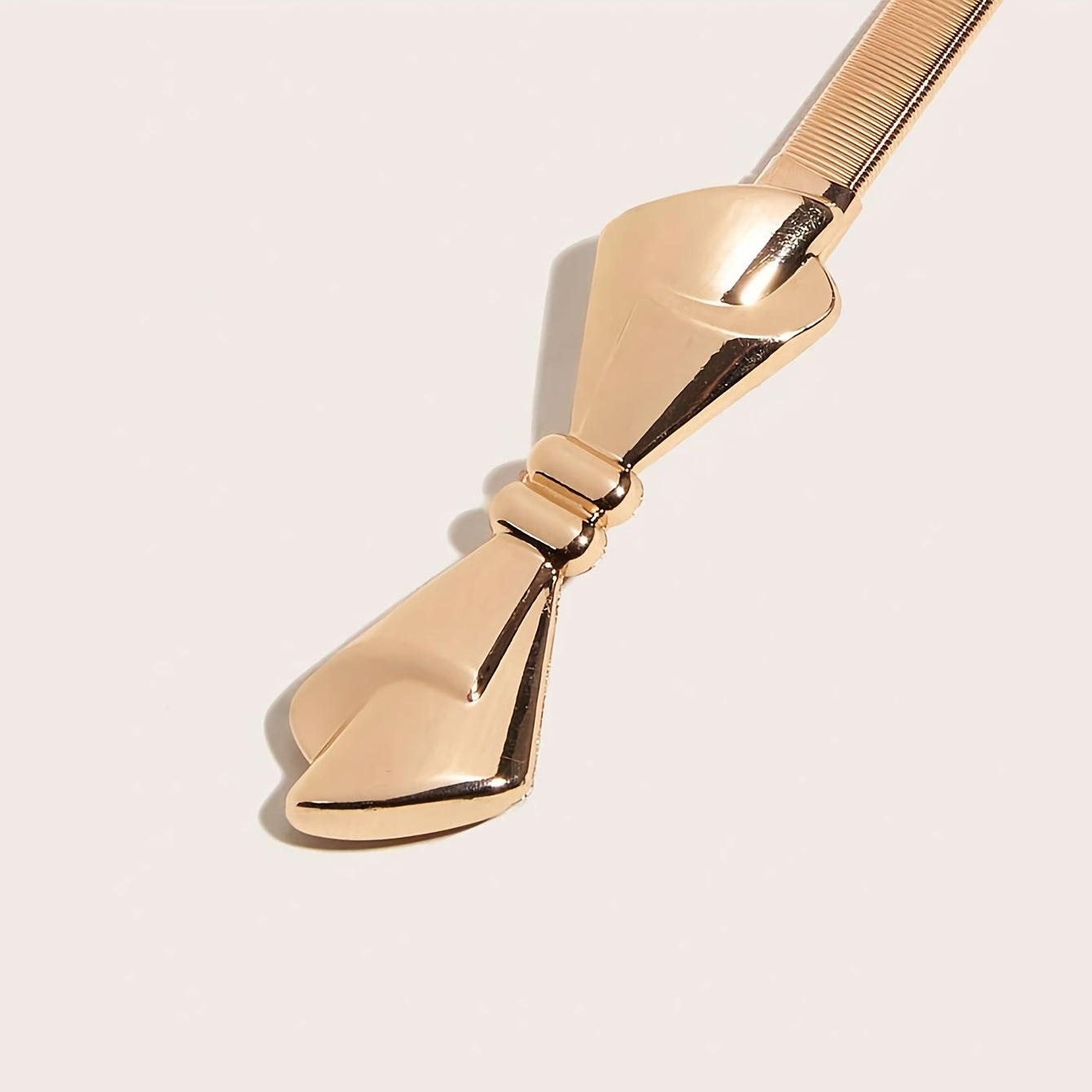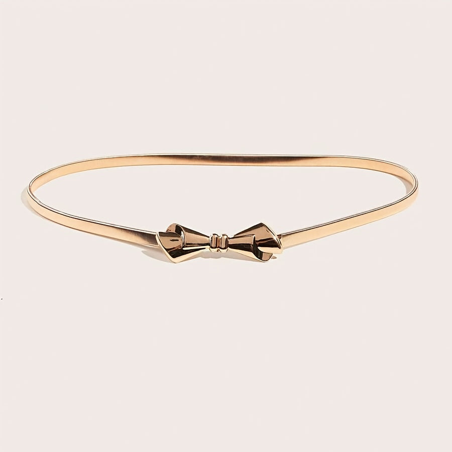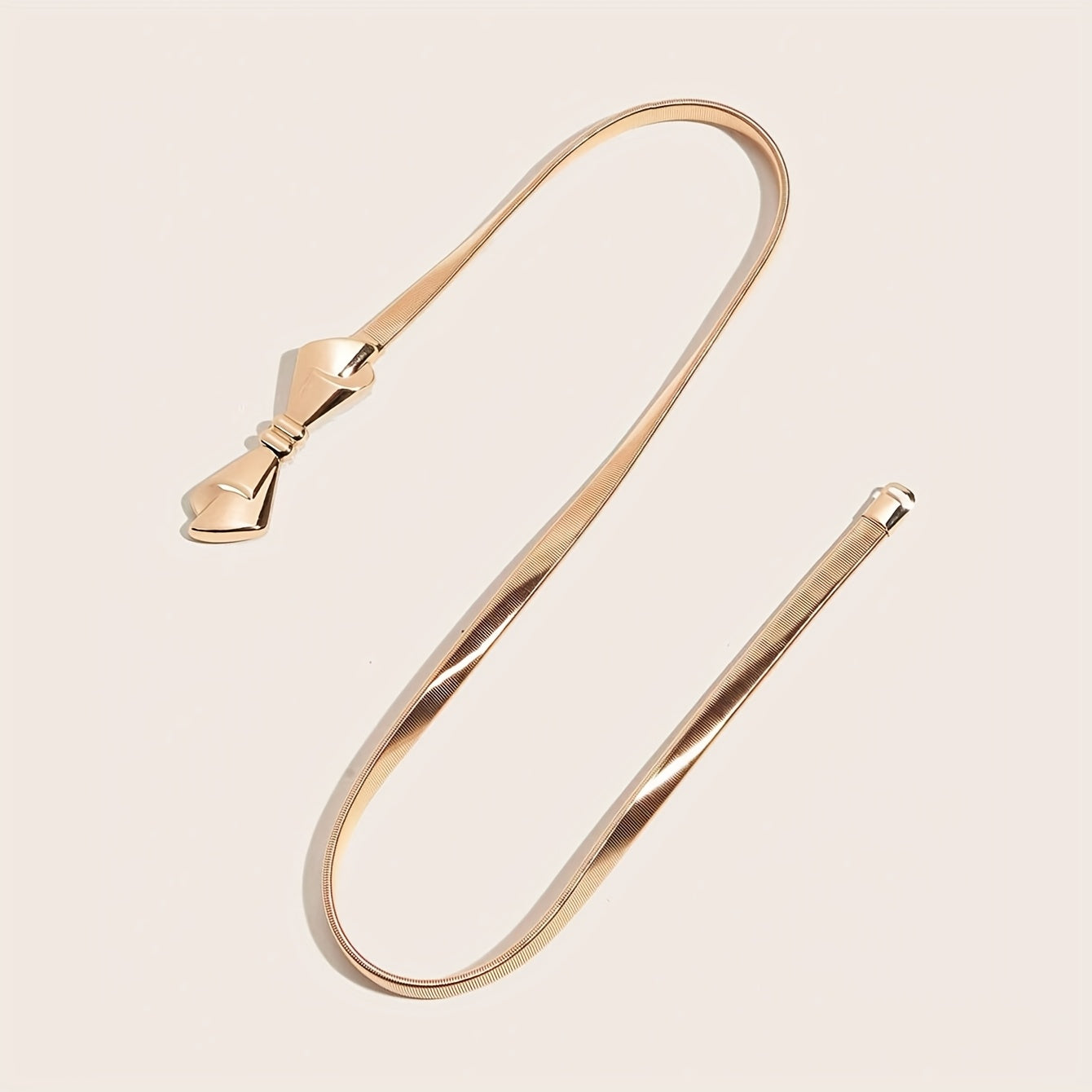 Add a touch of elegance to your outfit with this versatile metallic spring waist chain. The butterfly buckle design adds a stylish flair, making it a perfect dress accessory.