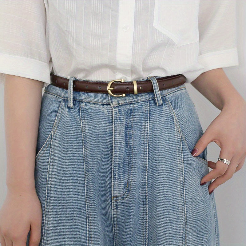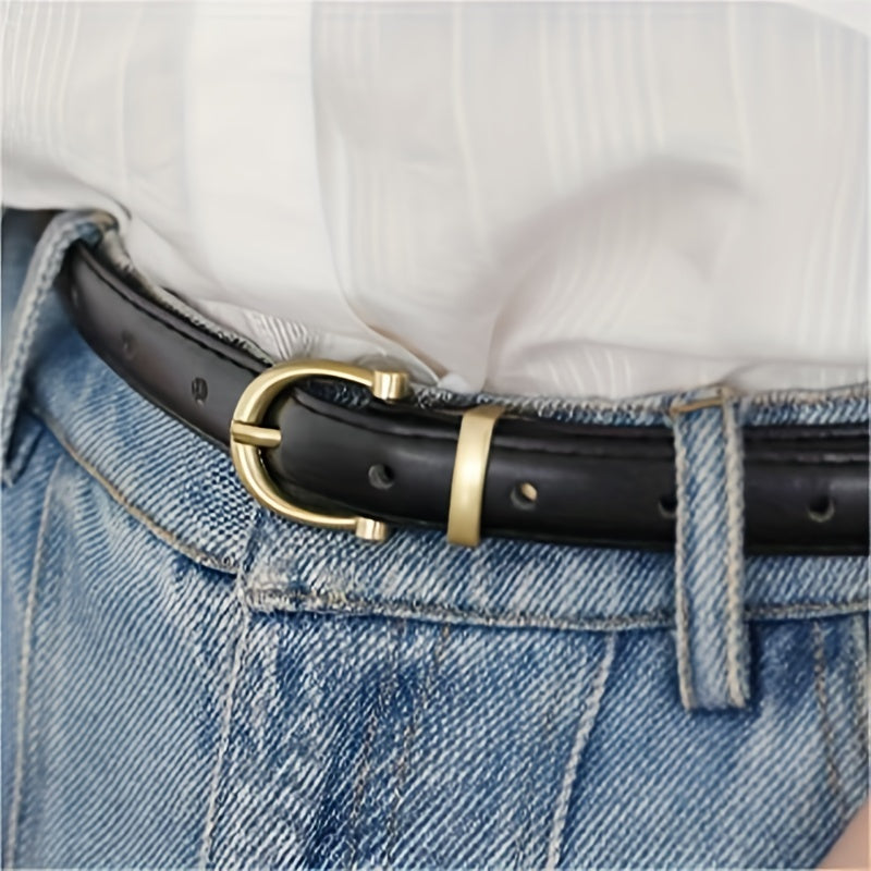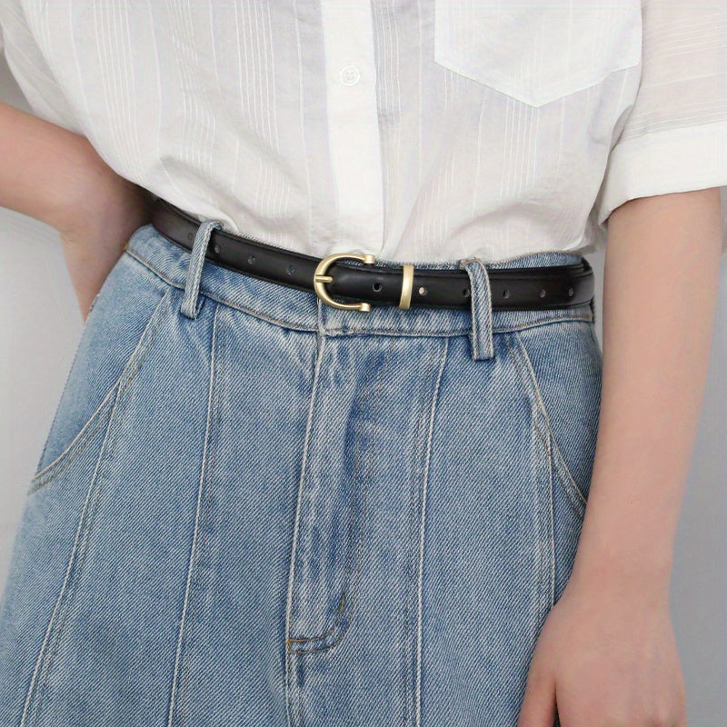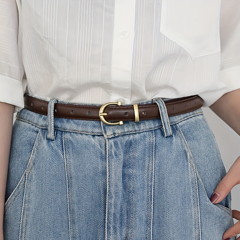 This retro oval pin buckle belt is made of high-quality PU leather, perfect for adding style to dresses, coats, and jeans.