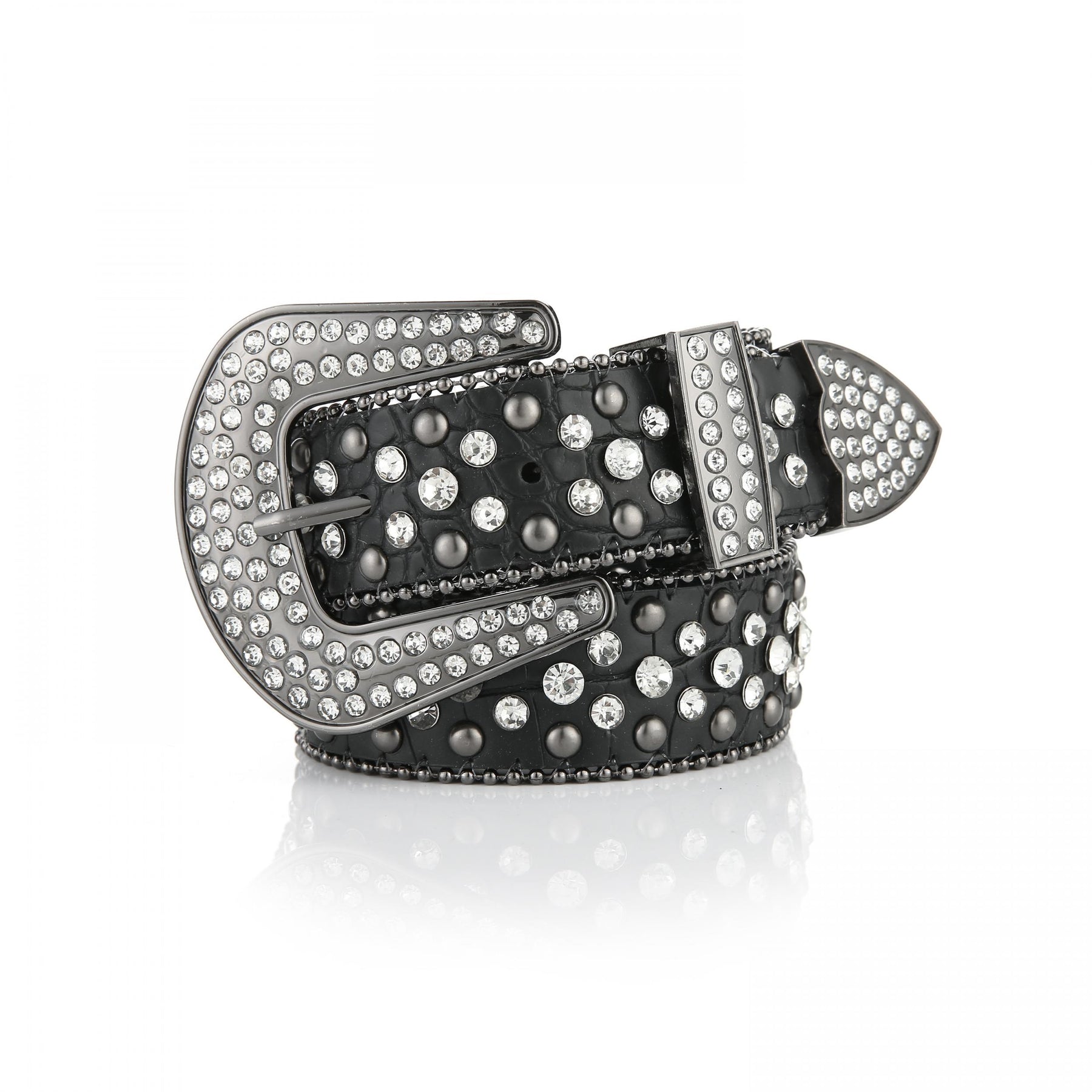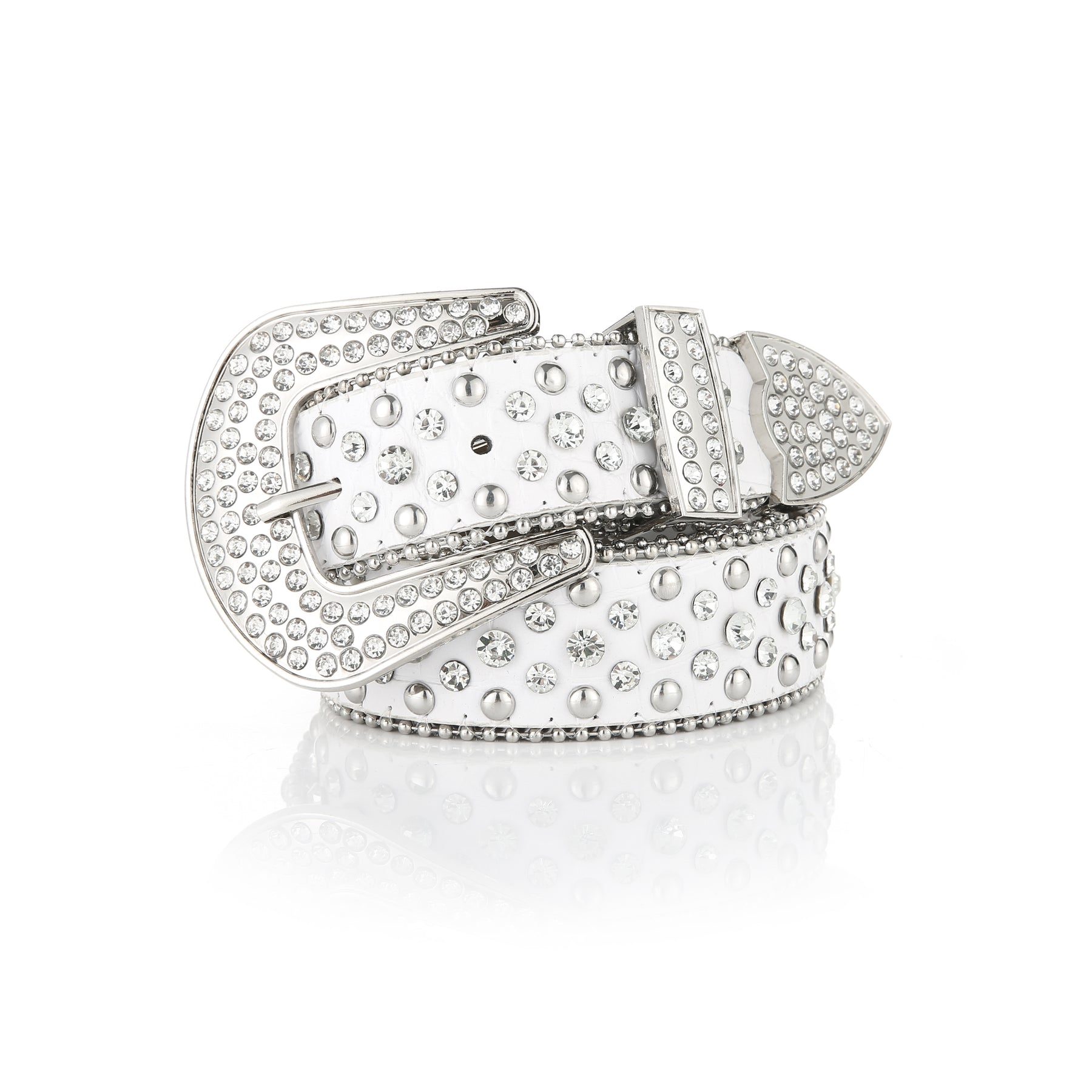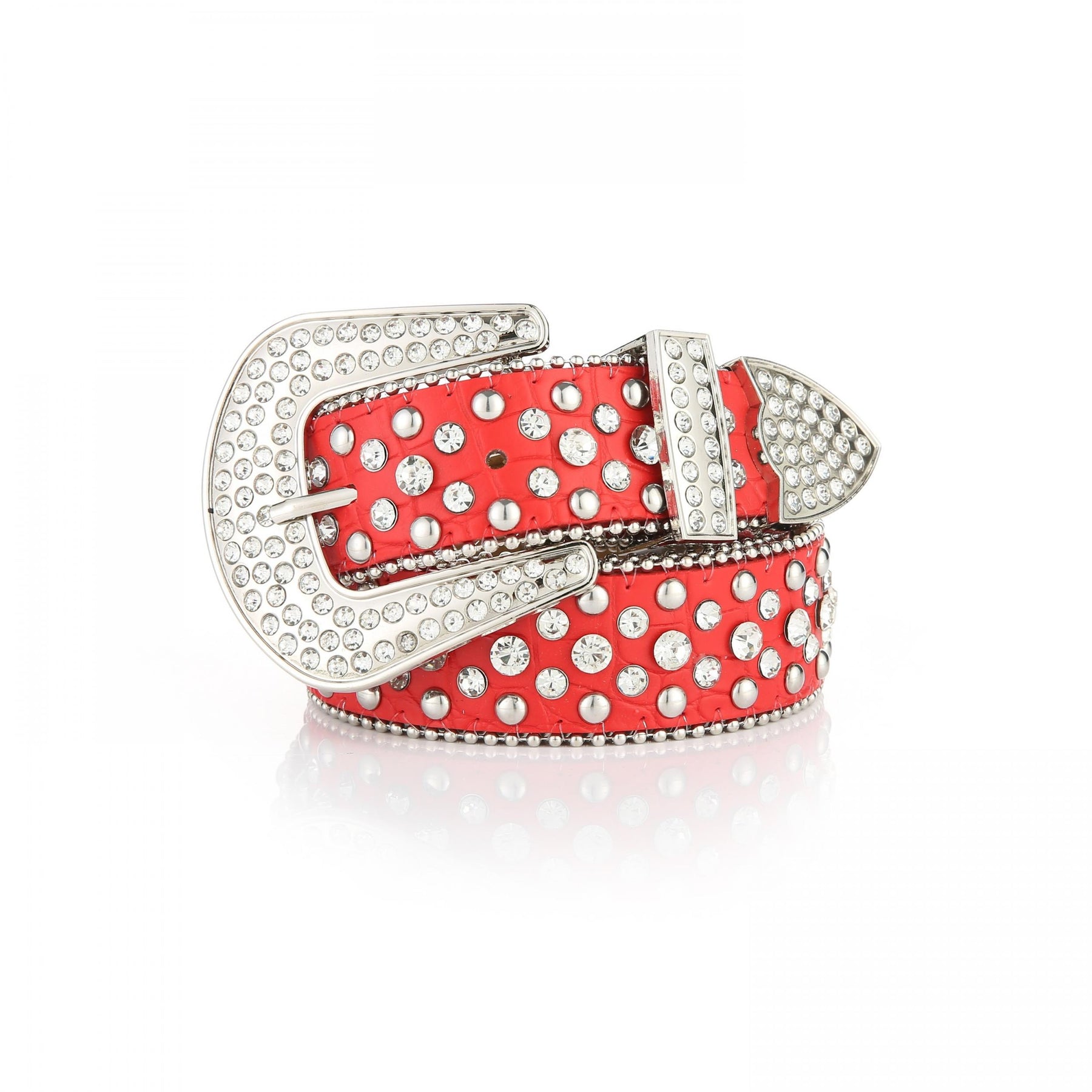 Add some bling to your outfit with this sparkling Rhinestone Rivet Belt. Made from high-quality PU leather, this belt is perfect for both women and men and adds a touch of style to any jeans or pants.