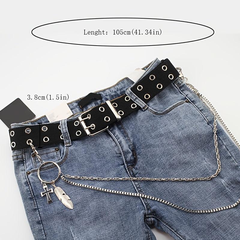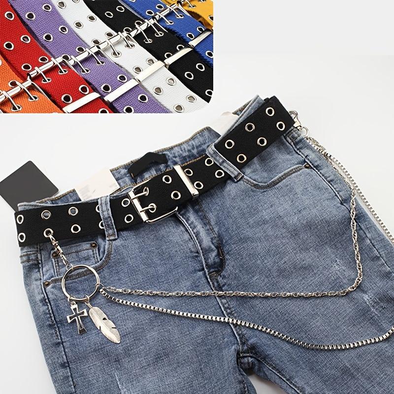 Add a trendy touch to your outfits with this street style belt featuring double row street holes. Perfect for casual wear and adding edge to your jeans!