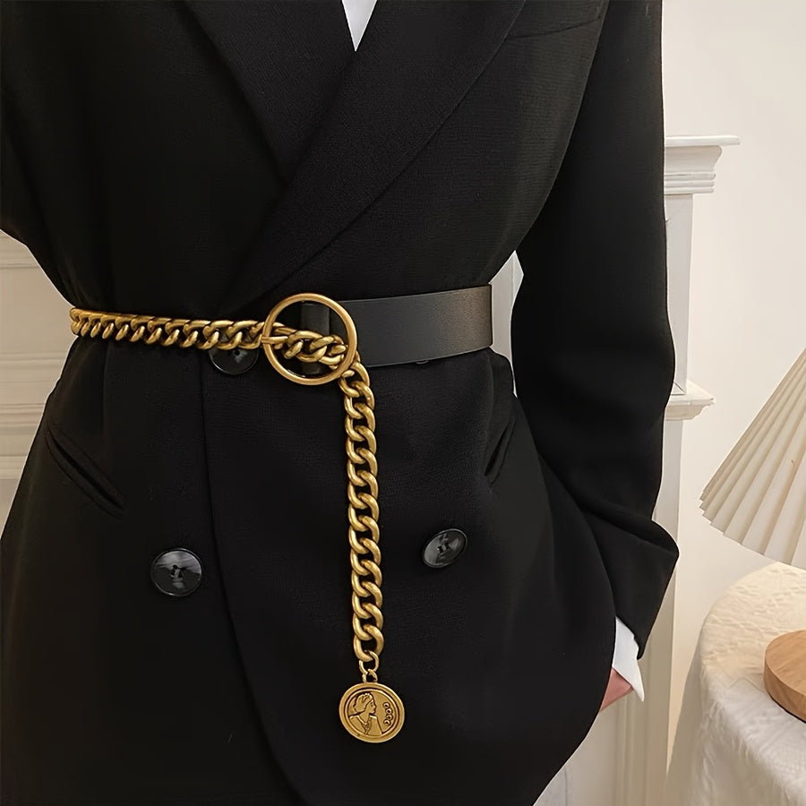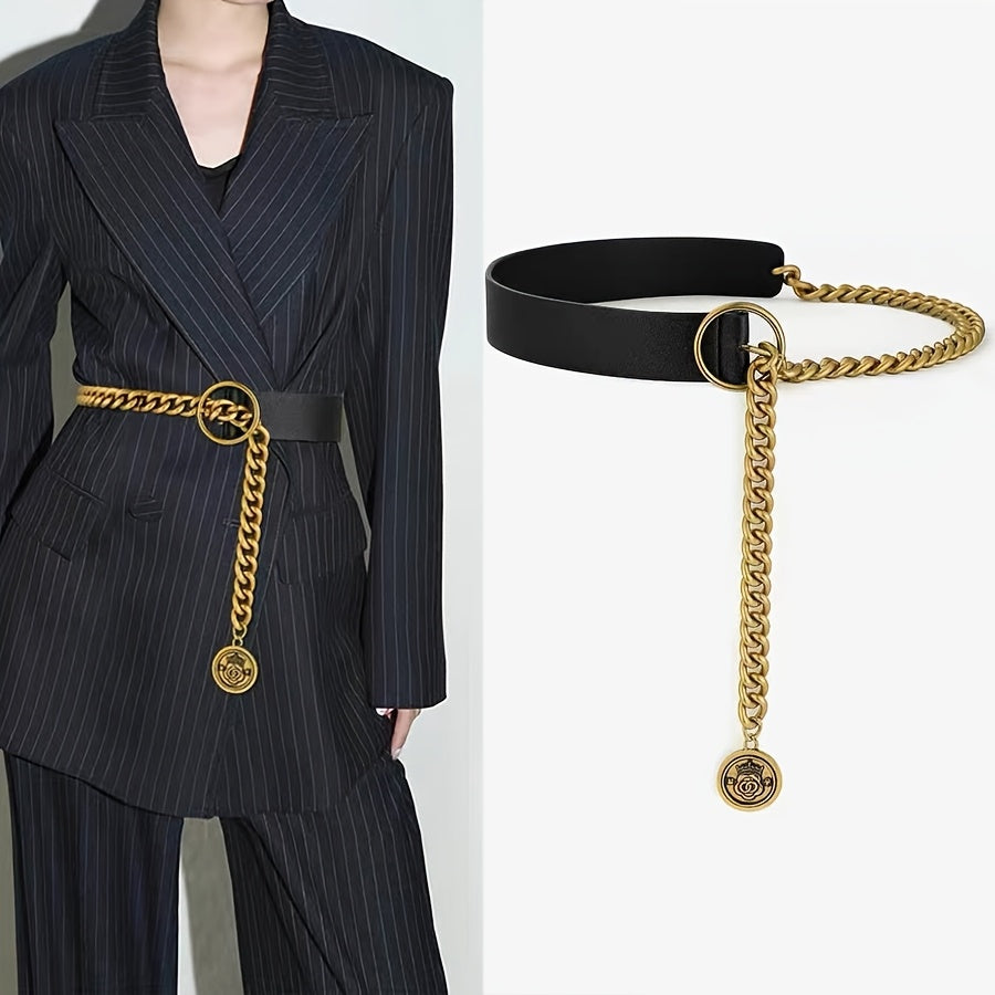 Add a touch of elegance to your outfits with this waist chain featuring a golden chain pendant. Perfect for both casual and formal occasions, this belt is a versatile accessory that can elevate any look.