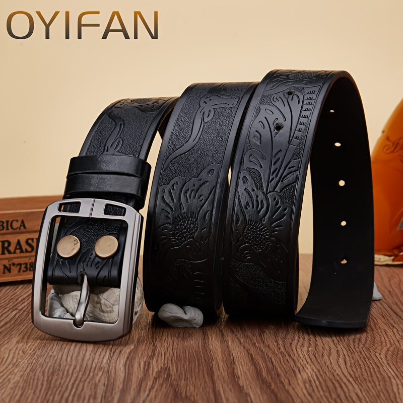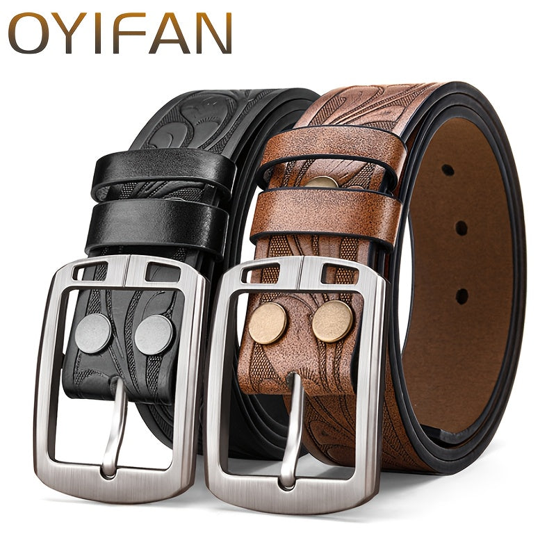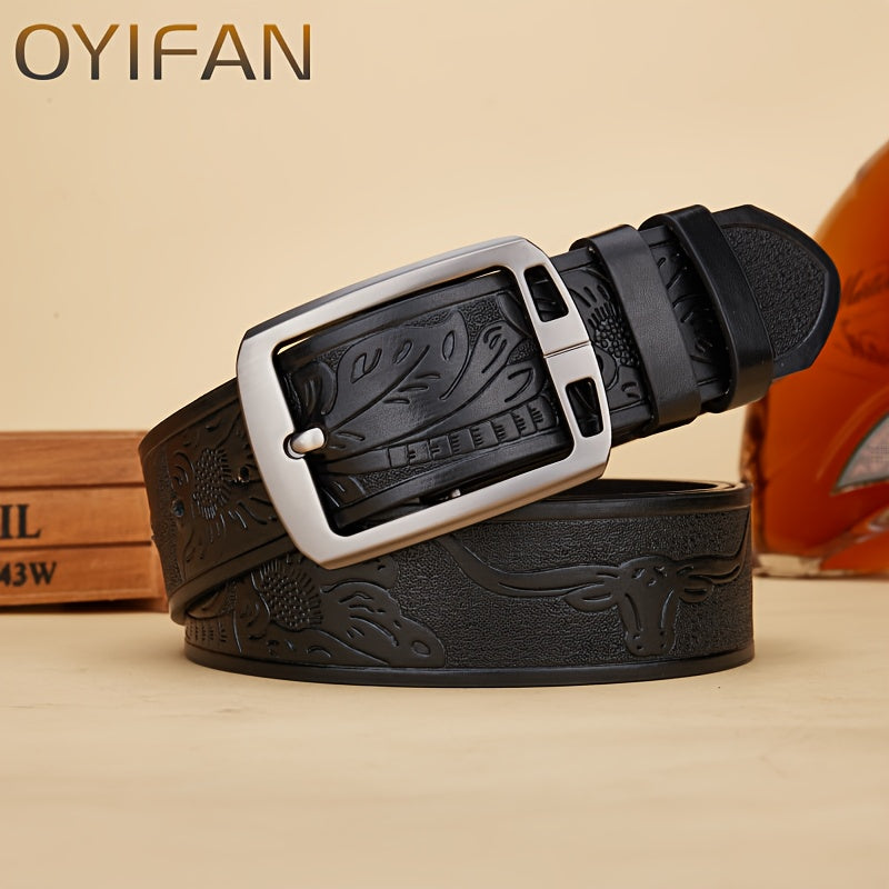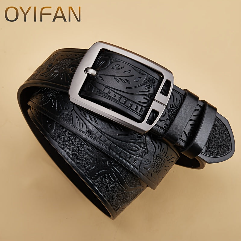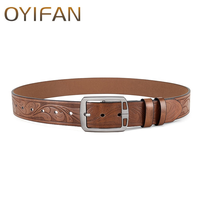 This Western Cowboy Belt features a wear-resistant alloy buckle with classic retro needle buckle print, perfect for adding a touch of western style to your outfit.