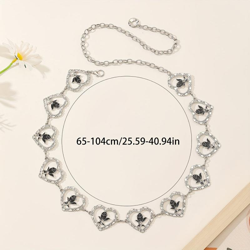 This stylish belt features a metal hollow heart and rose design, perfect for adding a touch of western flair to your summer party outfits. It is adjustable to fit different sizes and makes a great gift for friends.