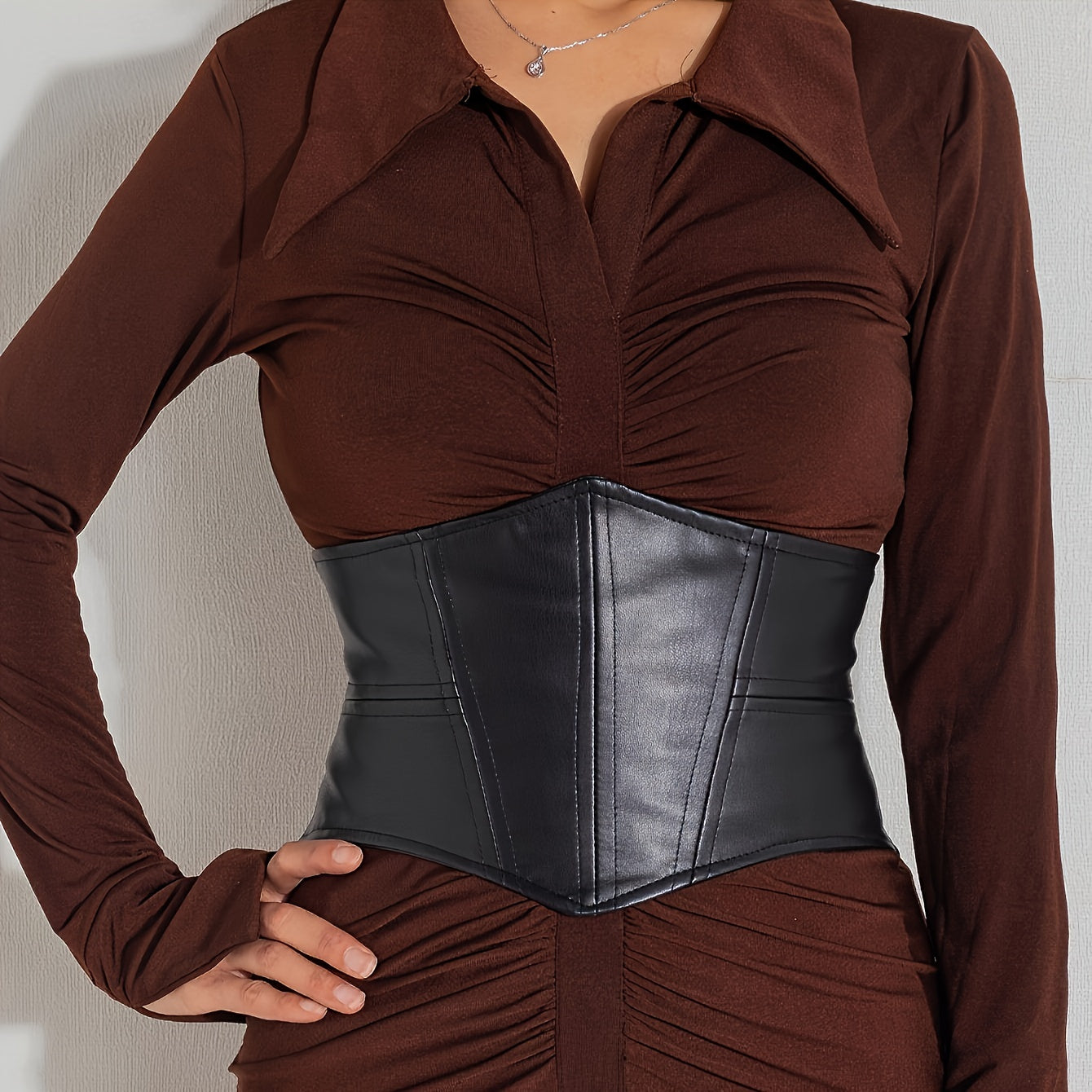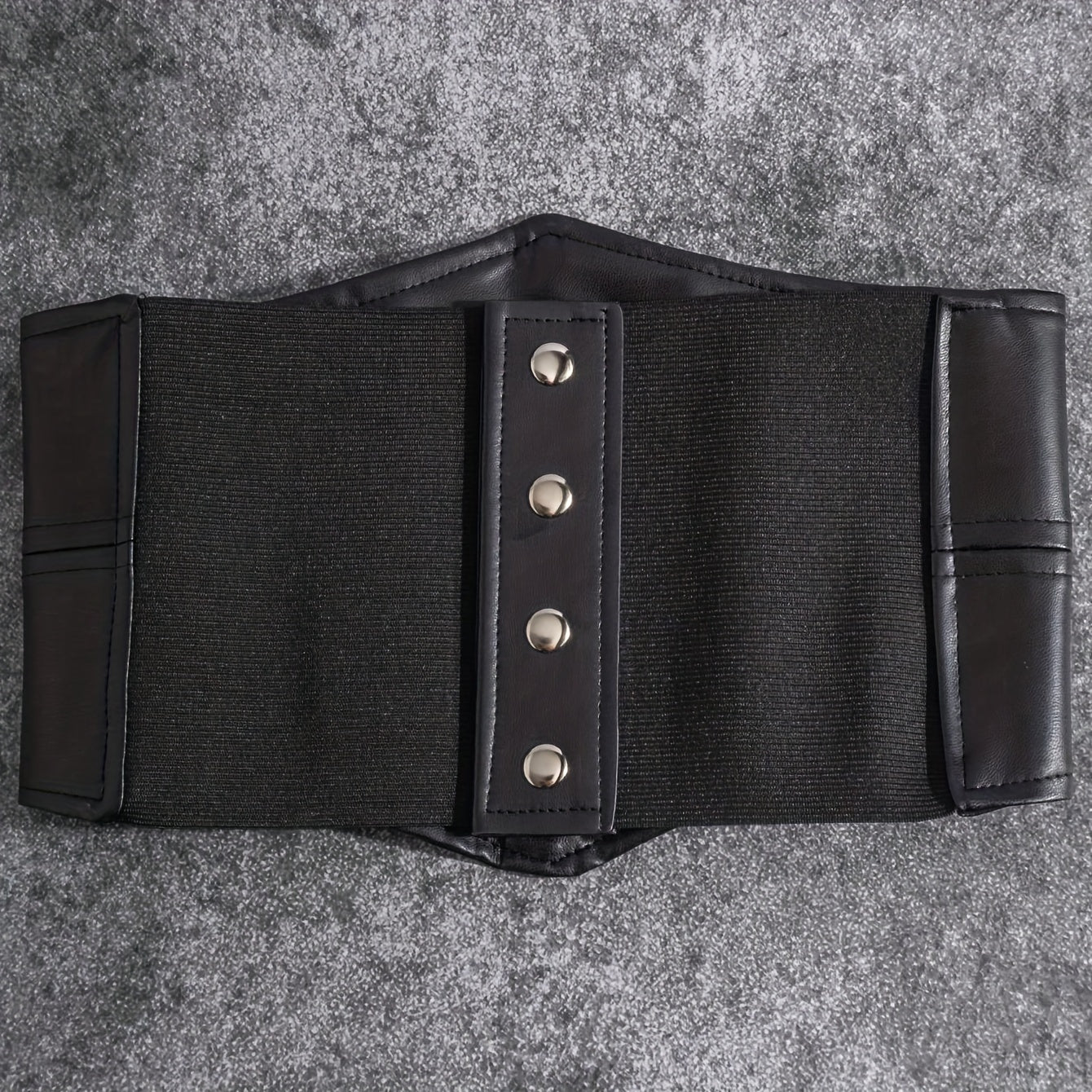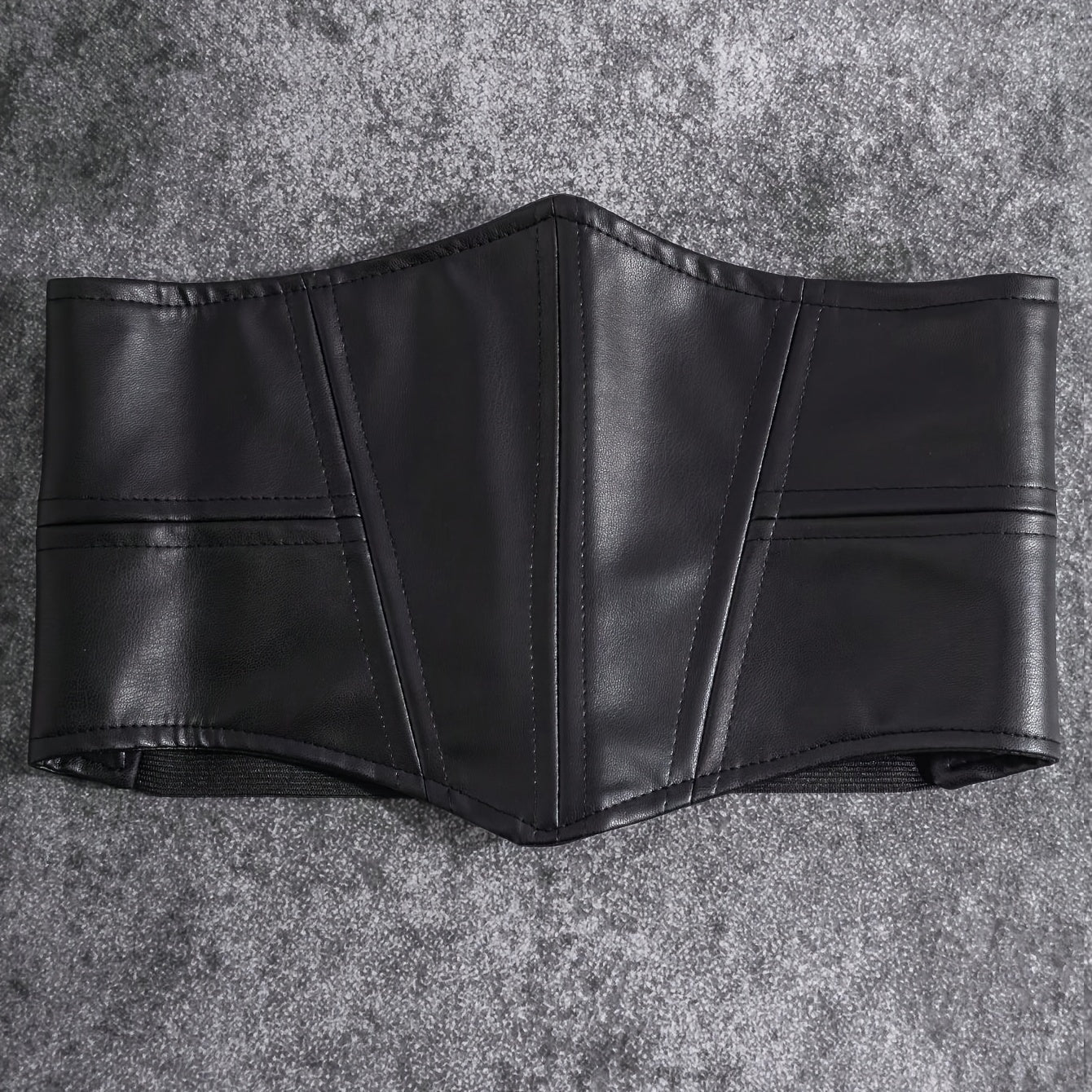 Sleek and edgy accessory that adds a punk vibe to your outfit. Made from PU leather with ruched details, this waist cincher is versatile for casual, business, and party wear.