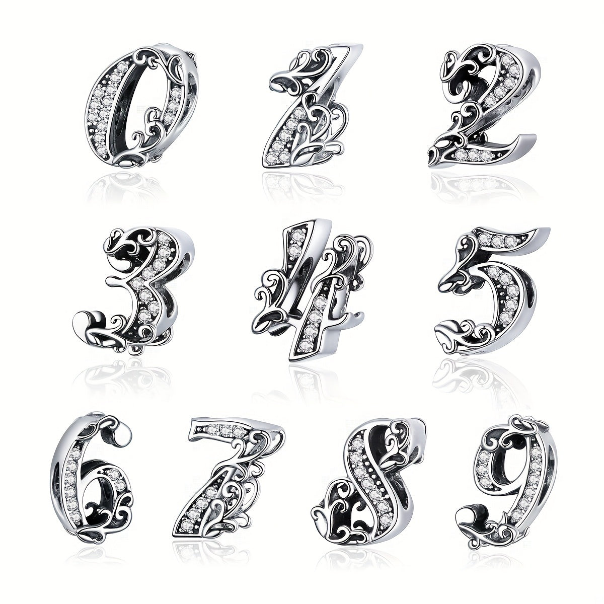Express your style with this 925 silver bead featuring Arabic numbers from 0 to 9. Perfect for personalized jewelry creations.