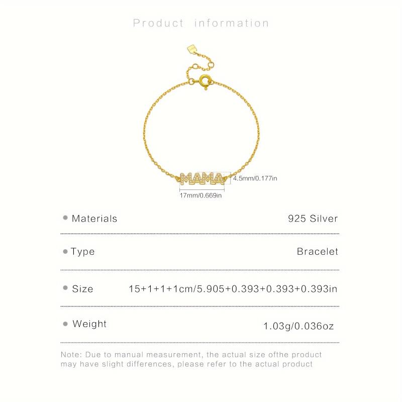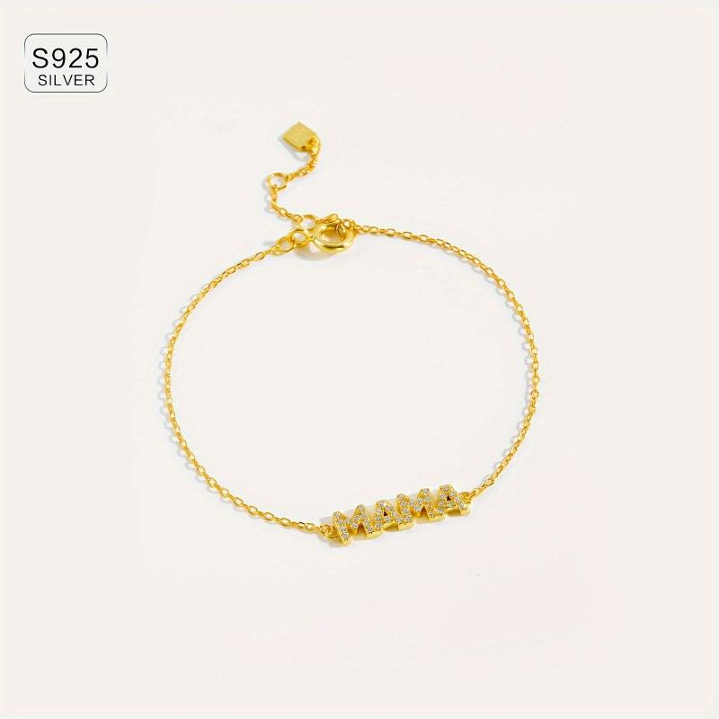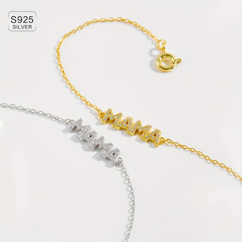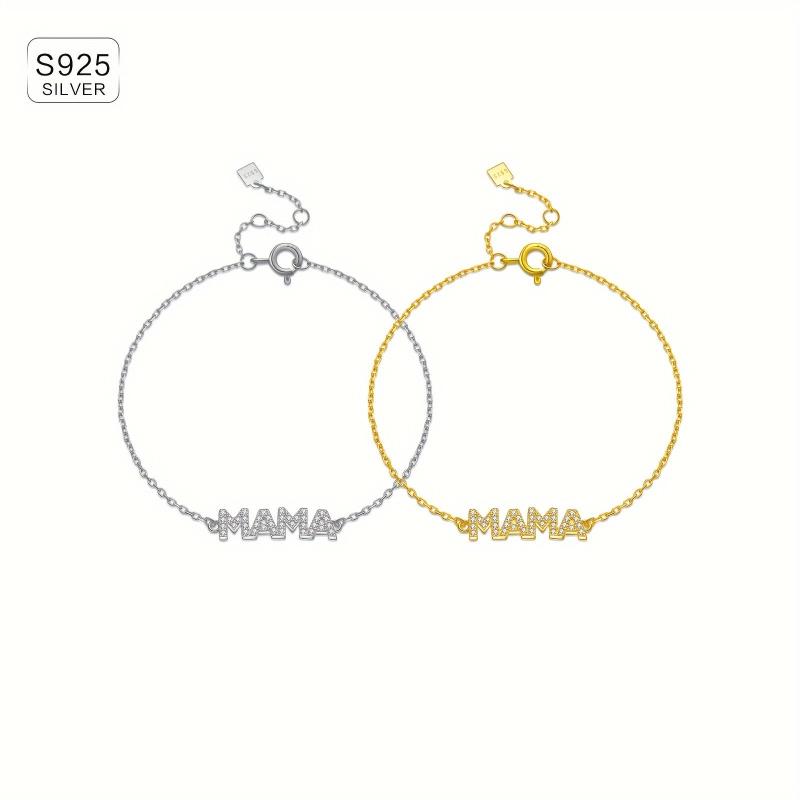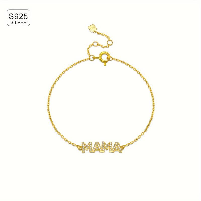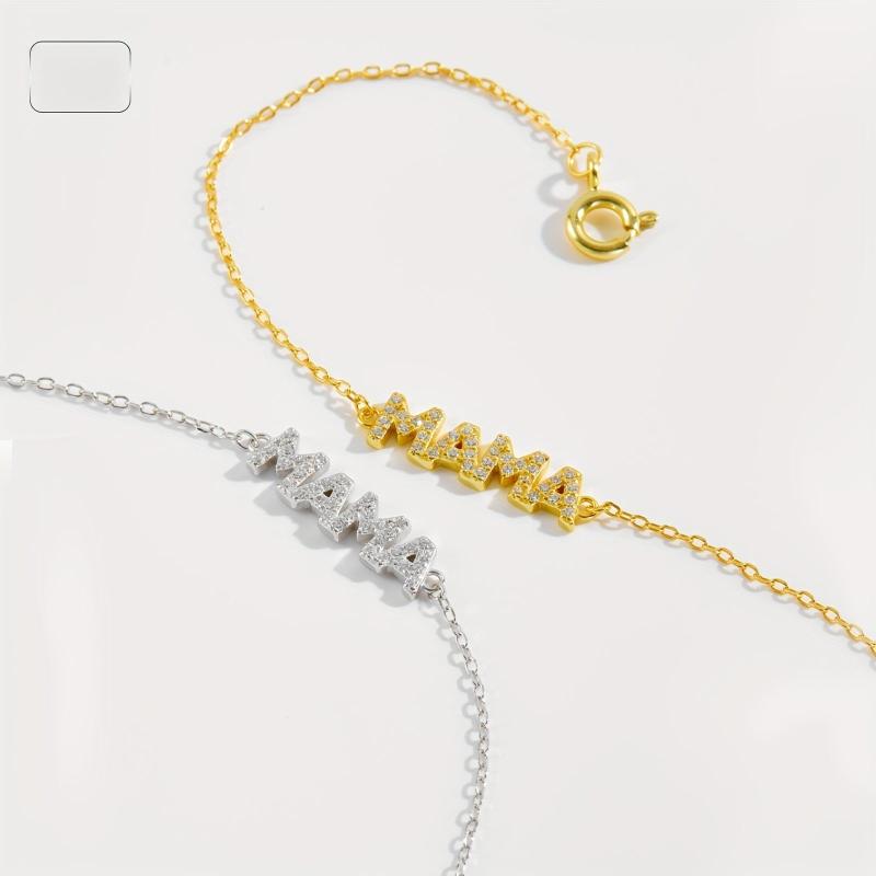 Elegant silvery bracelet with the letters MAMA and zirconia embellishments, perfect for women who want to add a touch of luxury to their jewelry collection.