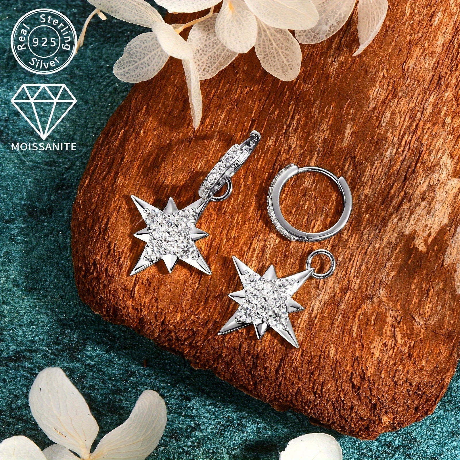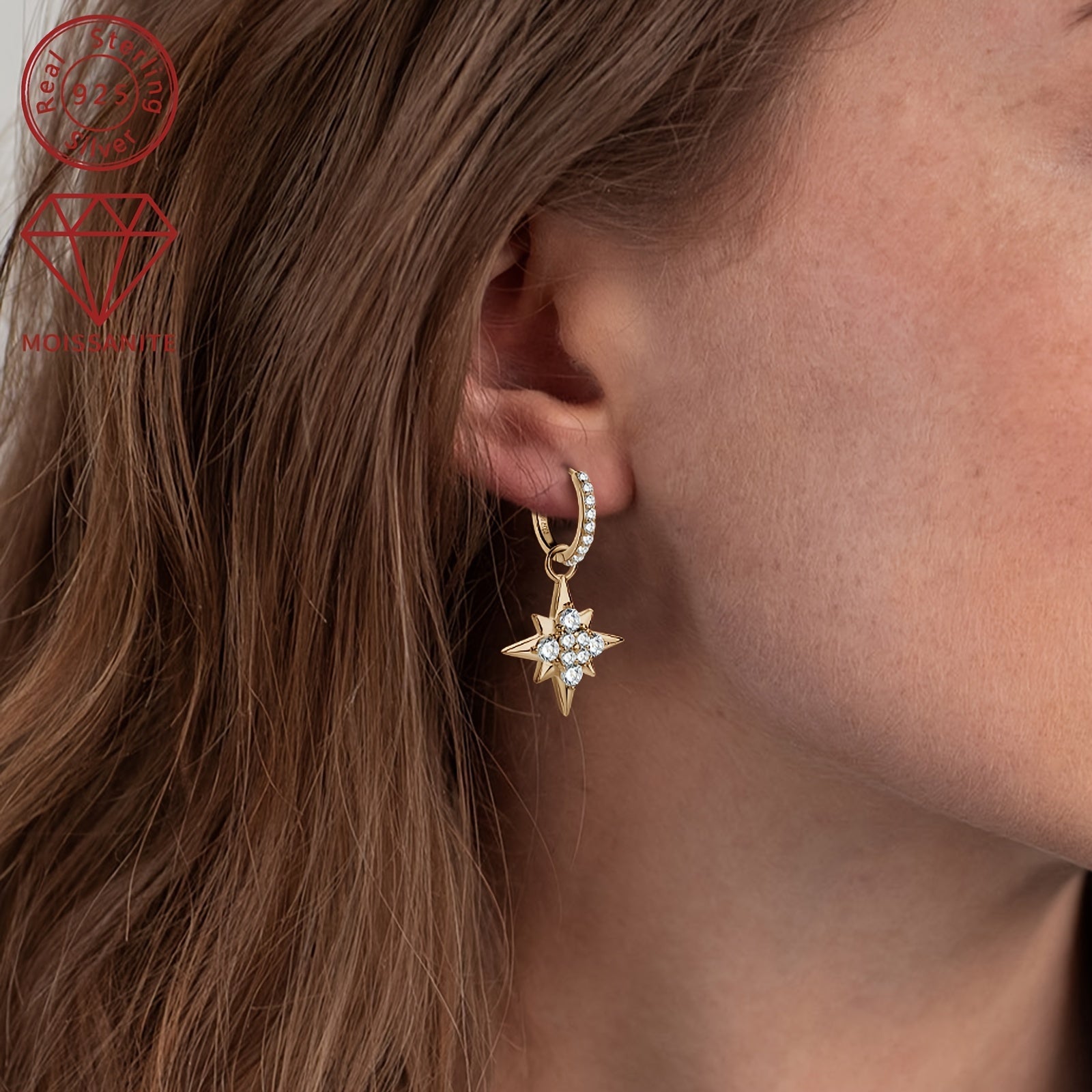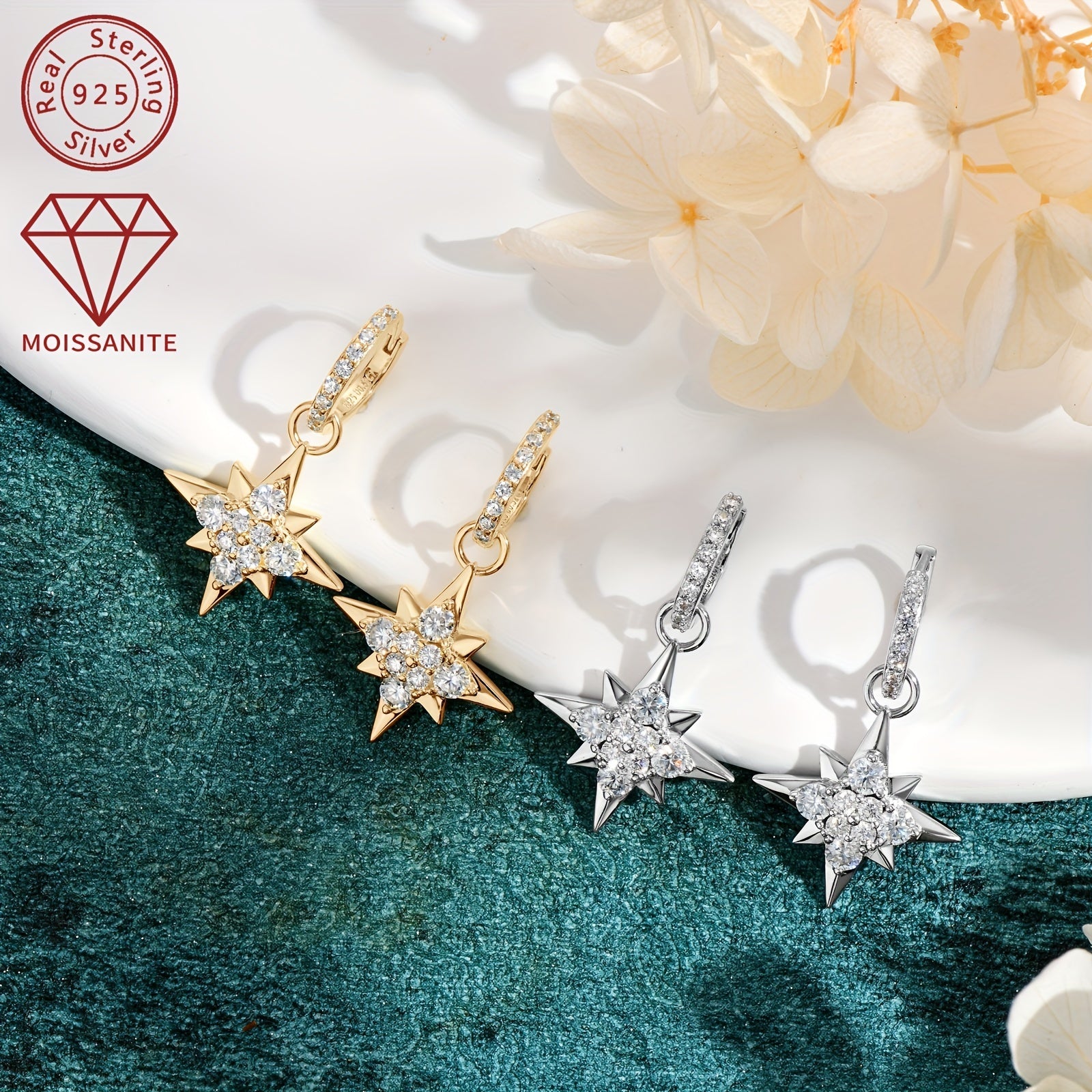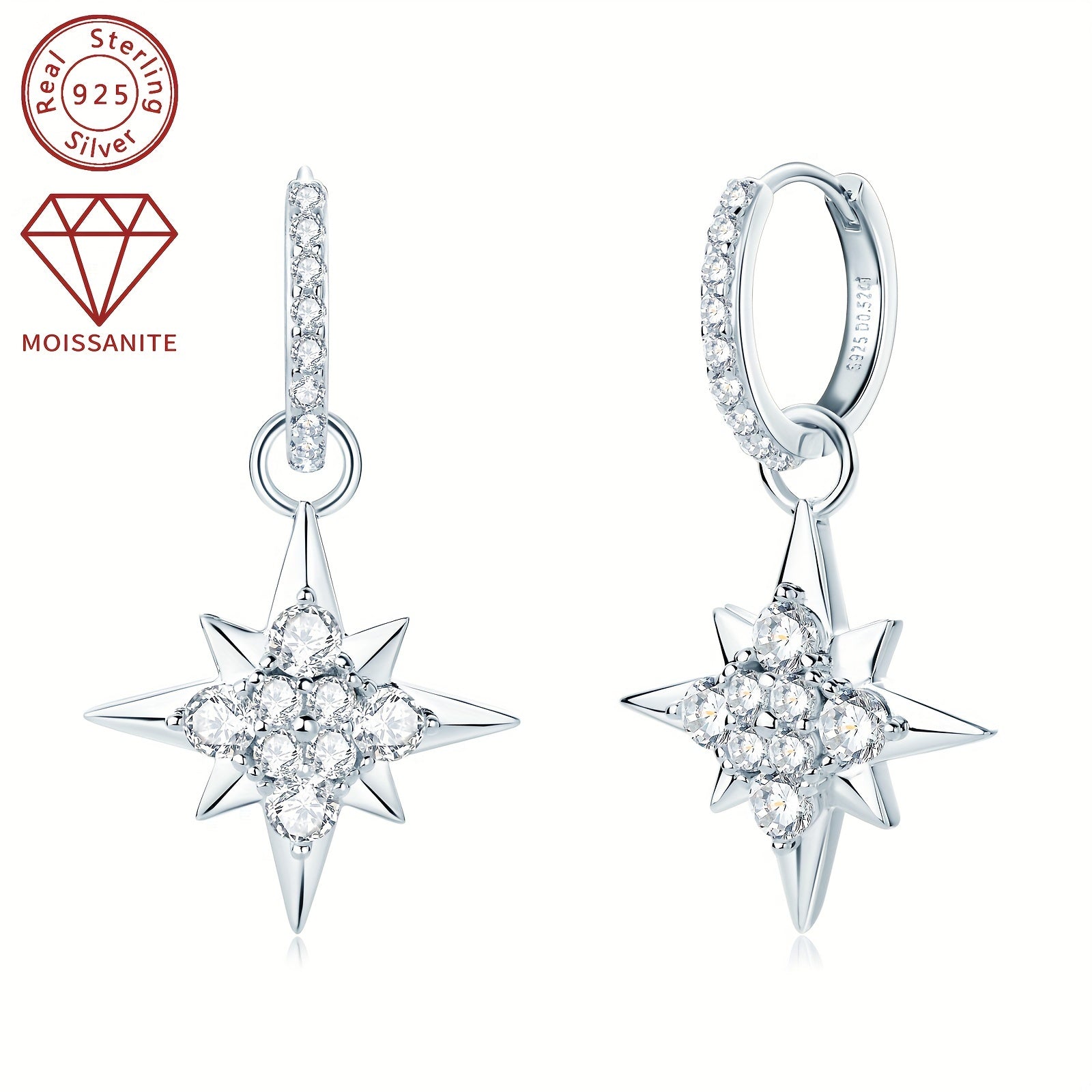 These stunning star earrings feature a total of 0.52 carats of moissanite stones in a beautiful and eye-catching design. Made with high quality 925 sterling silver, these earrings are sure to add a touch of sparkle to any outfit.