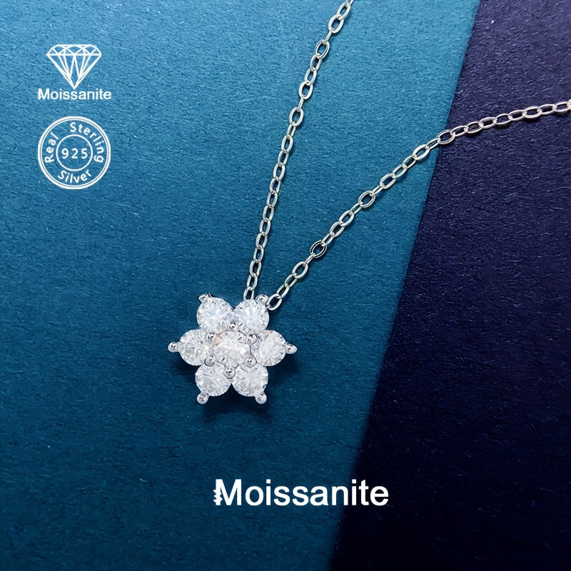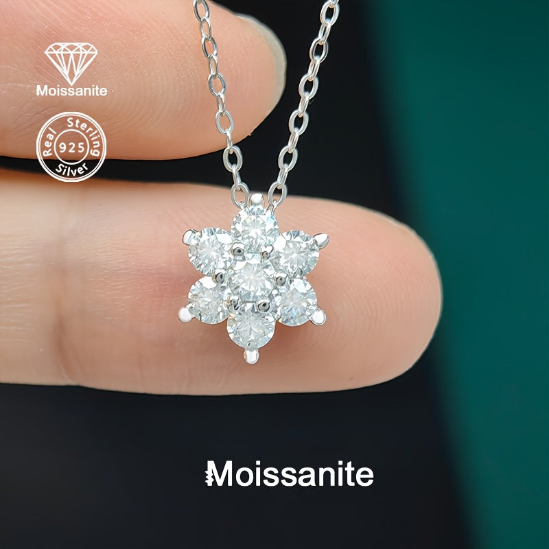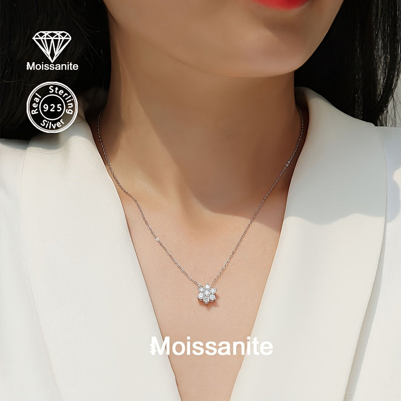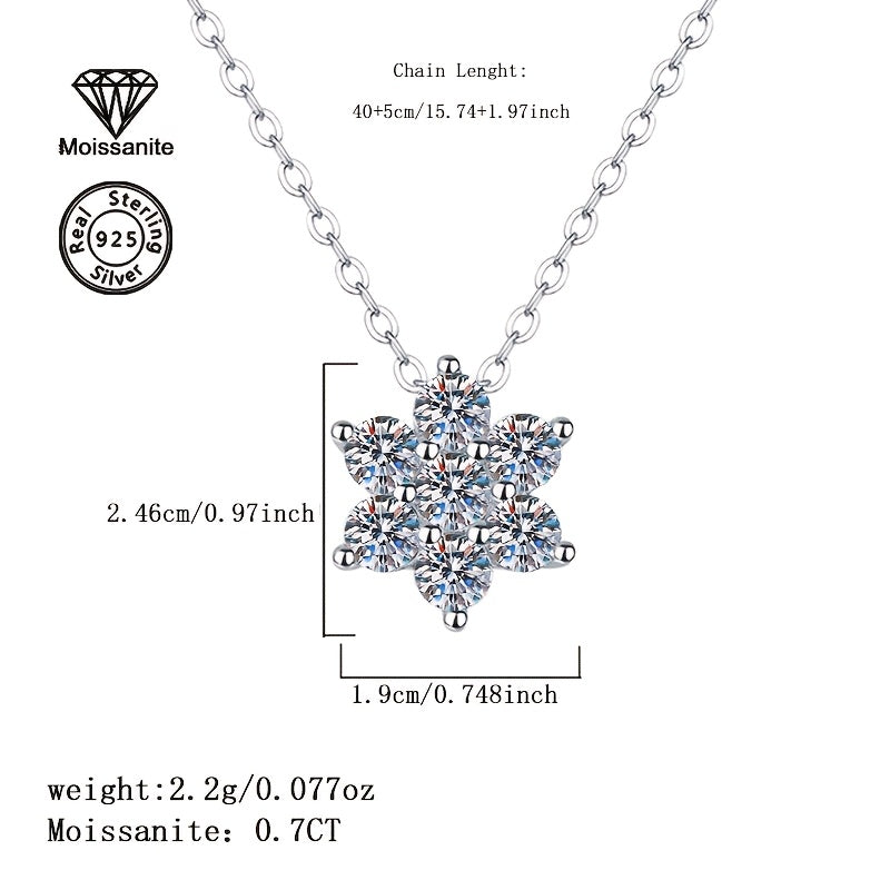 This stunning pendant necklace features a 0.7ct Moissanite stone set in S925 silver. A perfect gift for birthdays, vacations, or Christmas. The six-pointed star design adds an elegant touch.