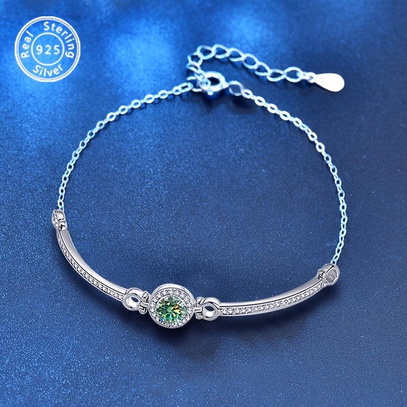 Elevate your style with this fashionable 925 sterling silver bracelet featuring a 1 carat round cut moissanite. Perfect for daily wear or special occasions.