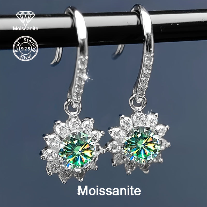 These stunning 1 carat Moissanite sunflower snowflake earrings make the perfect gift for birthdays, Valentine's Day, Christmas, or Halloween.