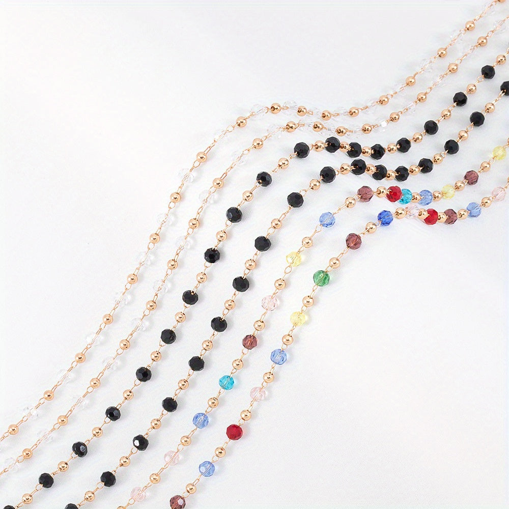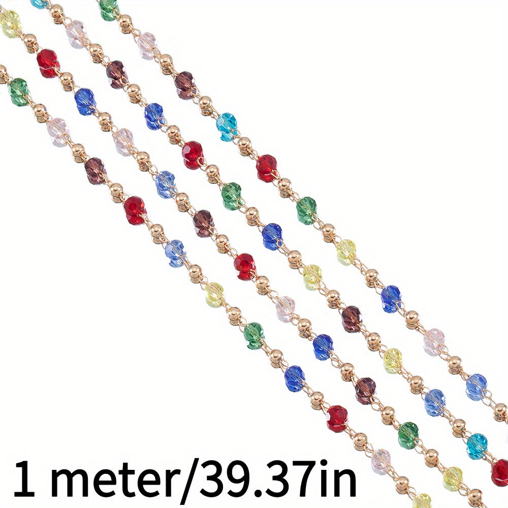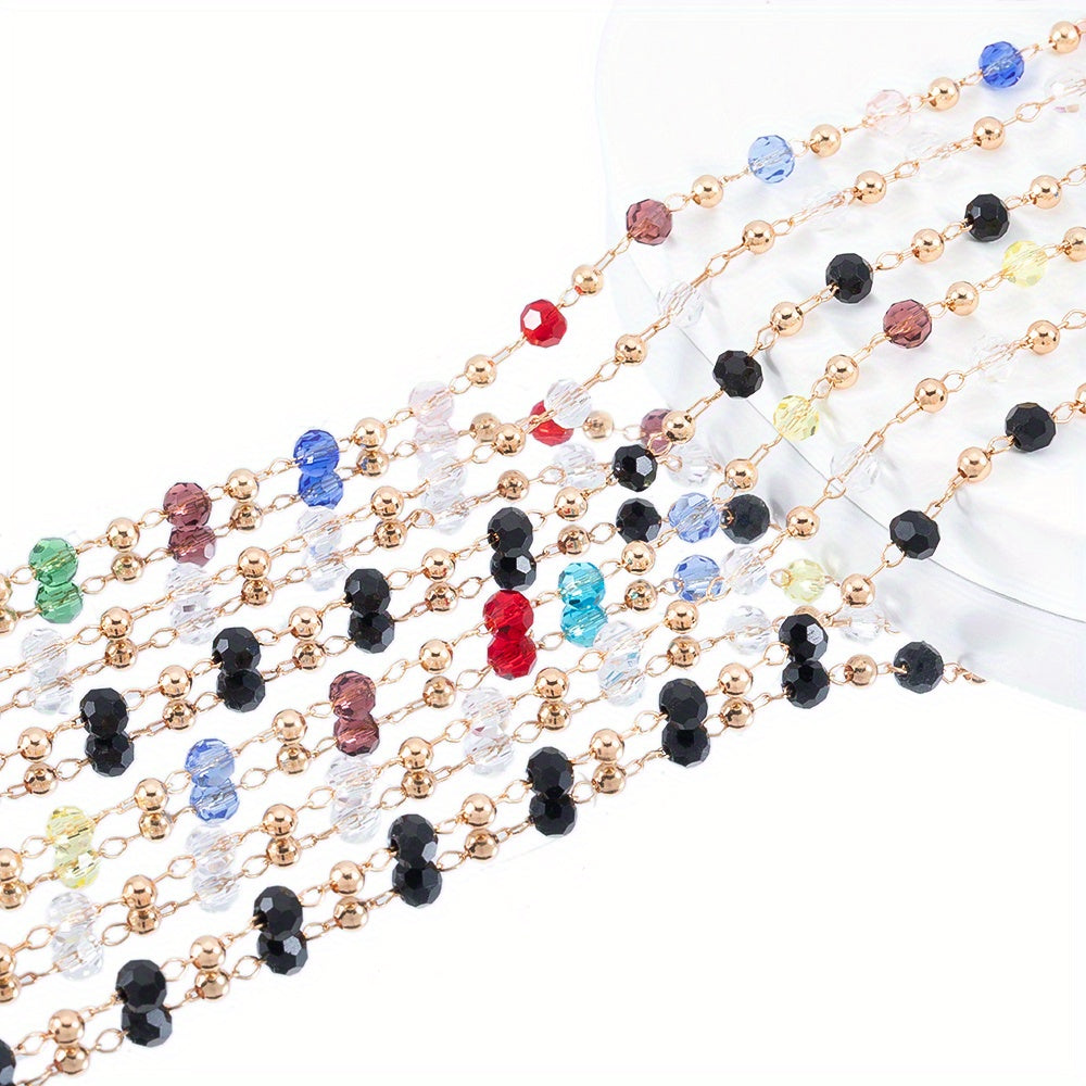 Create stunning DIY jewelry with this colorful glass bead chain. The chain is electroplated with golden copper, perfect for necklaces and bracelets.