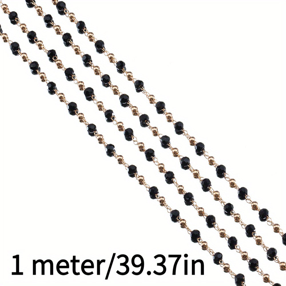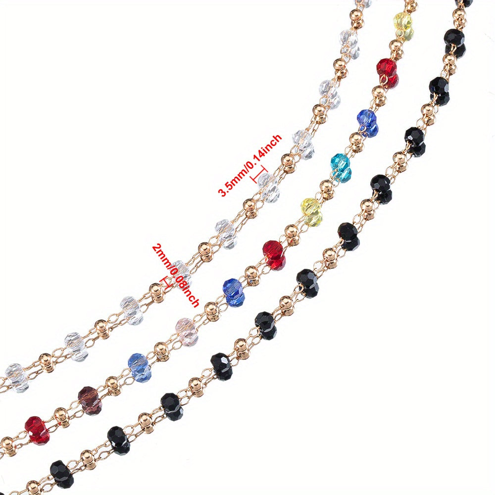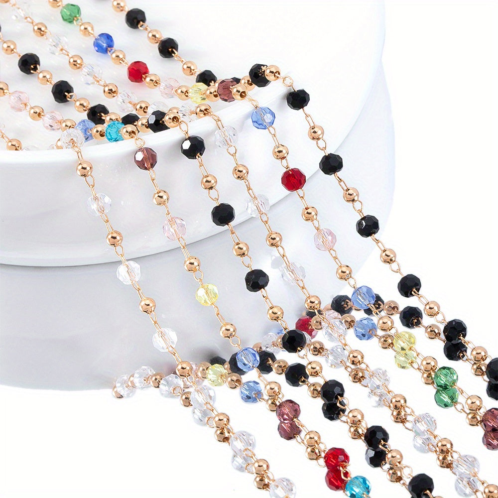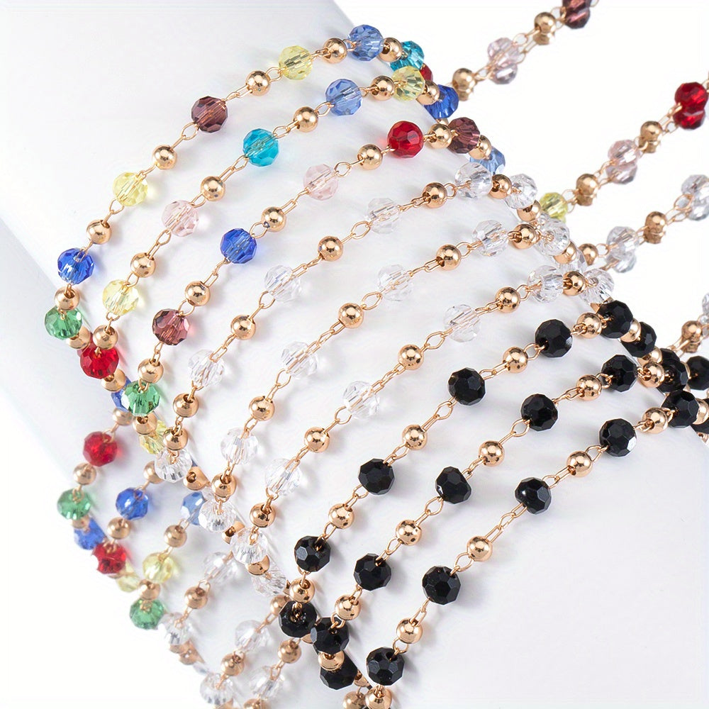 Create stunning DIY jewelry with this colorful glass bead chain. The chain is electroplated with golden copper, perfect for necklaces and bracelets.