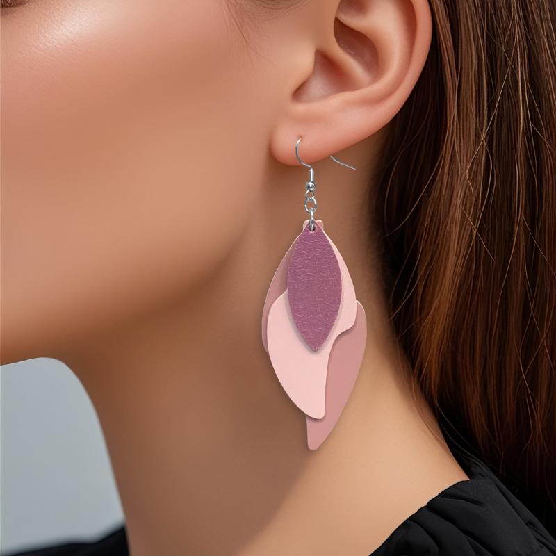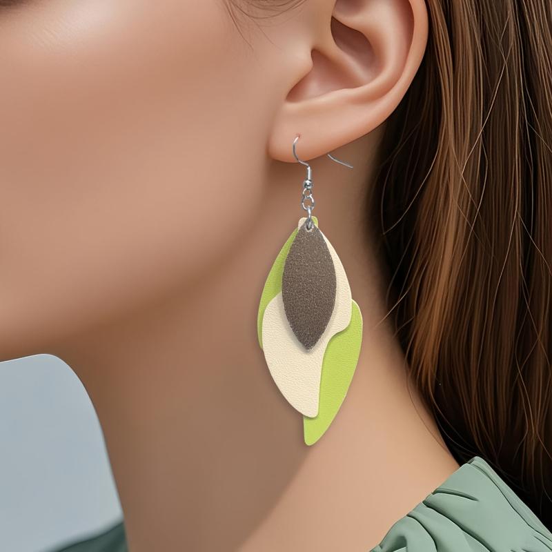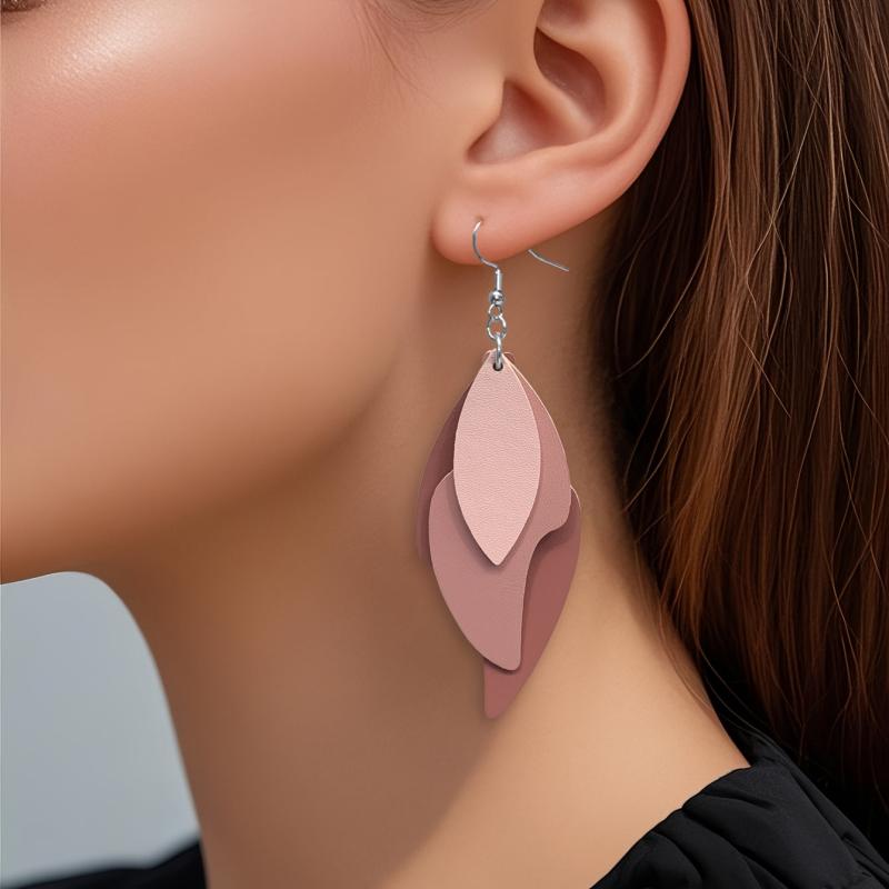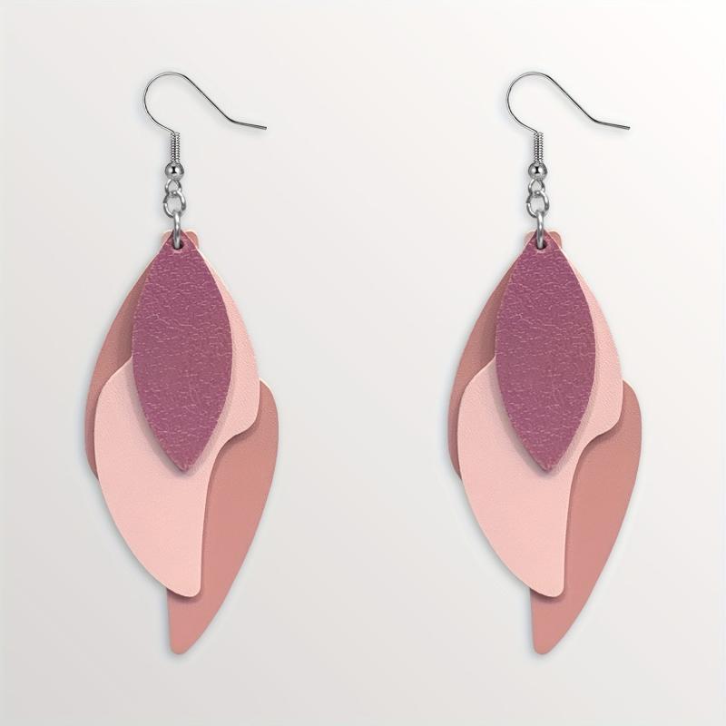 These lightweight earrings feature a rural layer blocking design, crafted from high-quality PU leather for a stylish look.