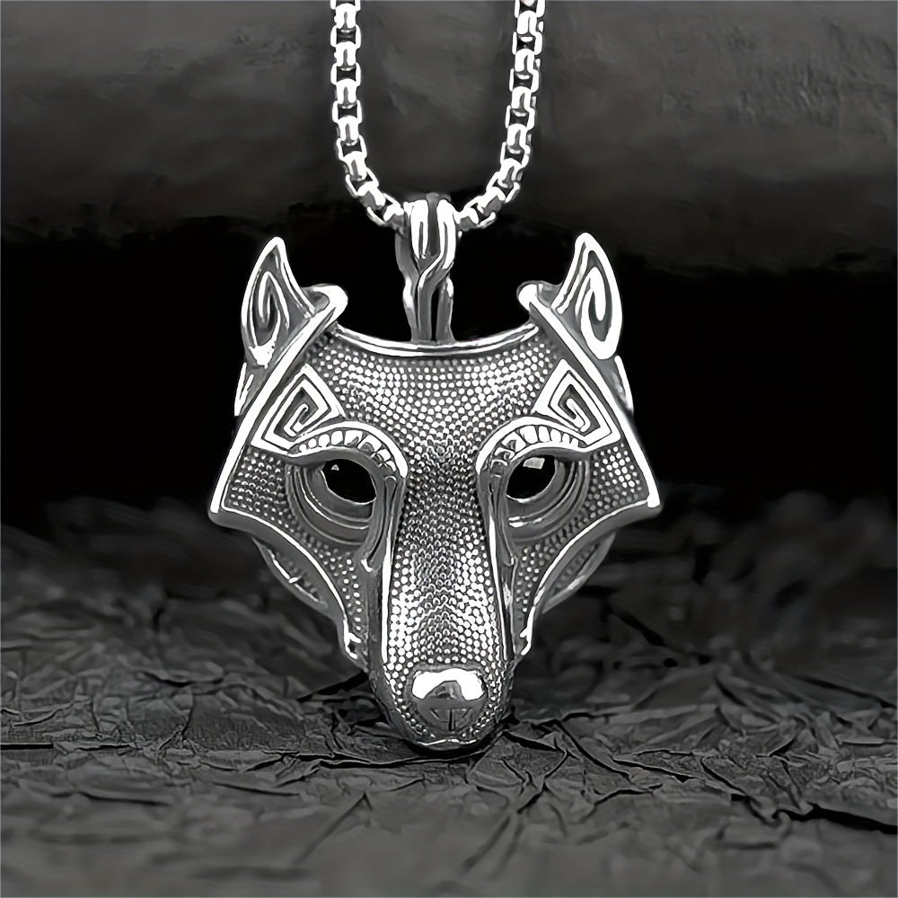 This necklace for men features a Viking hemp dot wolf head pendant made of titanium steel. It comes with a 23.6-inch stainless steel square pearl necklace, perfect for a stylish look.
