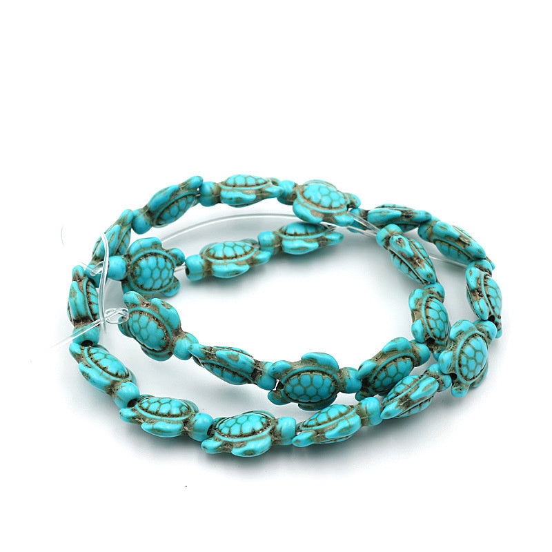 Enhance your jewelry creations with these beautiful turtle-shaped turquoise beads. Perfect for crafting unique accessories.