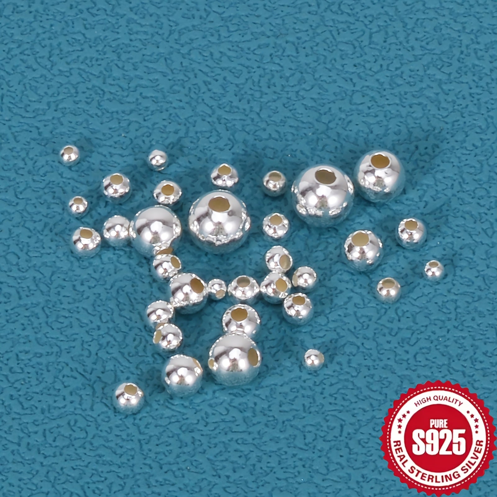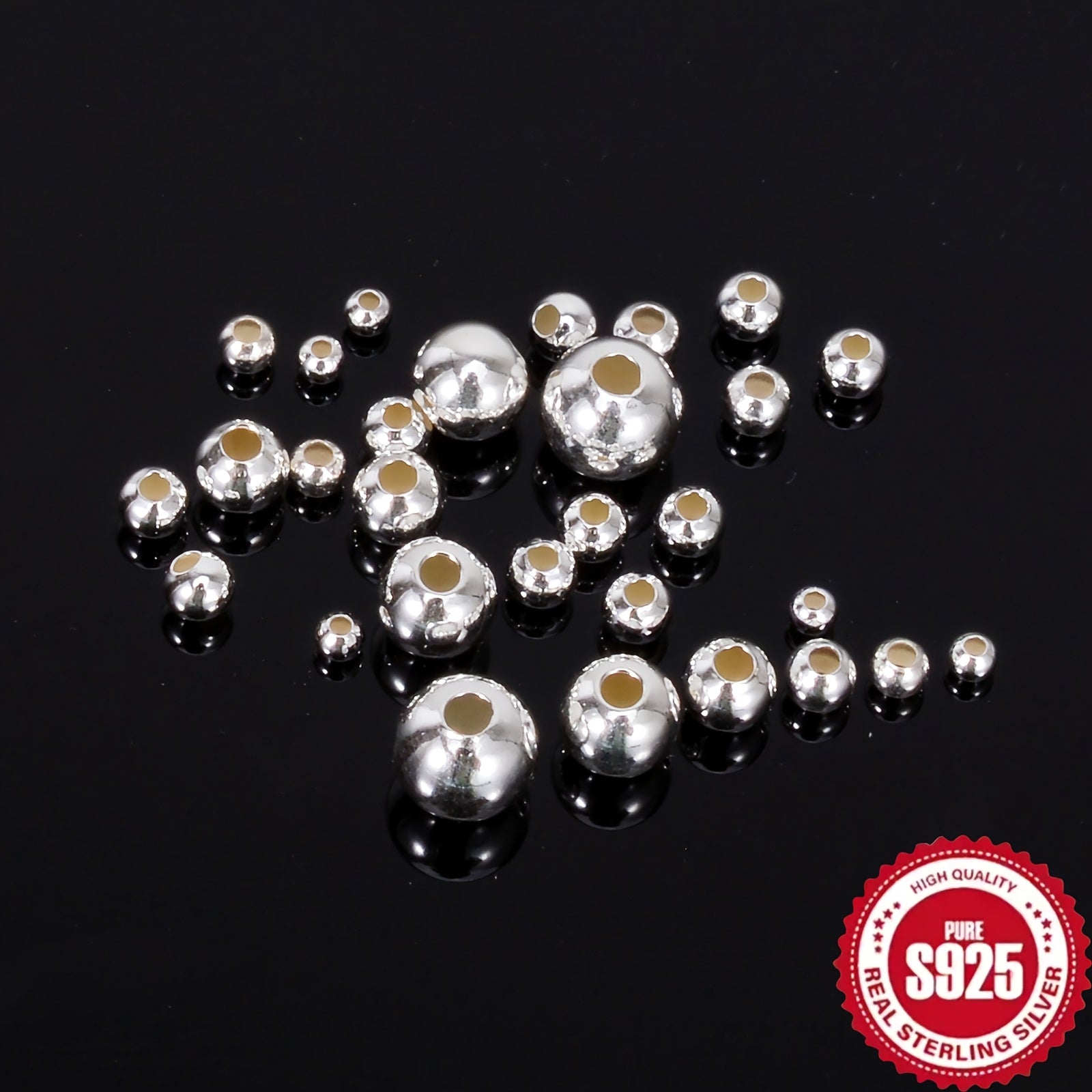 Create high-end jewelry with this pack of 10-30 S925 pure silver round spacer beads. Ranging from 2mm to 6mm in size, perfect for bracelets, necklaces, and anklets.
